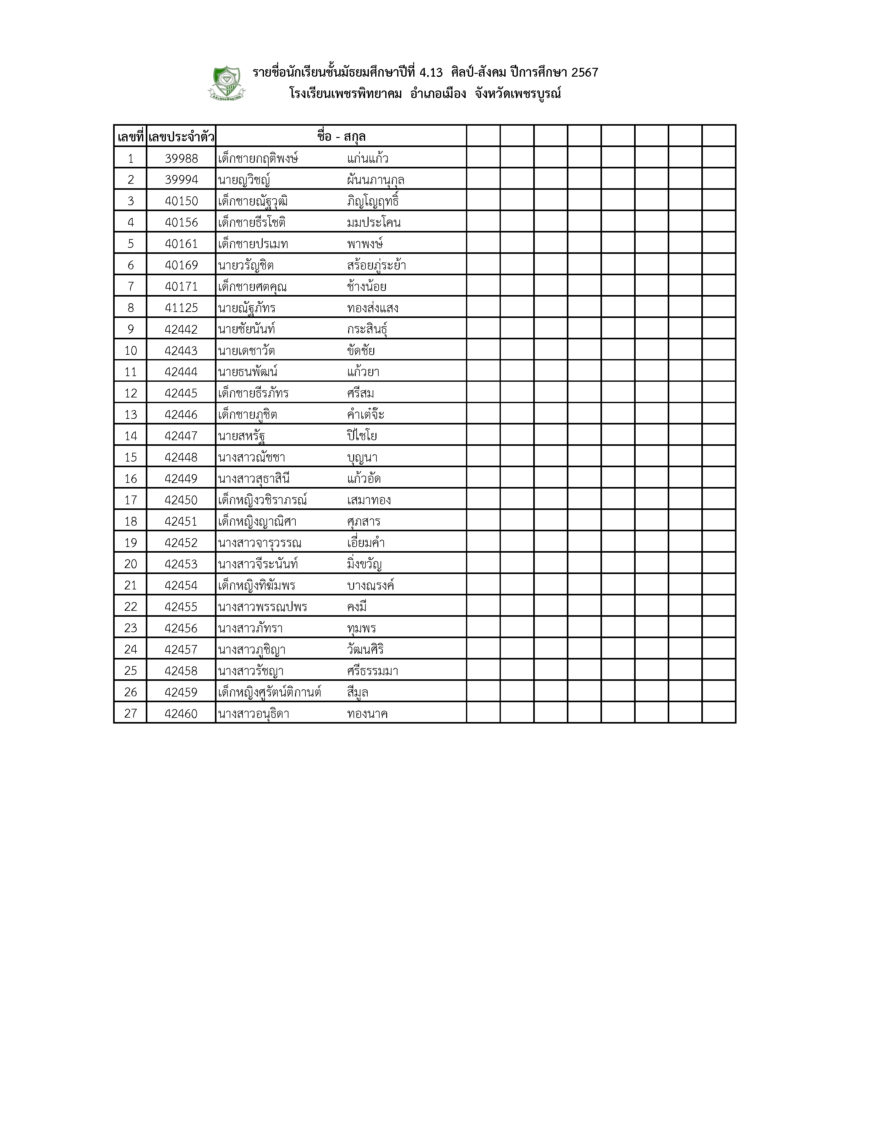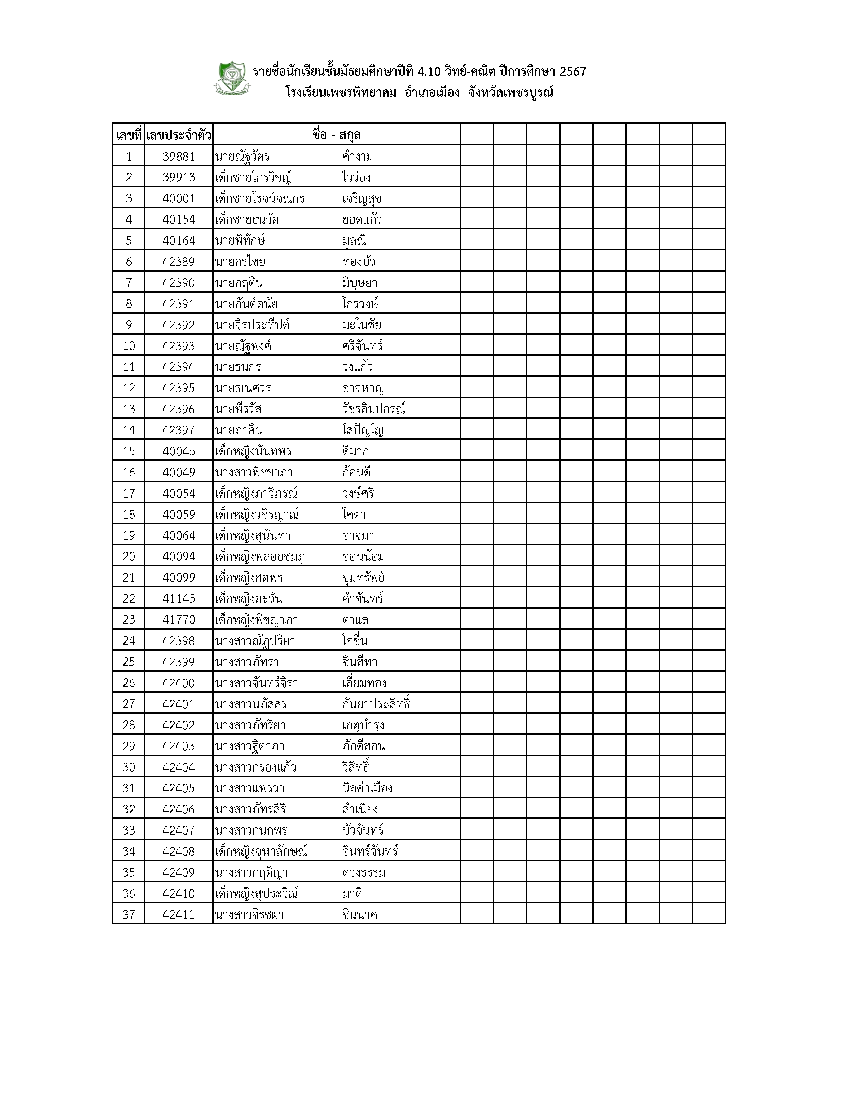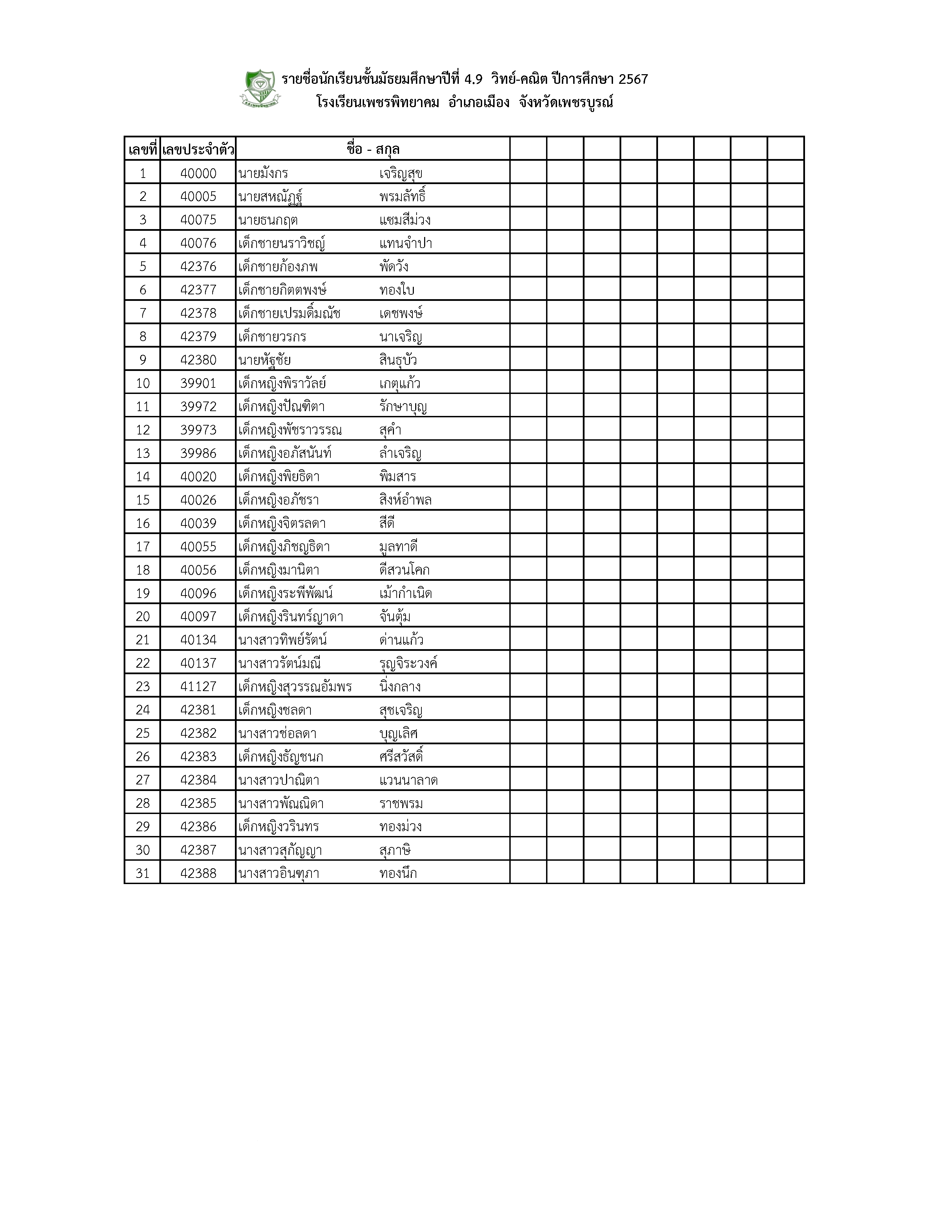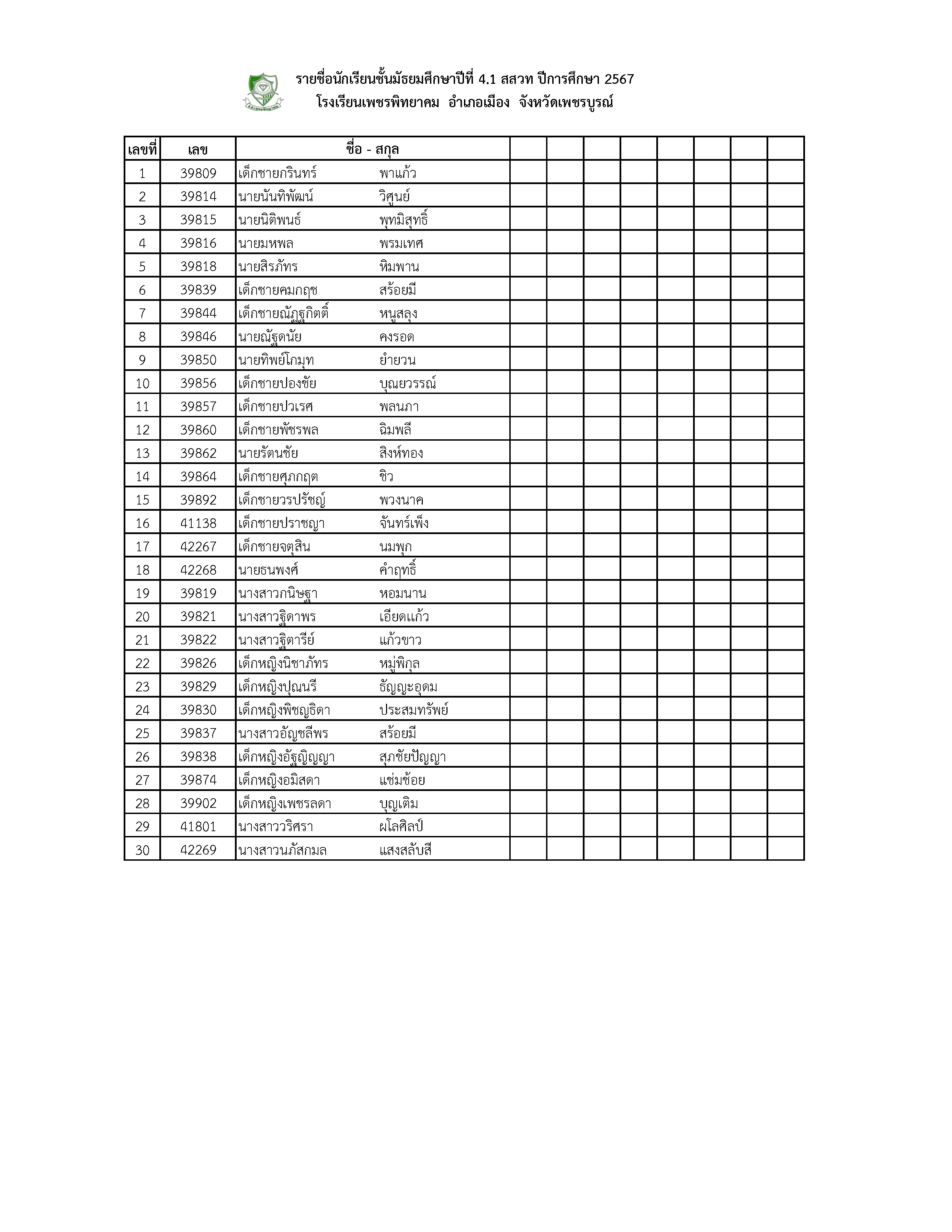 ประกาศเลขประจำตัวนักเรียน ชั้นมัธยมศึกษาปีที่ 4 ปีการศึกษา 2567