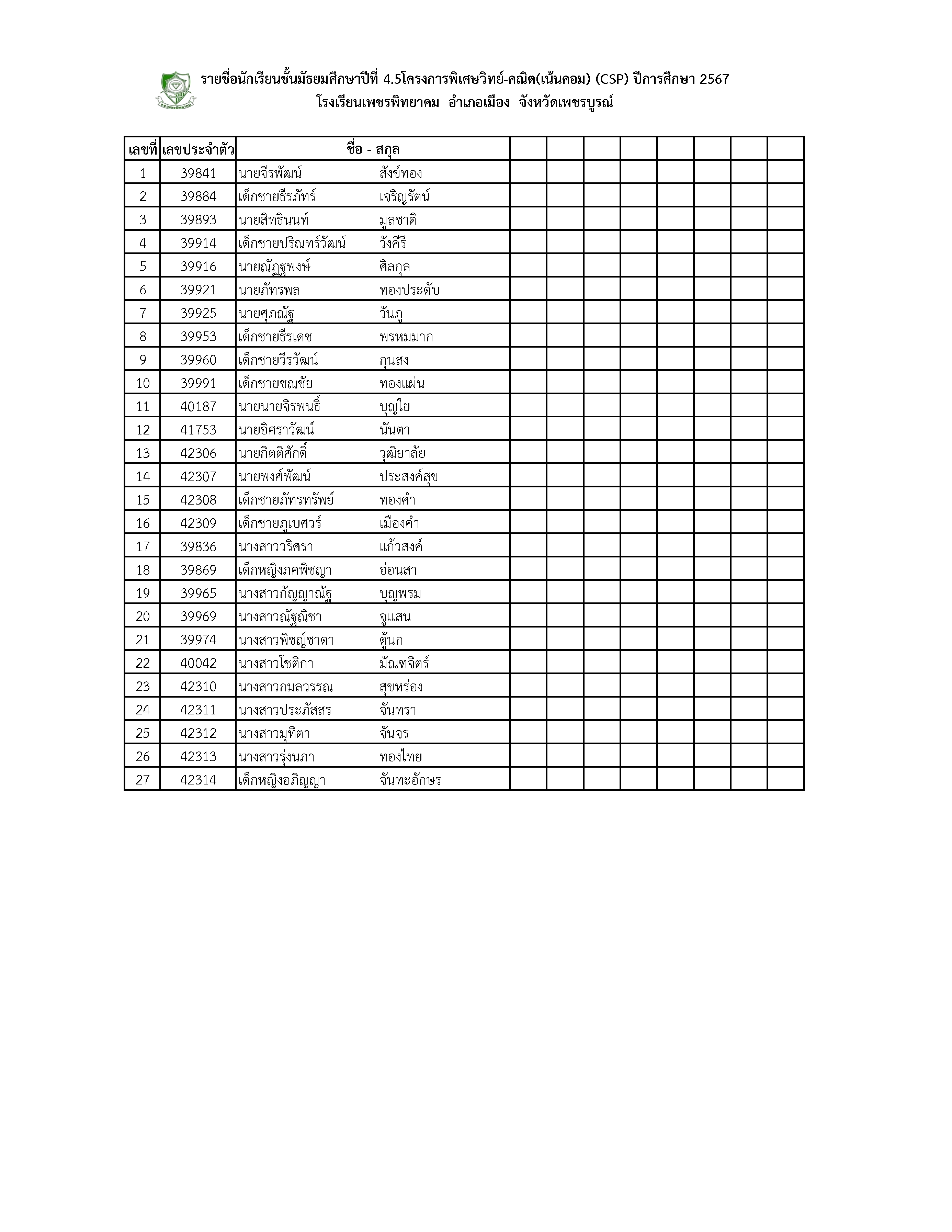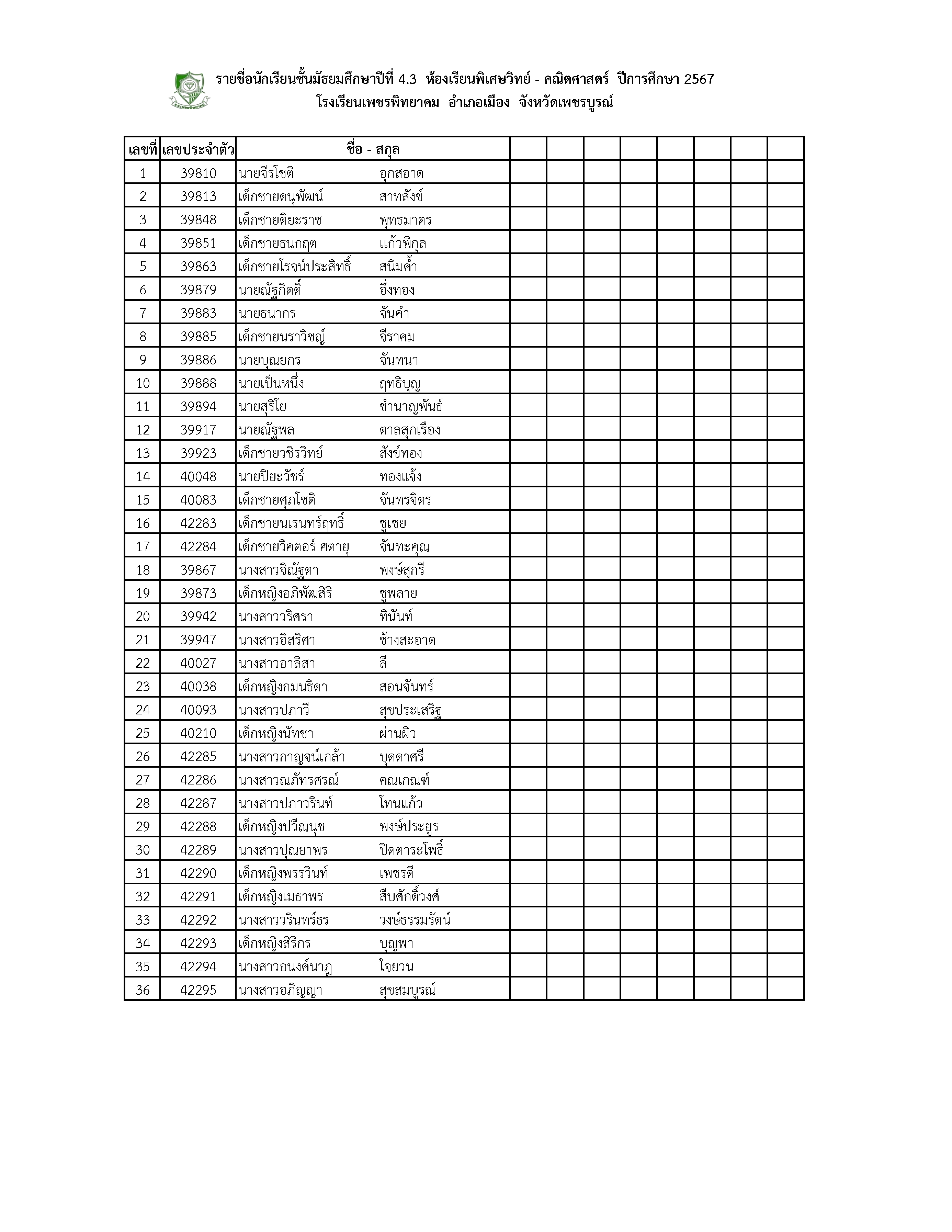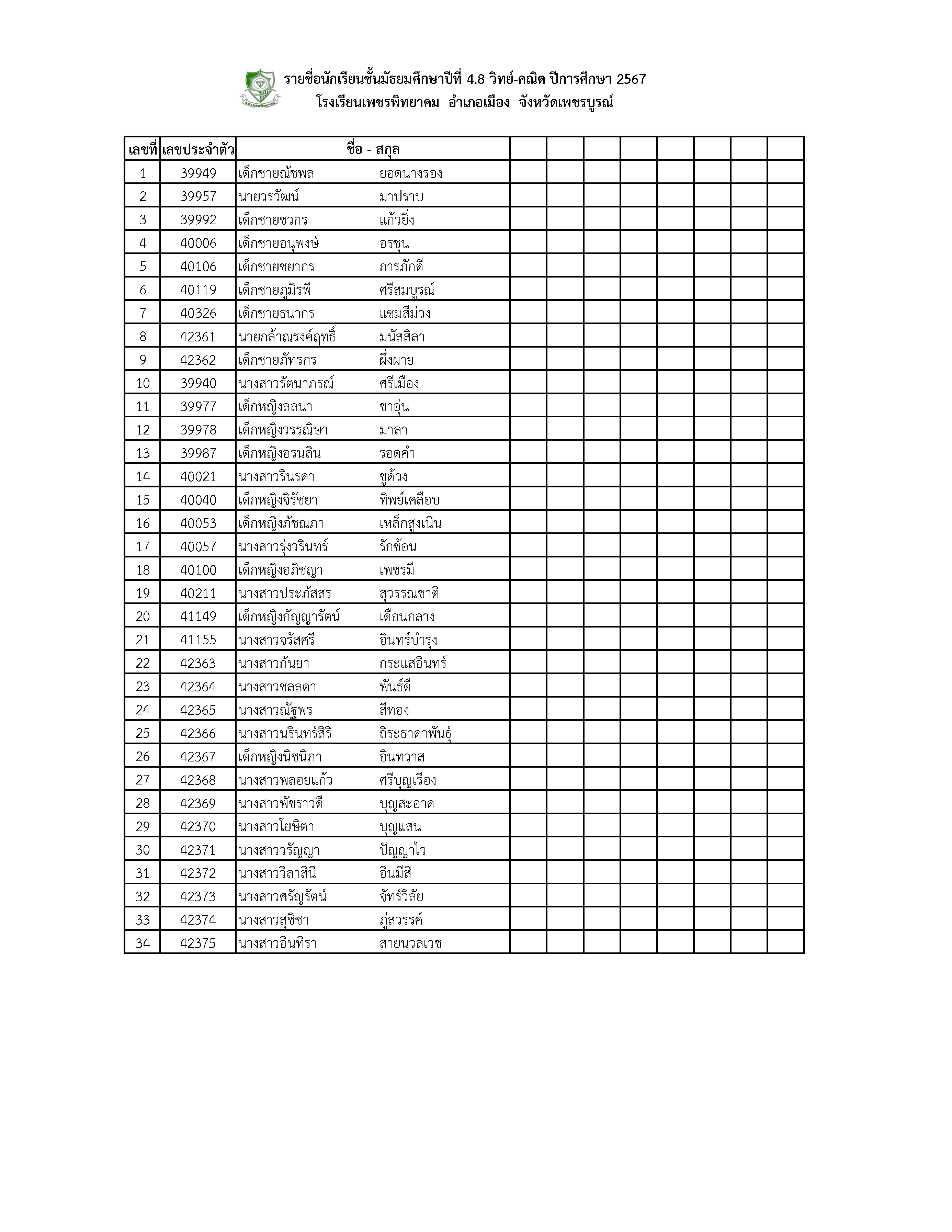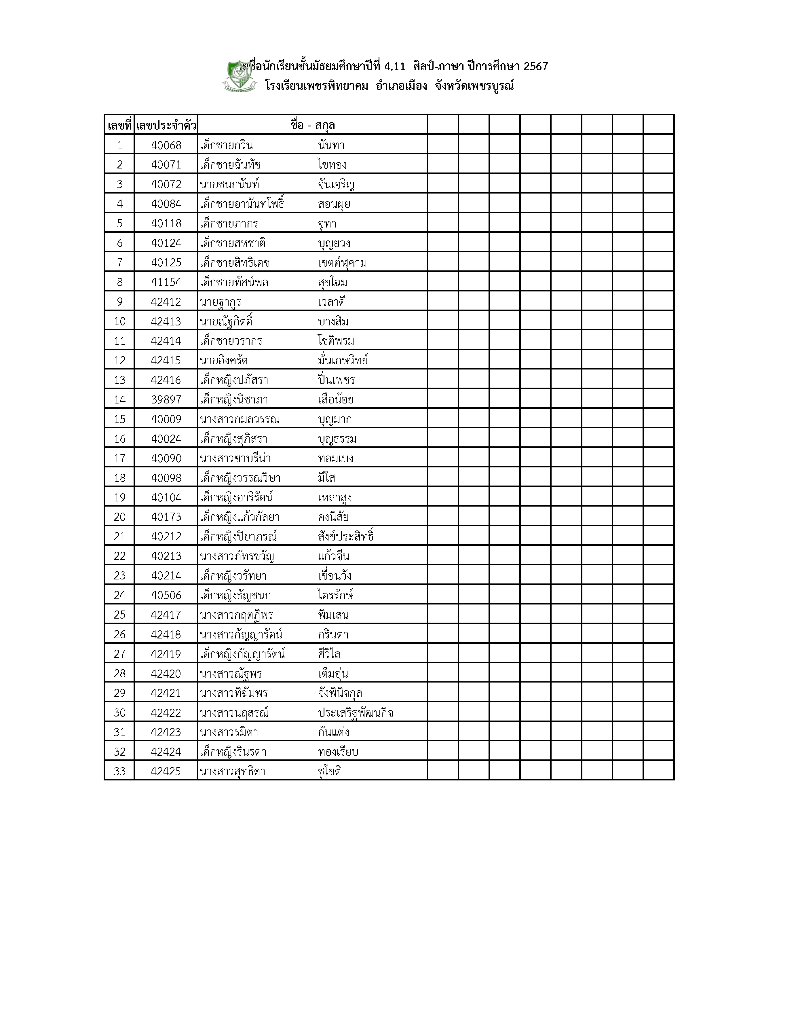 ประกาศเลขประจำตัวนักเรียน ชั้นมัธยมศึกษาปีที่ 4 ปีการศึกษา 2567