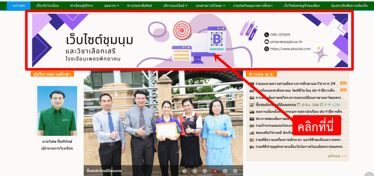 2) กรณีเข้าจากเว็บไซต์โรงเรียนเพชรพิทยาคม https://www.pks.ac.th คลิกที่แบนเนอร์ด้านล่าง