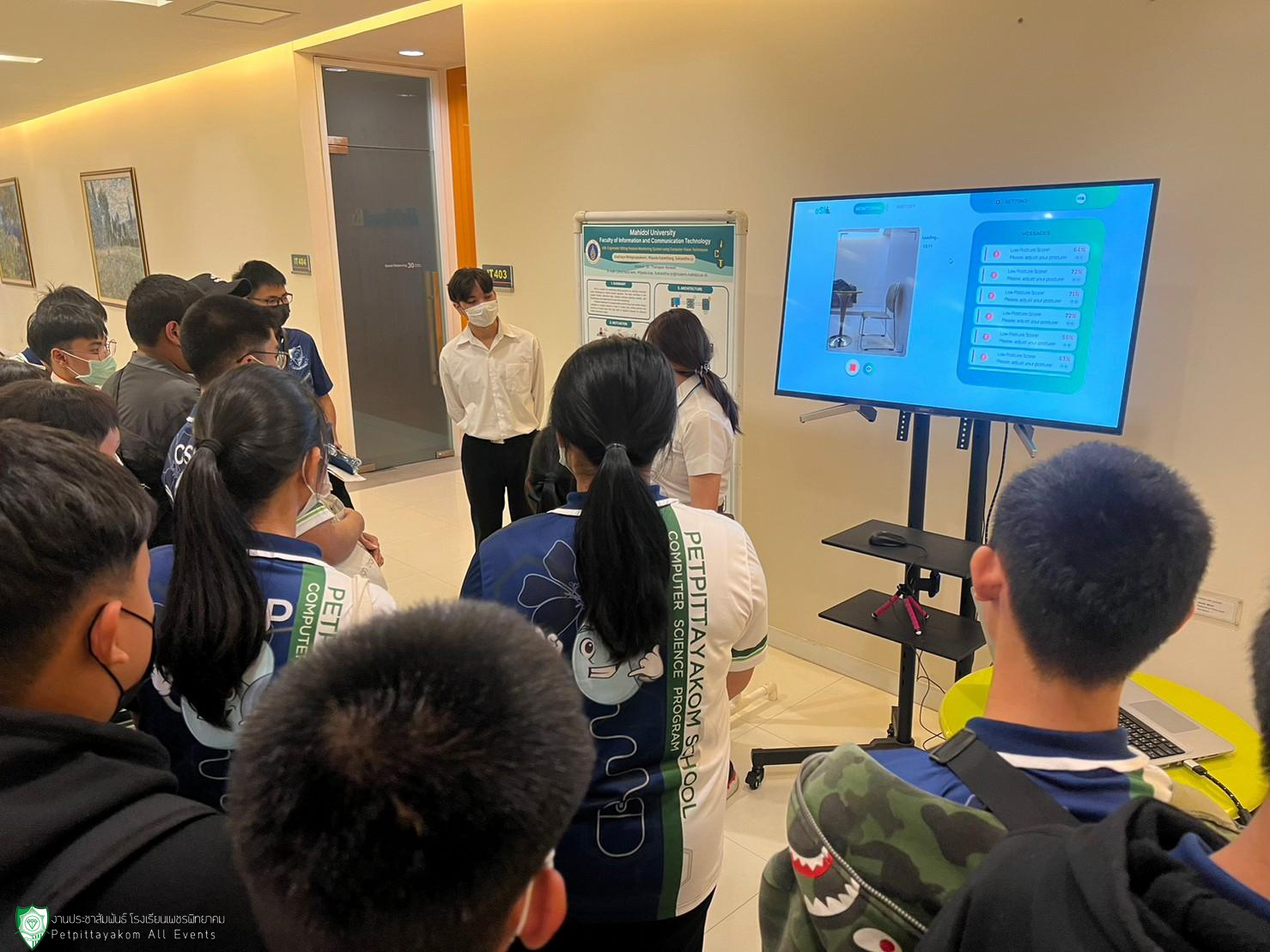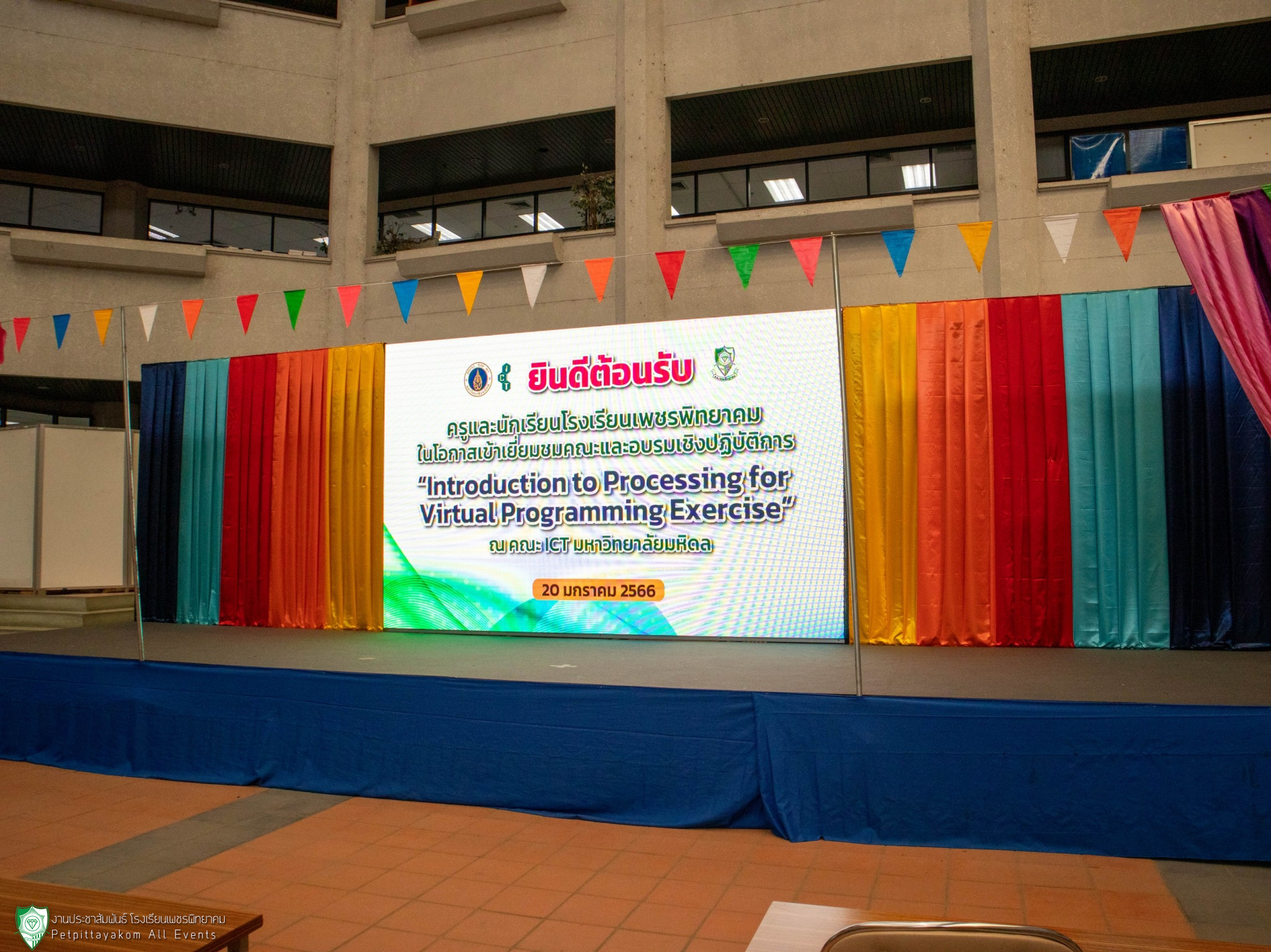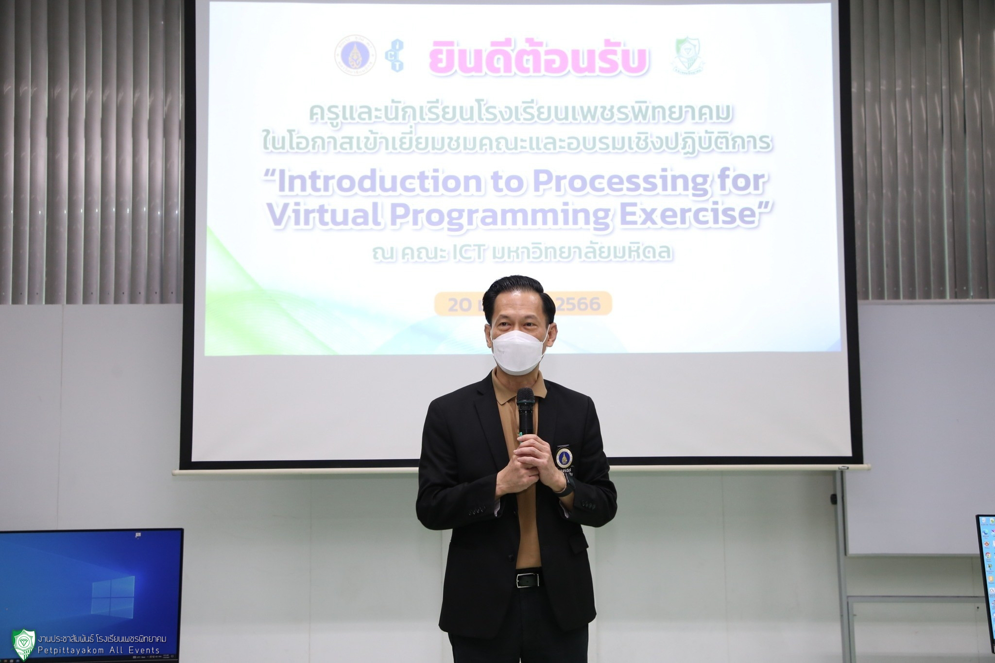 วันที่ 20 มกราคม 2566 นายนิรุทธ์ แก้วนิคม รองผู้อำนวยการโรงเรียนเพชรพิทยาคม พร้อมด้วยคณะครู และนักเรียนชั้นมัธยมศึกษาปีที่ 4 – 5 ห้องเรียนพิเศษ วิทยาศาสตร์-คณิตศาสตร์ เน้นคอมพิวเตอร์ (Computer Science Program : CSP) โรงเรียนเพชรพิทยาคม จ.เพชรบูรณ์ จำนวนกว่า 70 คน เข้าเยี่ยมชมคณะ และเข้าร่วมอบรมเชิงปฏิบัติการ Basic Programming: Introduction to Processing for virtual programming exercise คณะ ICT มหาวิทยาลัยมหิดล ศาลายา