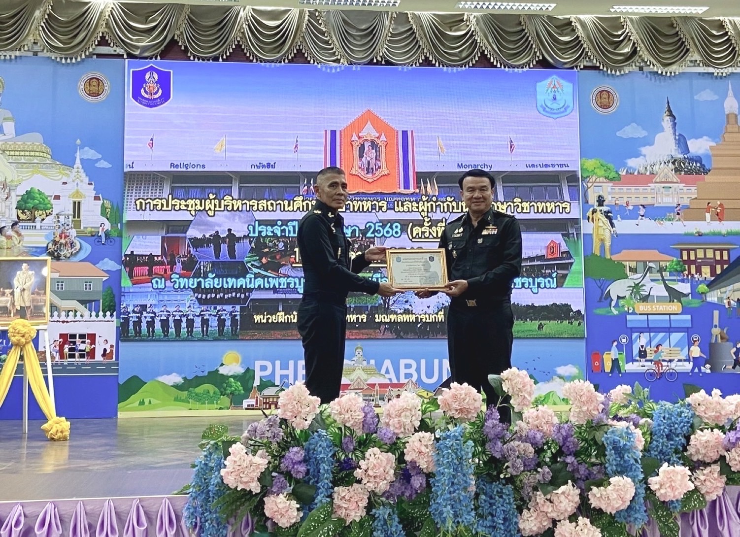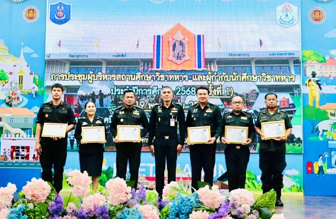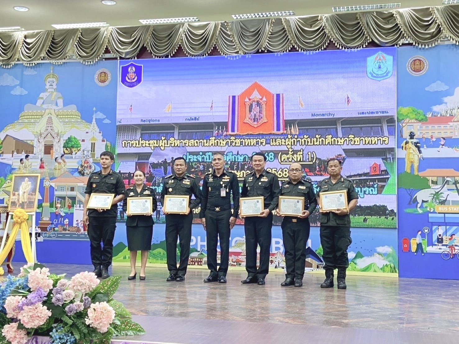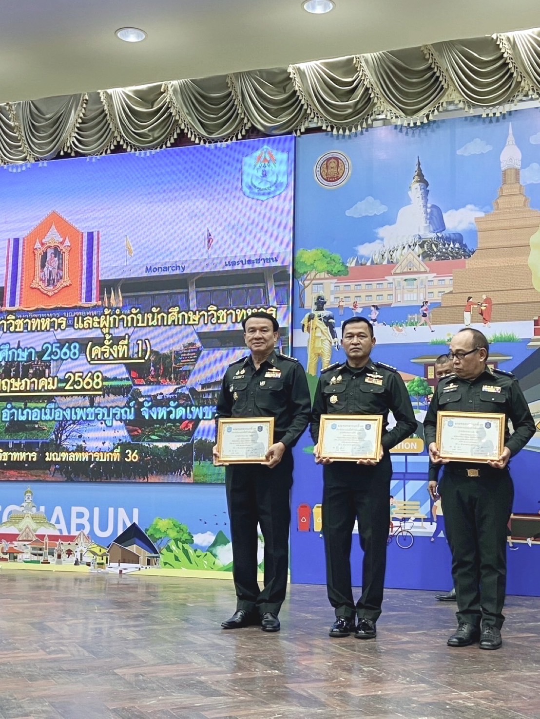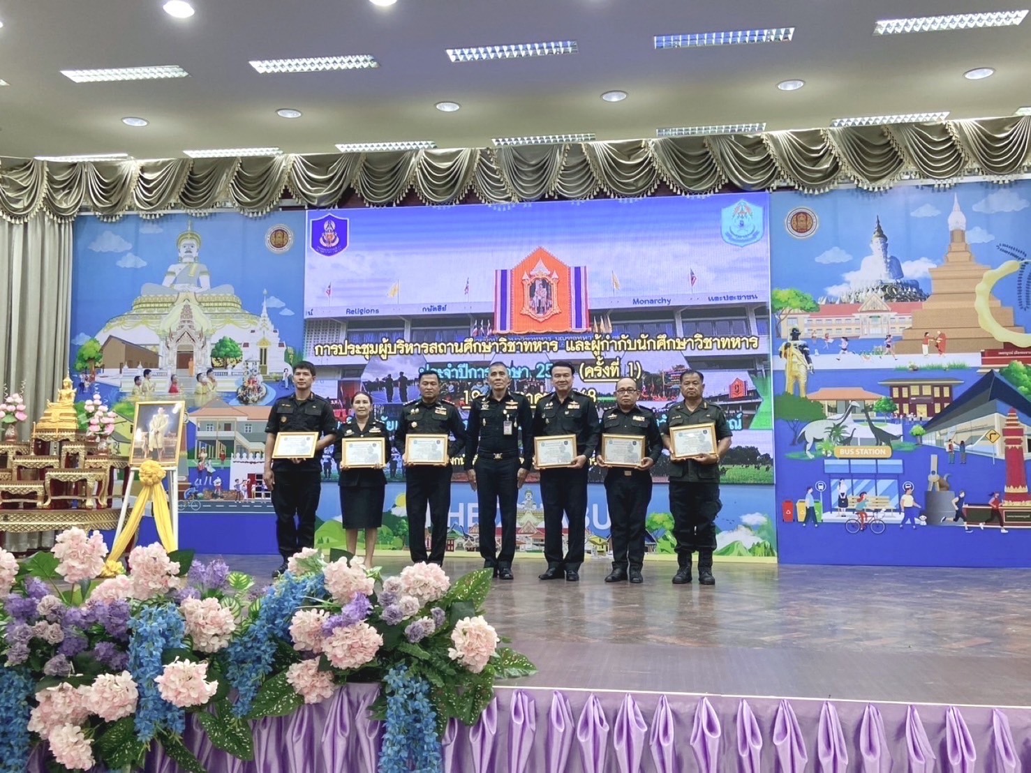 นายวิเศษ ปิ่นพิทักษ์ ผู้อำนวยการโรงเรียนเพชรพิทยาคม รับเกียรติบัตรประกาศเกียรติคุณ และเข้าร่วมประชุมสถานศึกษาวิชาทหาร