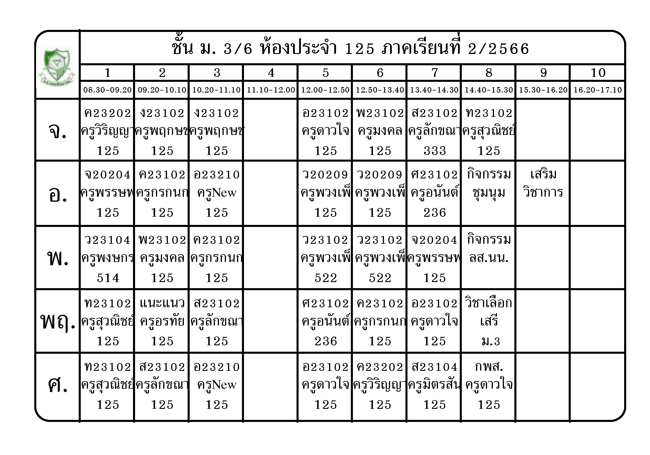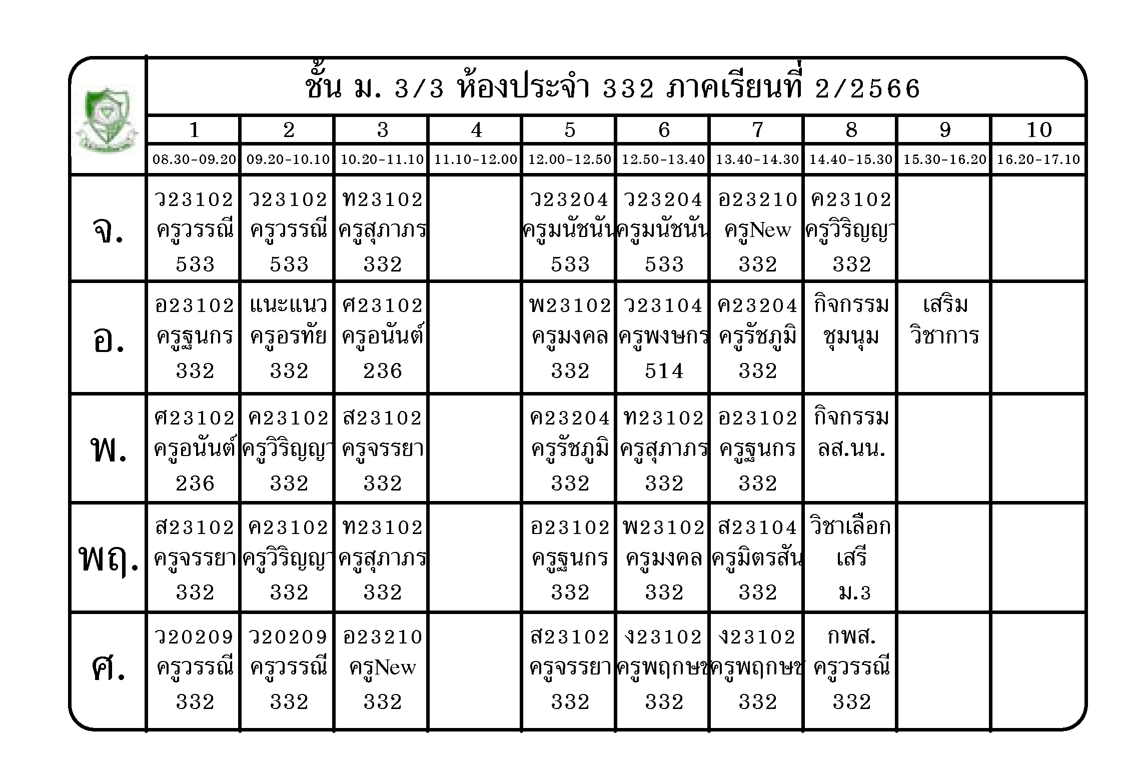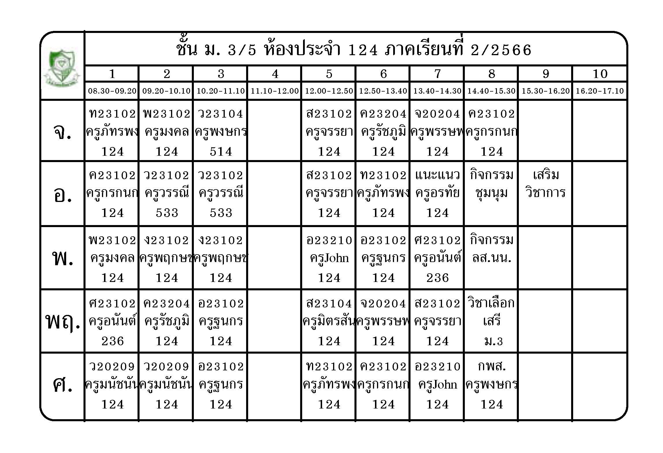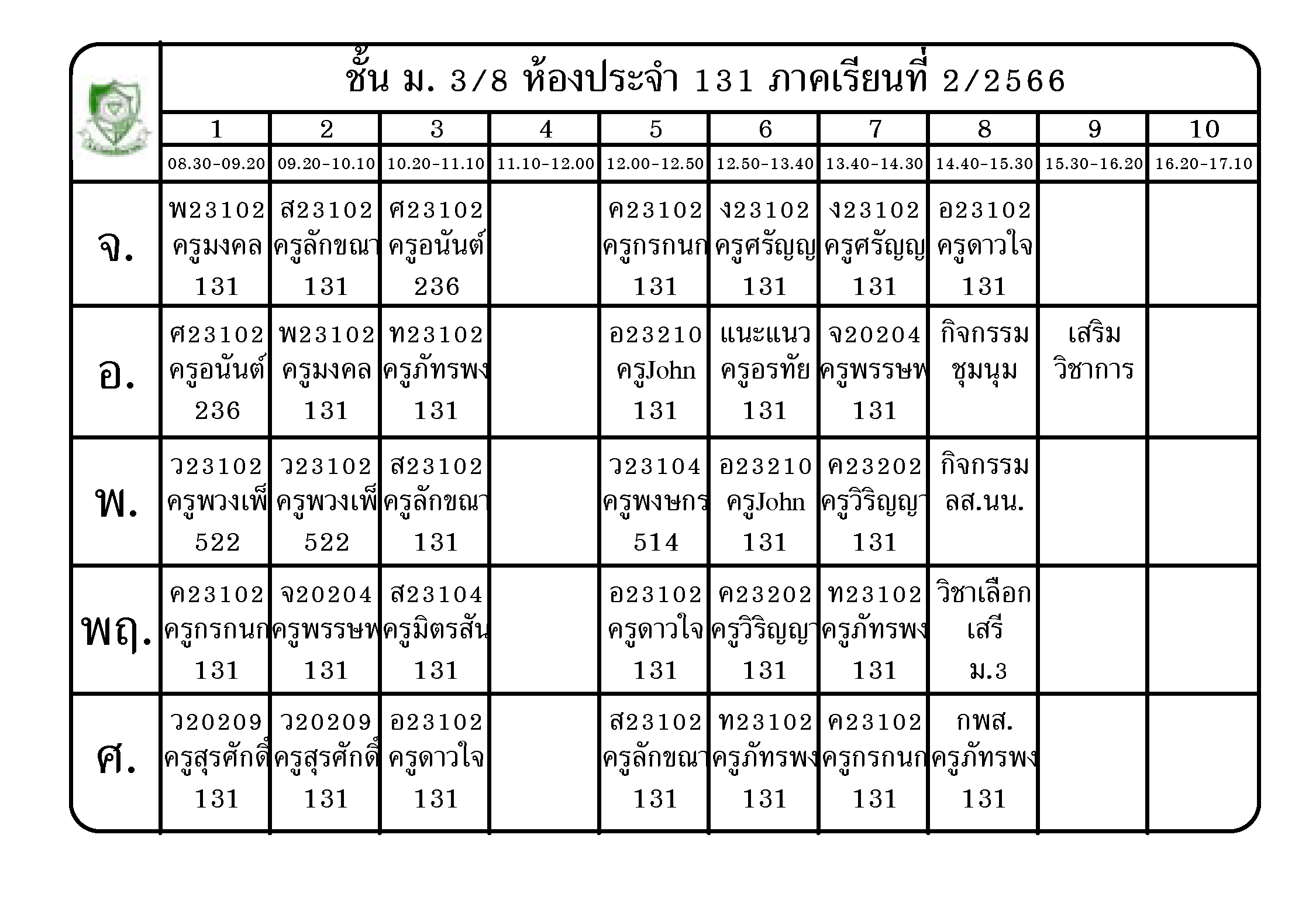 ตารางเรียน นักเรียนชั้น ม.3 ภาคเรียนที่ 2 ปีการศึกษา 2566