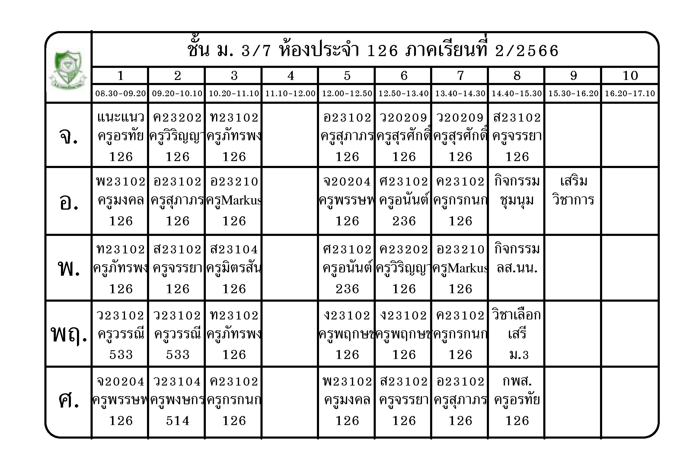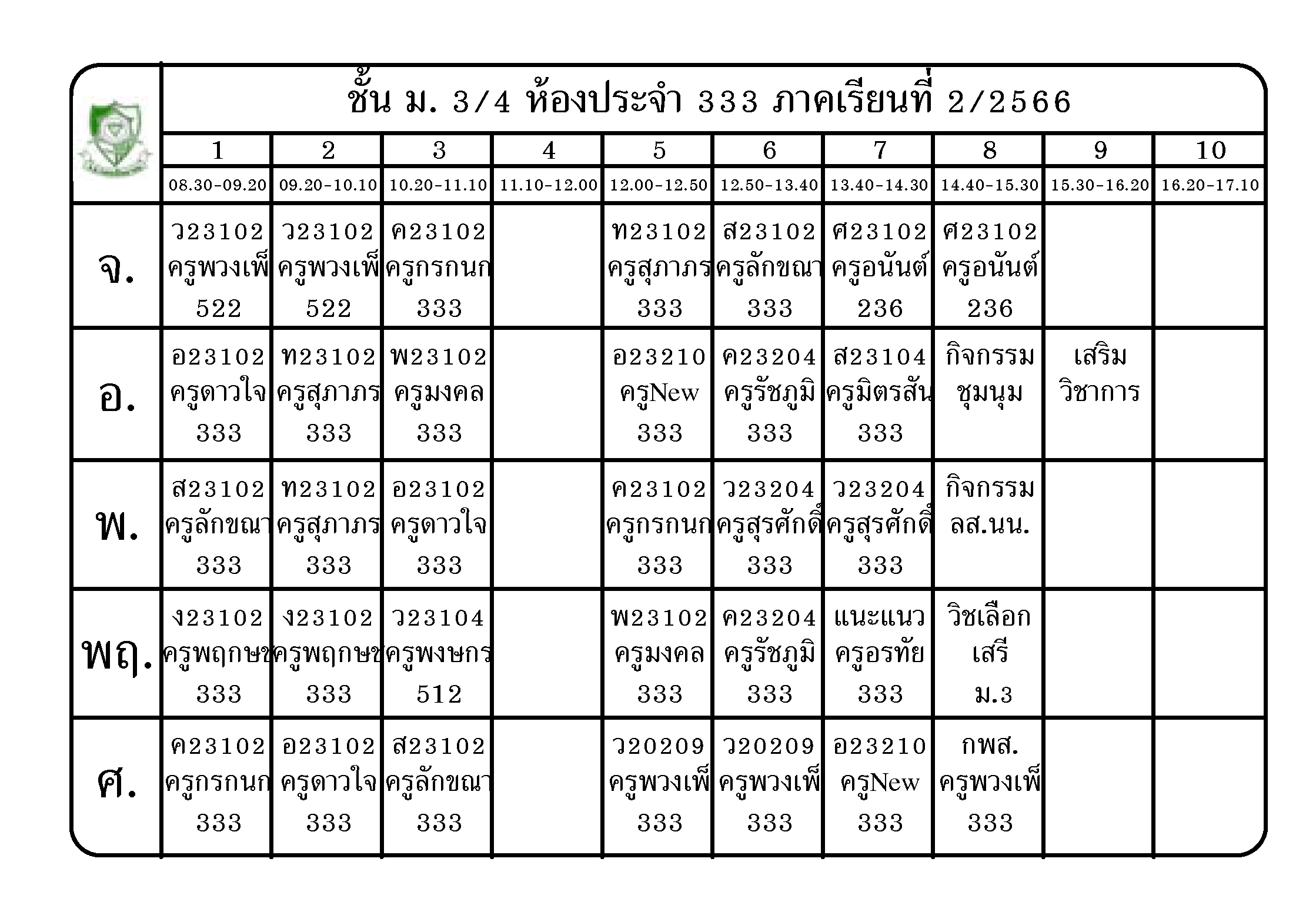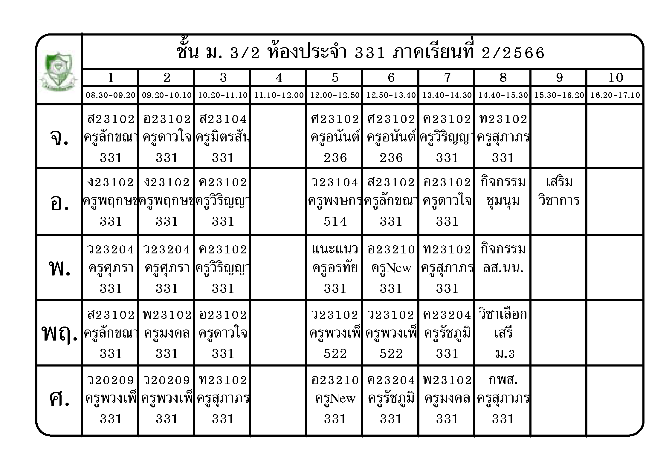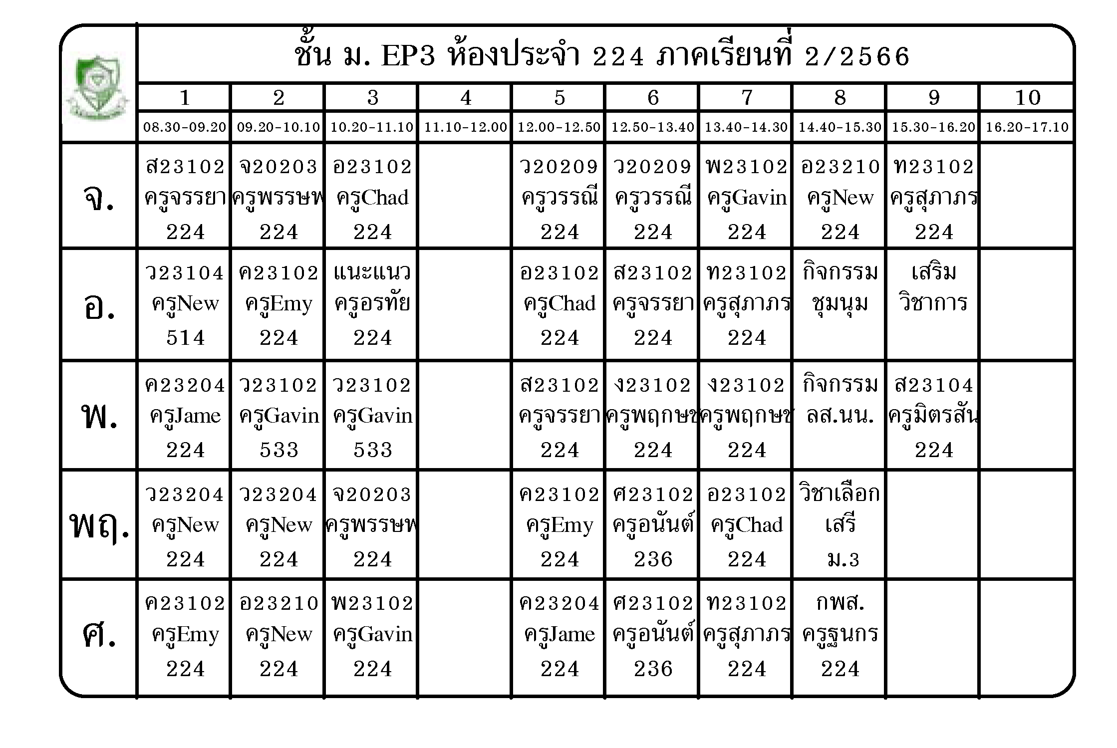 ตารางเรียน นักเรียนชั้น ม.3 ภาคเรียนที่ 2 ปีการศึกษา 2566
