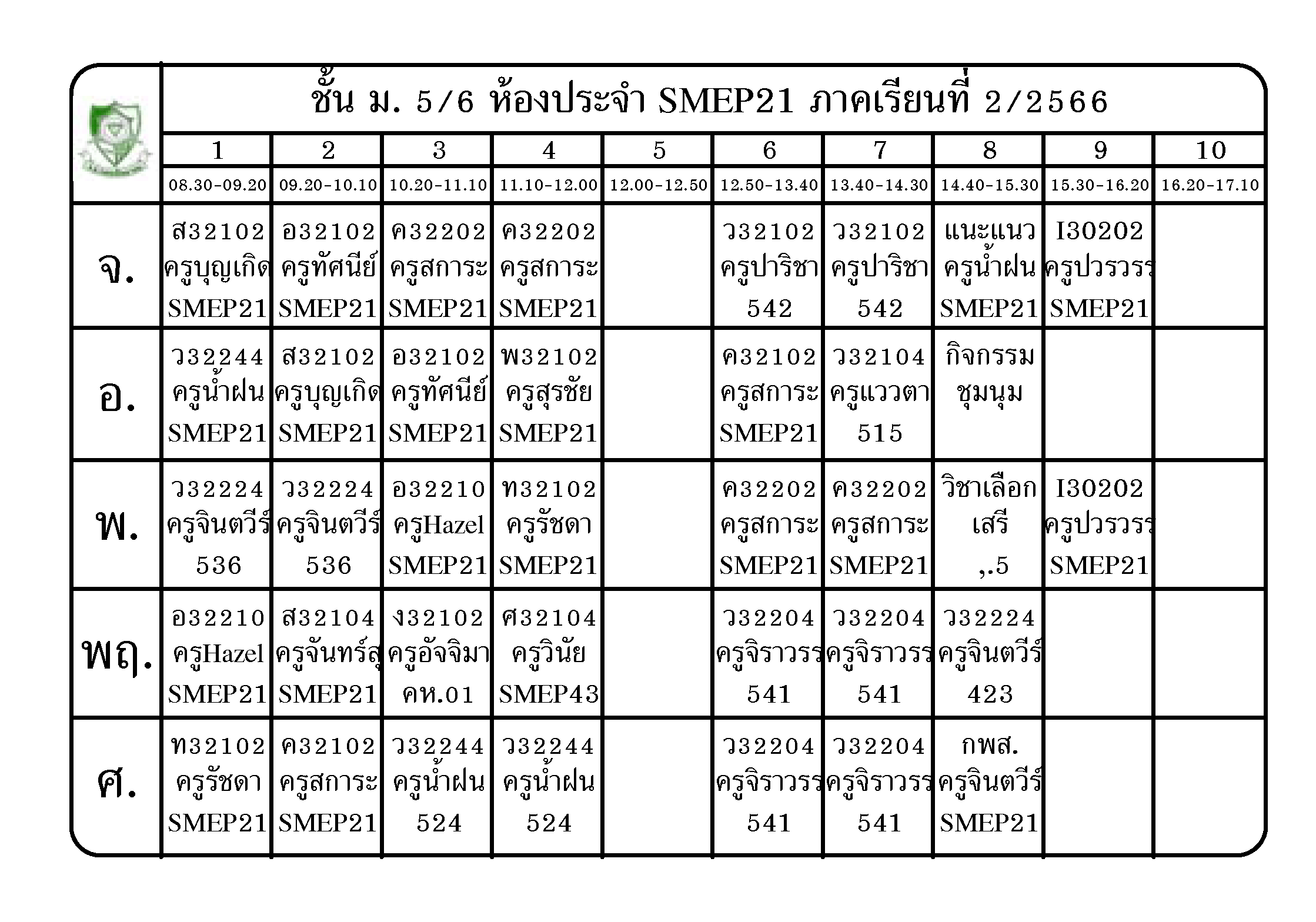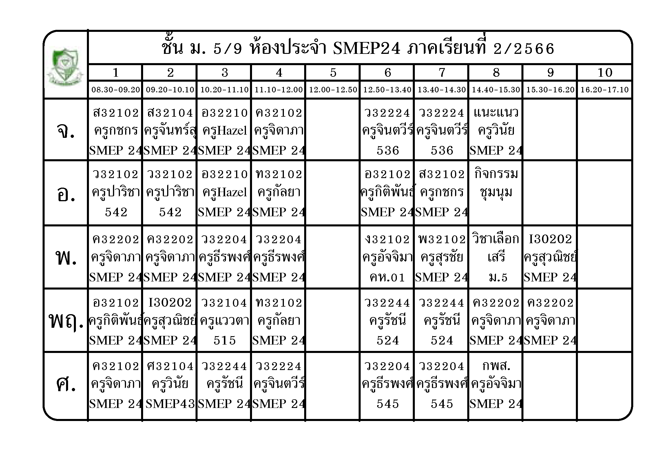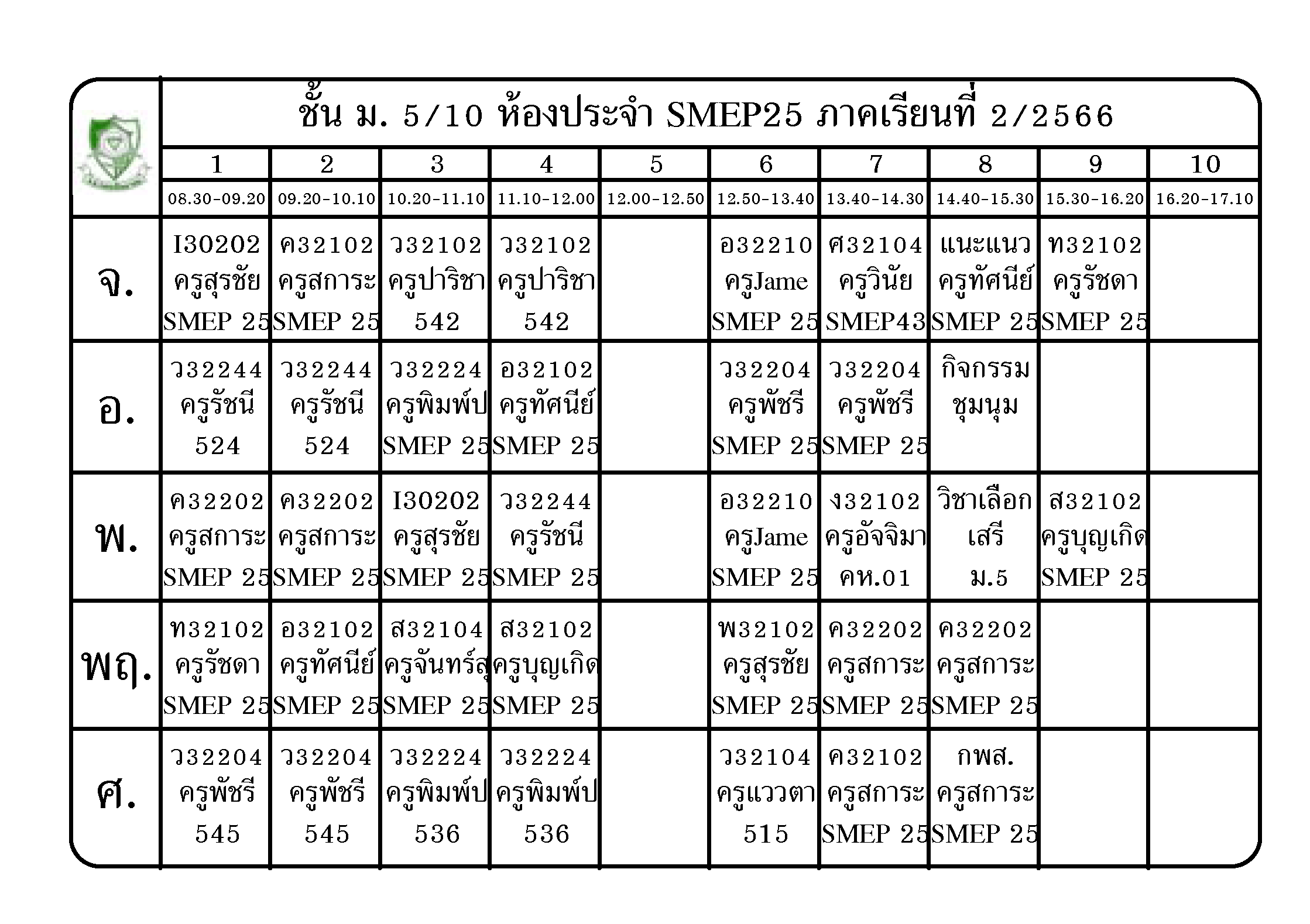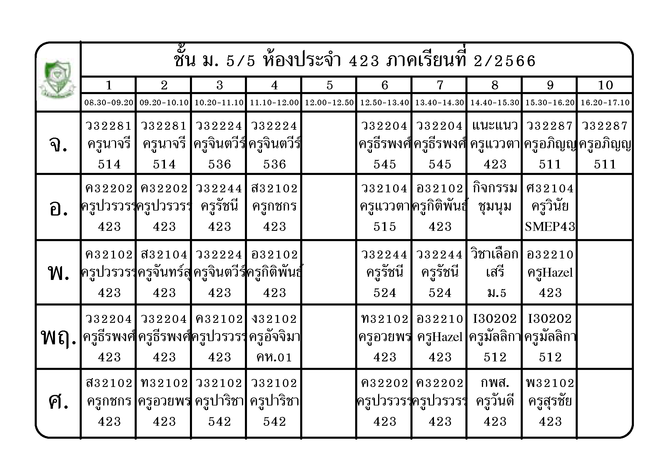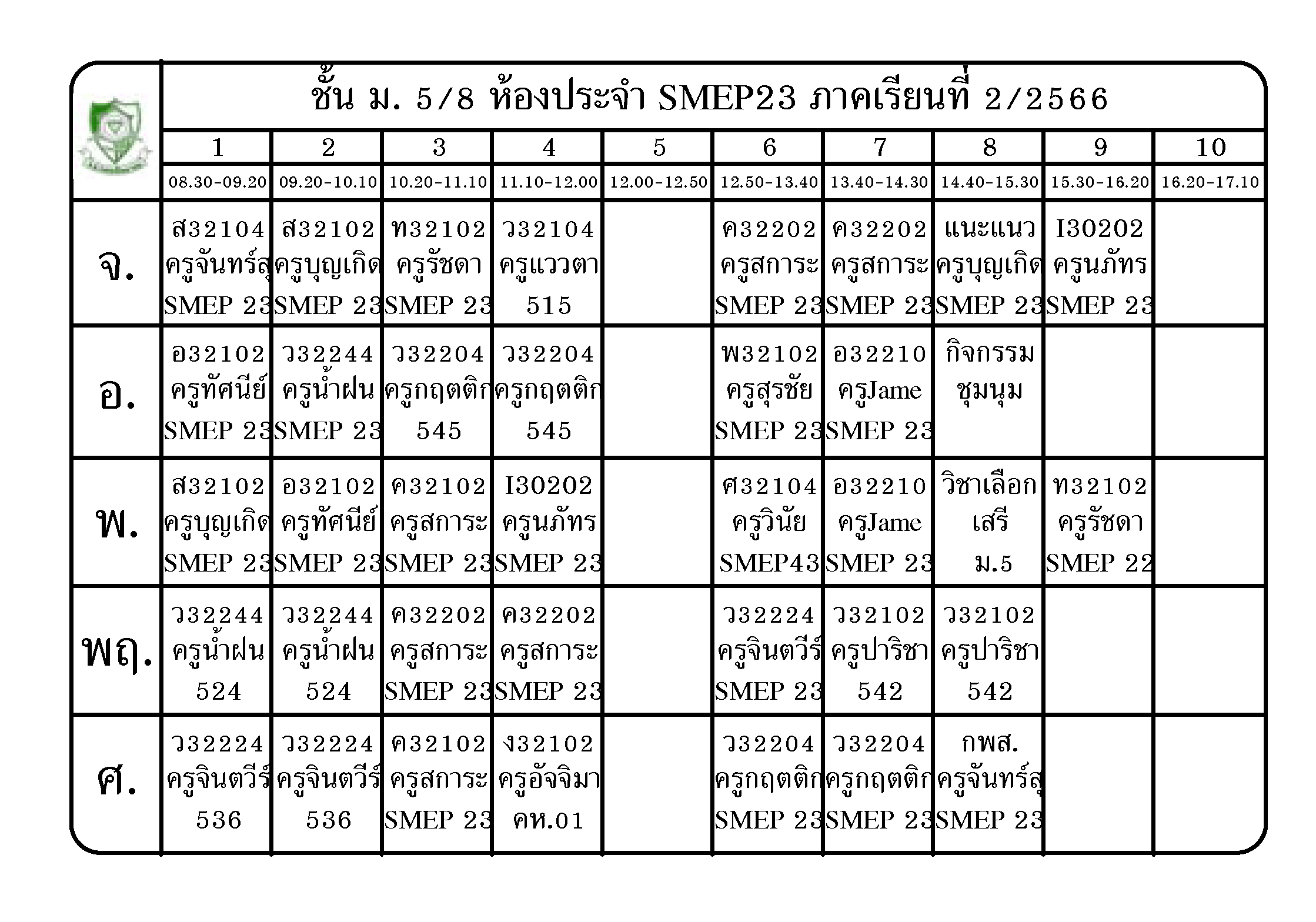 ตารางเรียน นักเรียนชั้น ม.5 ภาคเรียนที่ 2 ปีการศึกษา 2566
