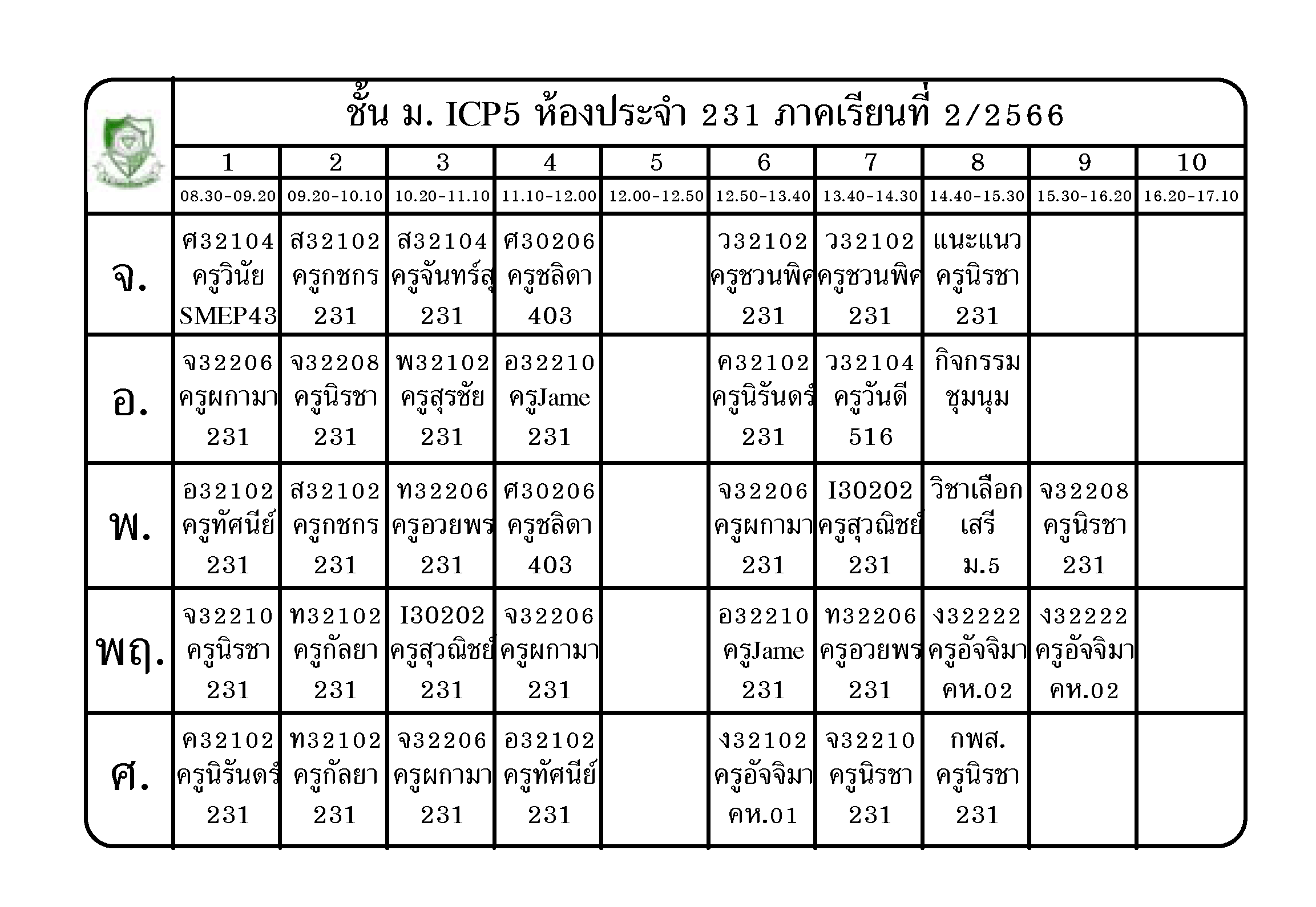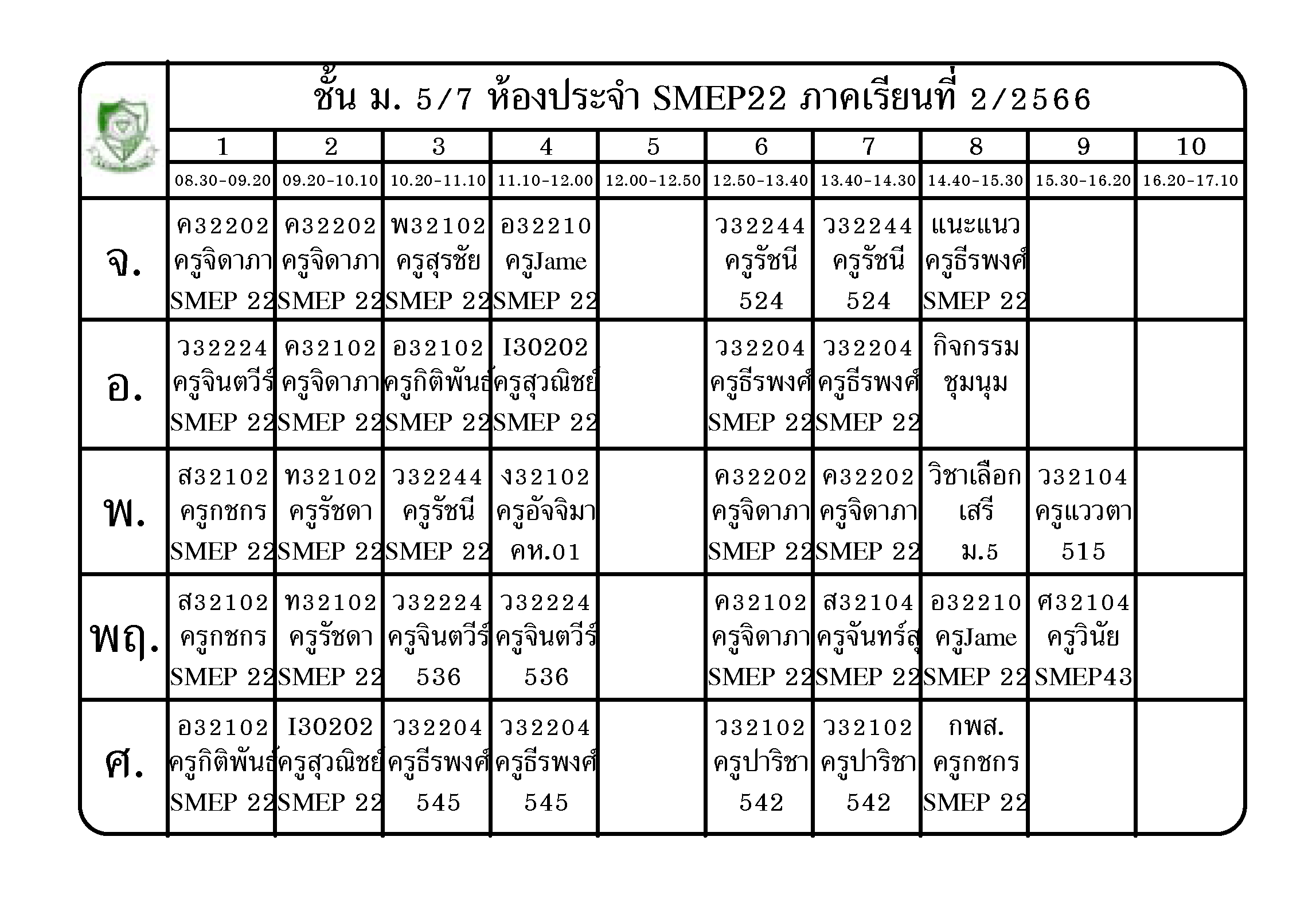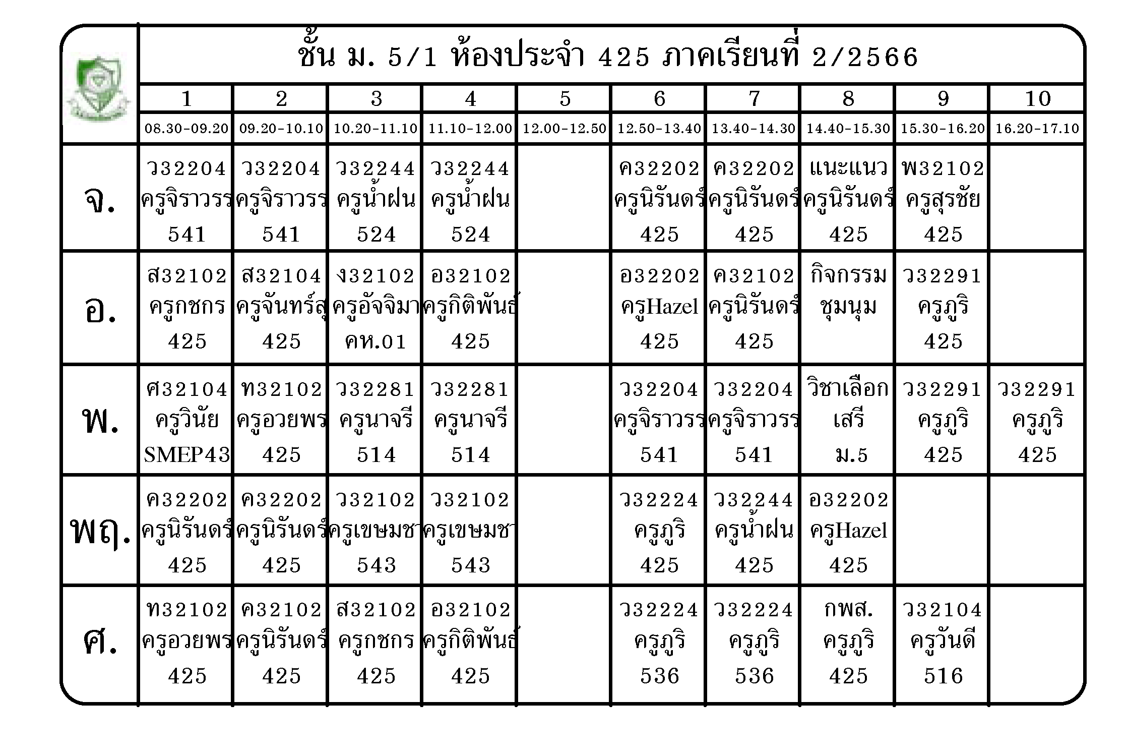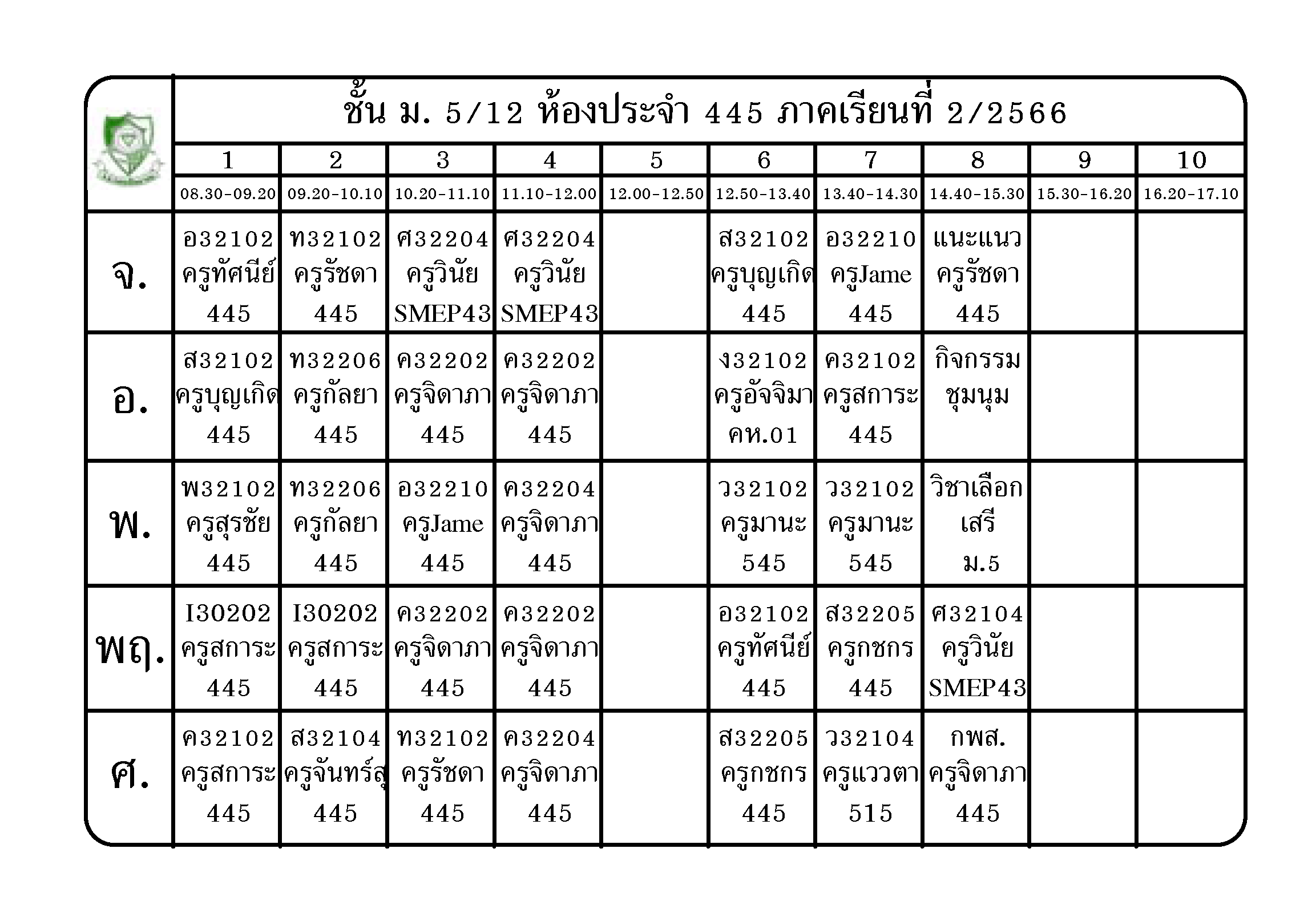 ตารางเรียน นักเรียนชั้น ม.5 ภาคเรียนที่ 2 ปีการศึกษา 2566