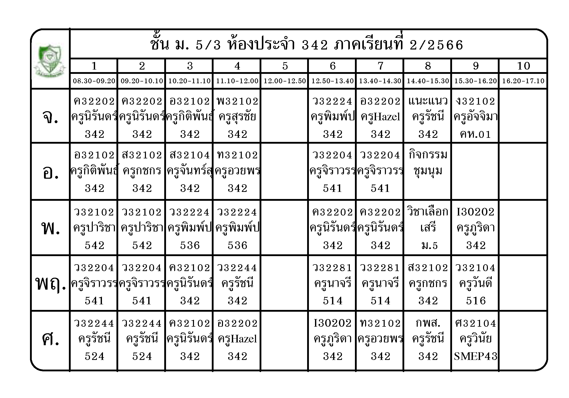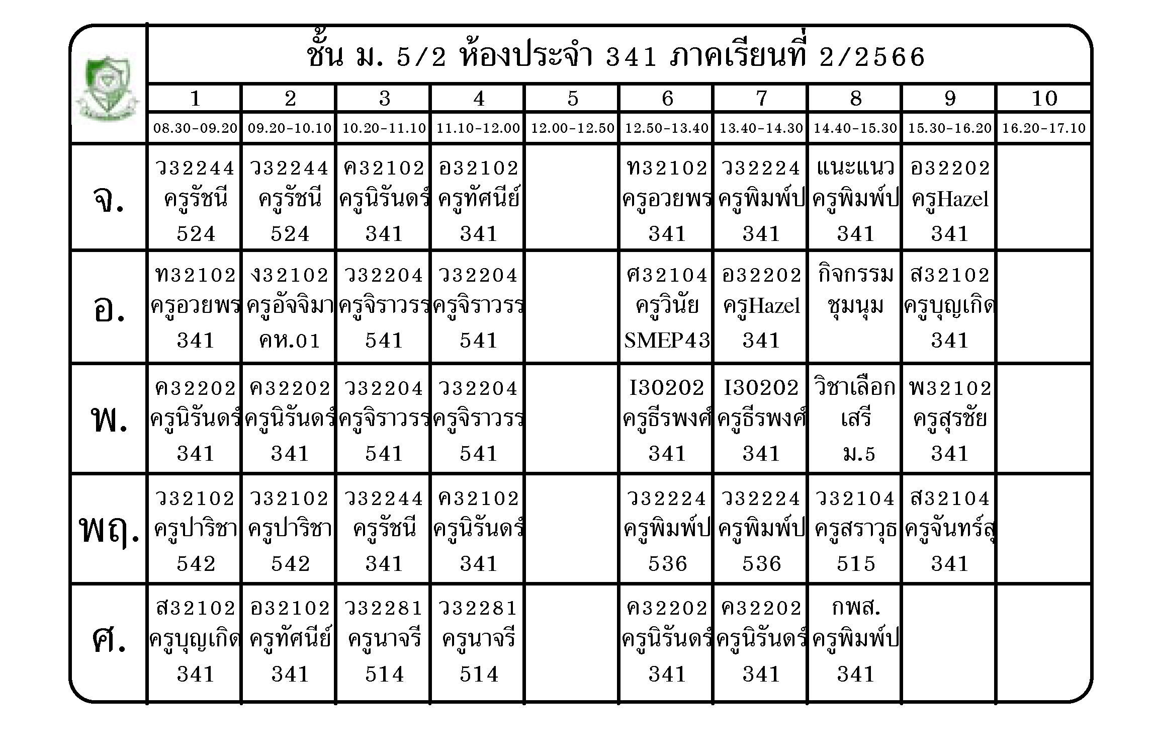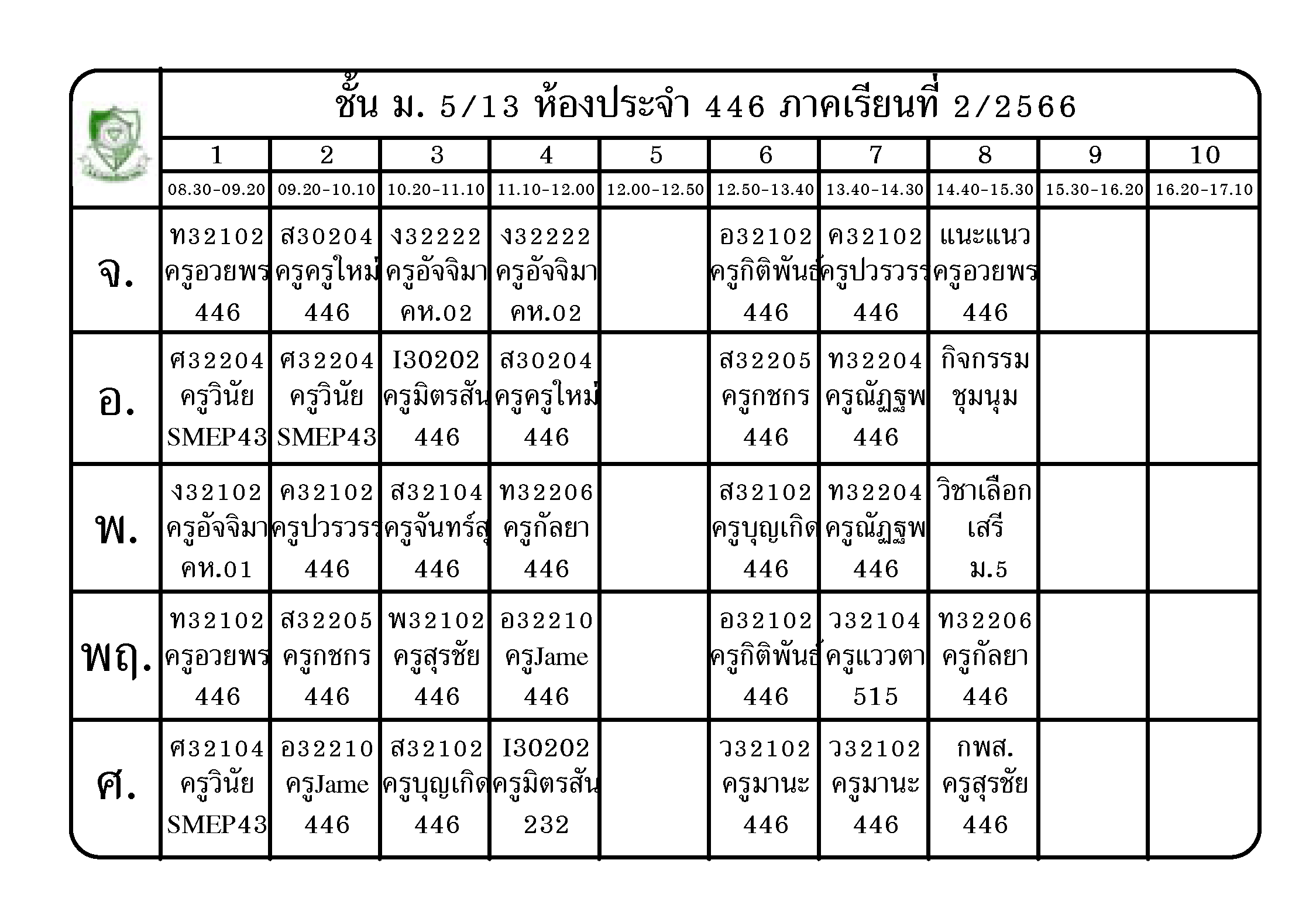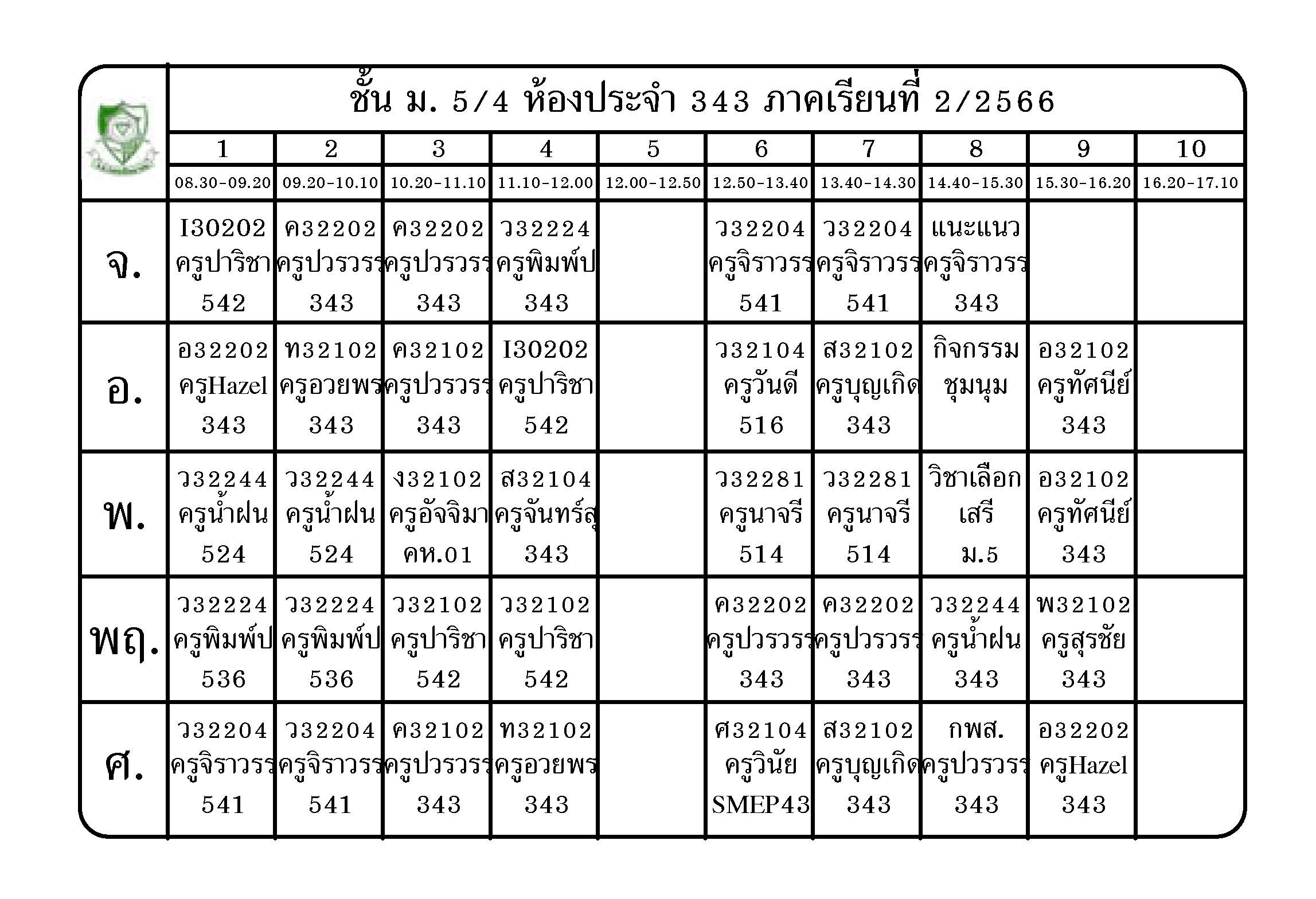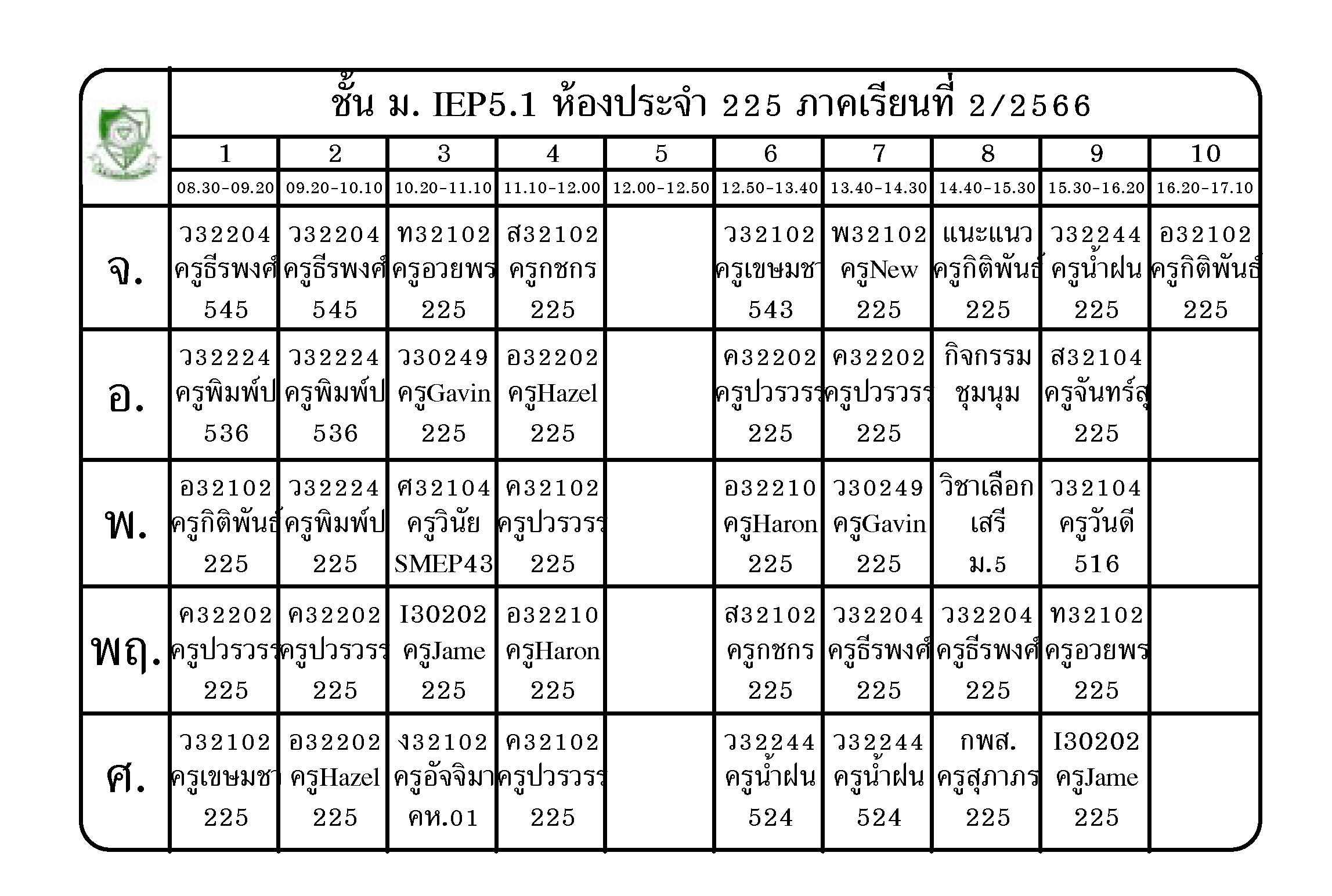 ตารางเรียน นักเรียนชั้น ม.5 ภาคเรียนที่ 2 ปีการศึกษา 2566