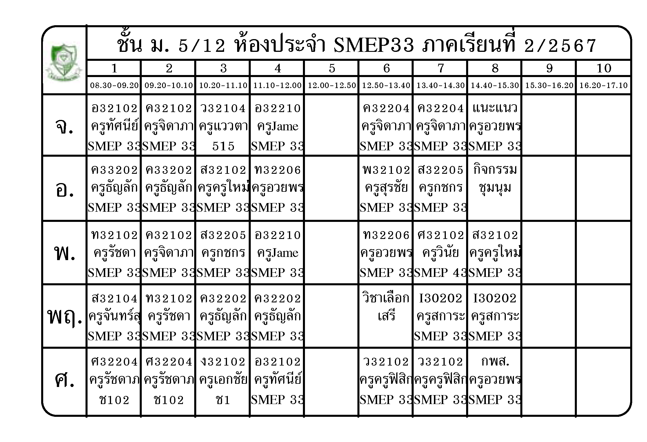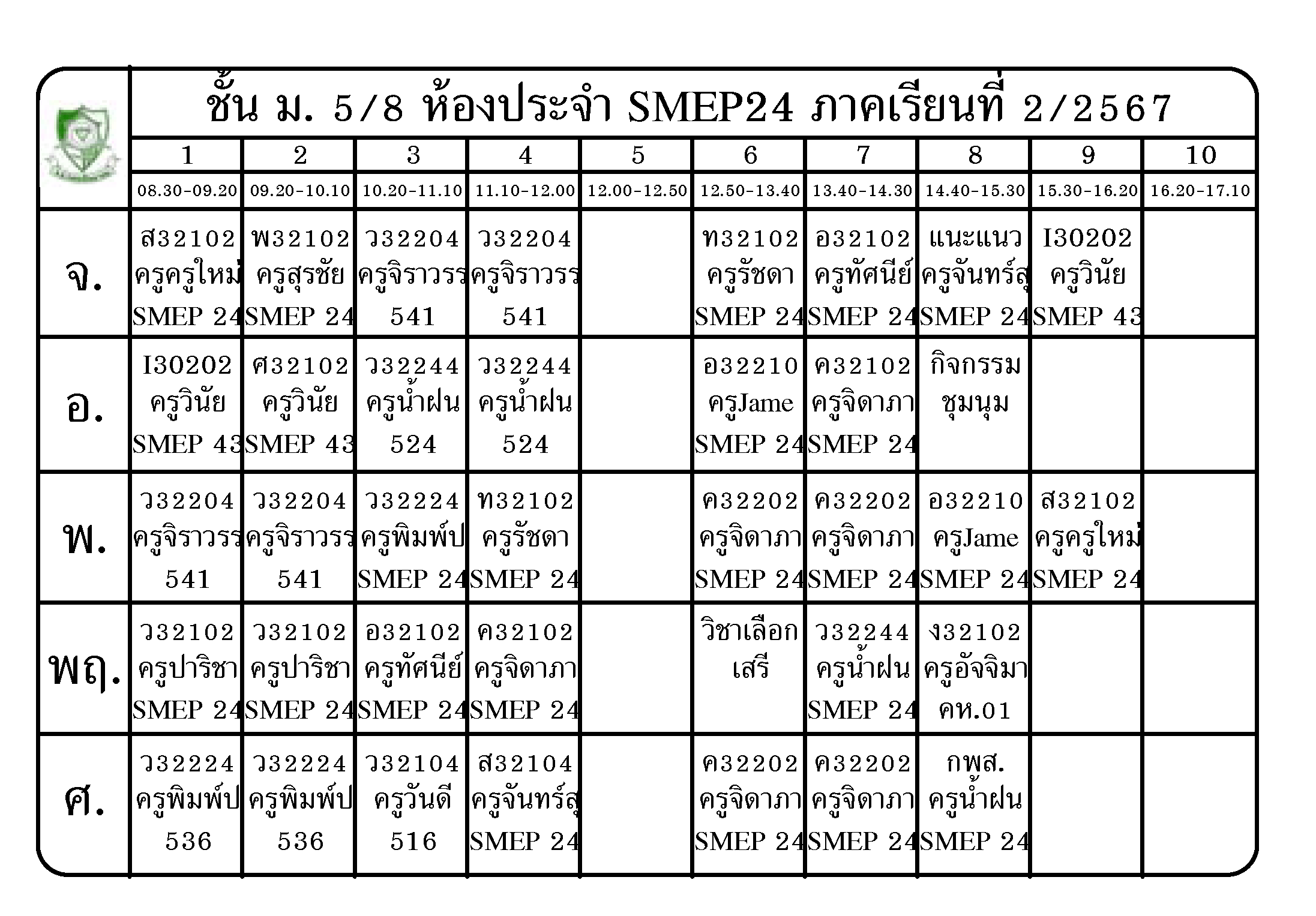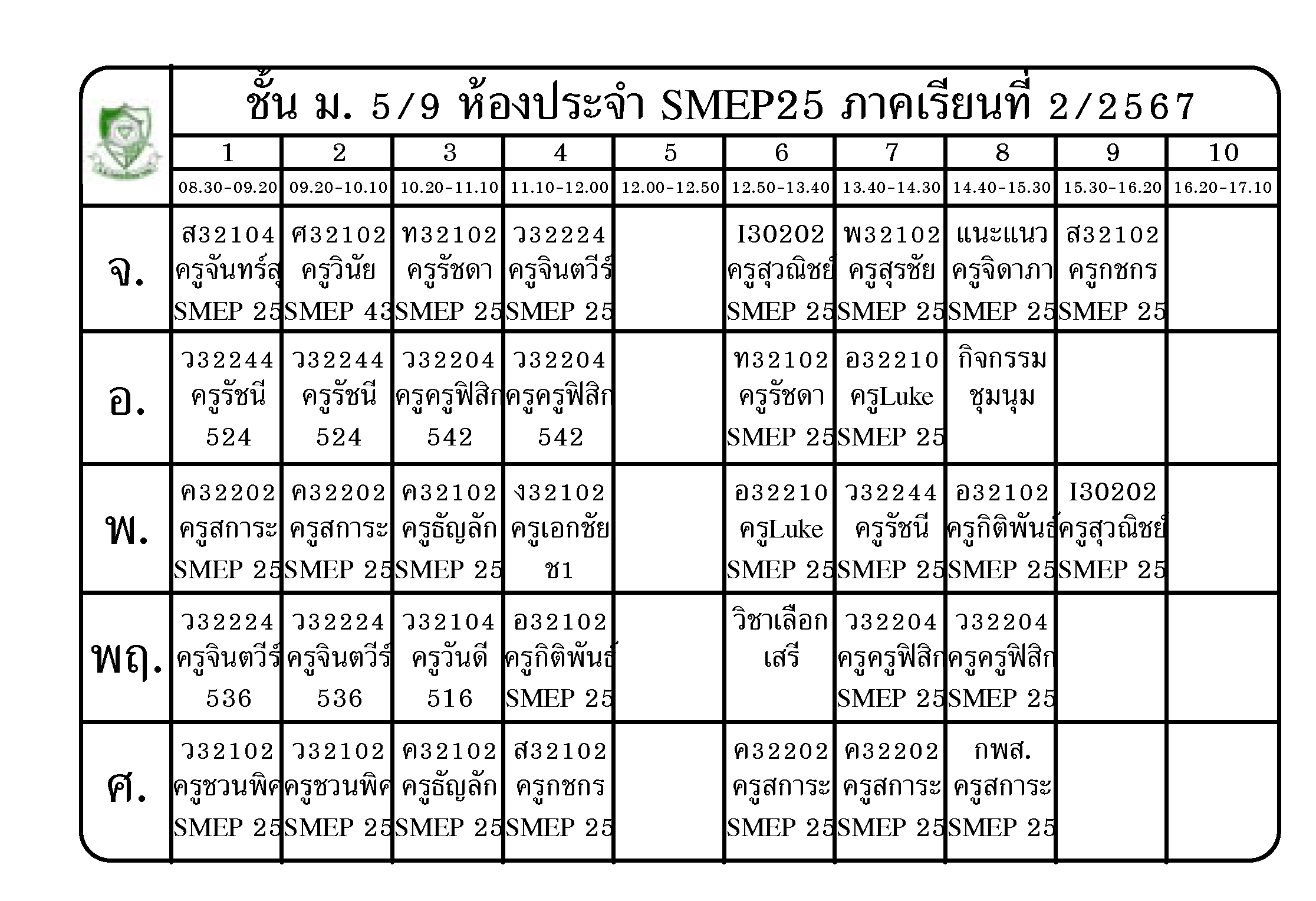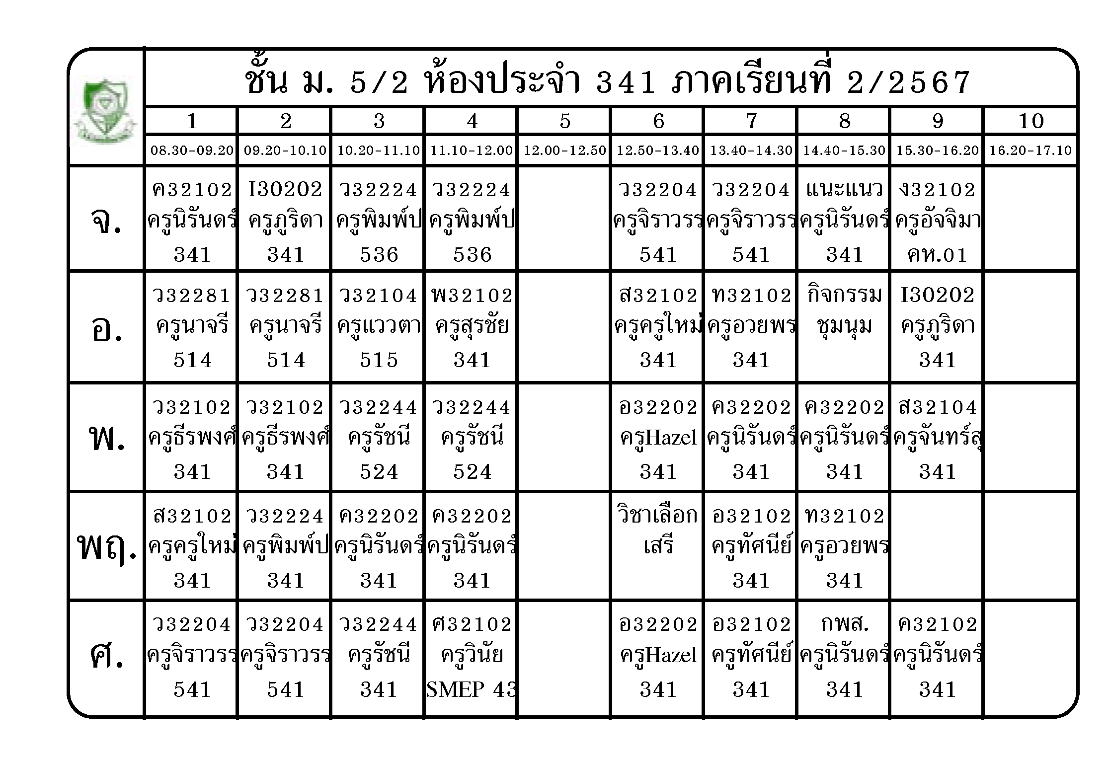 ตารางเรียน ภาคเรียนที่ 2 ปีการศึกษา 2567 ระดับชั้นมัธยมศึกษาปีที่ 5