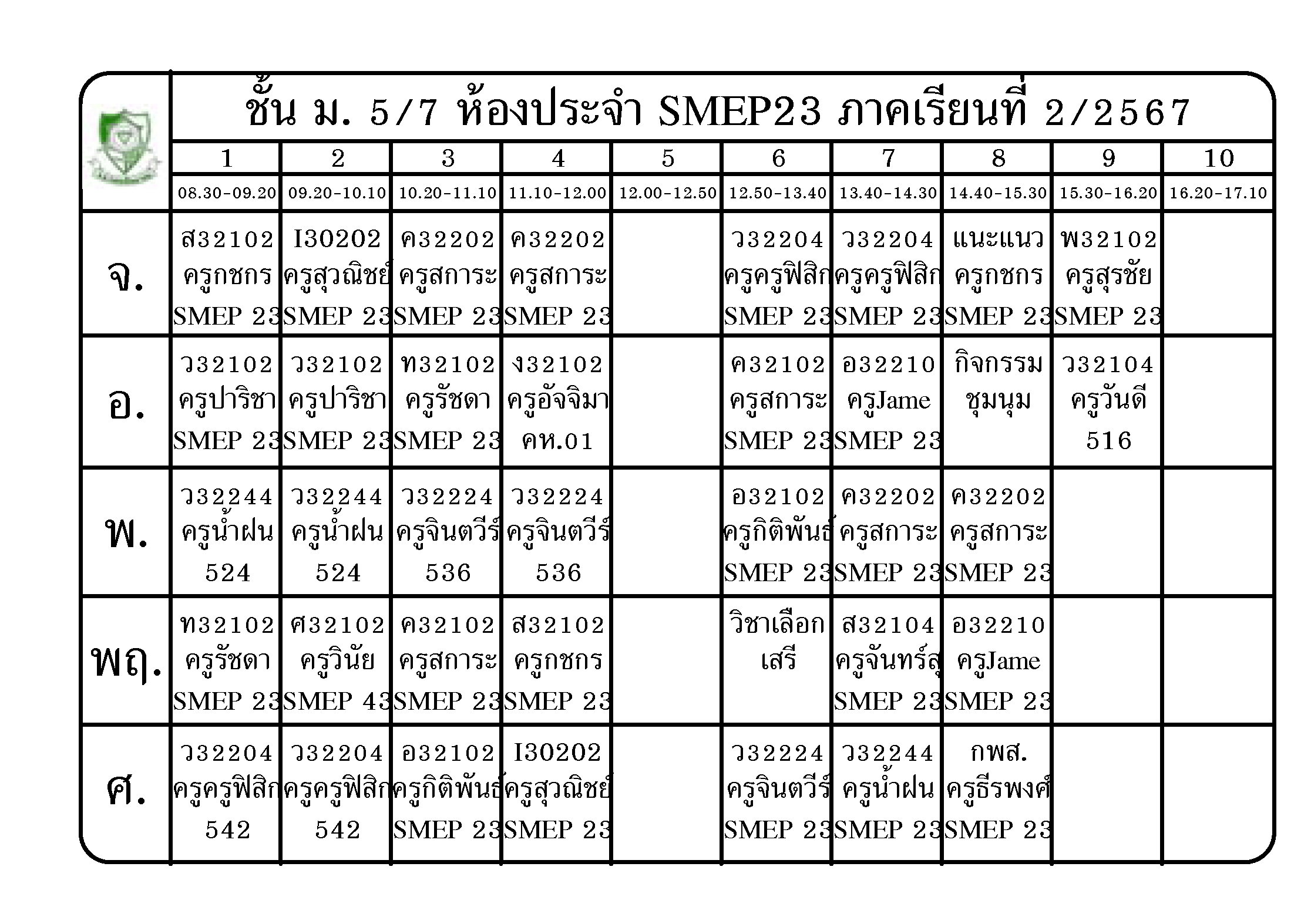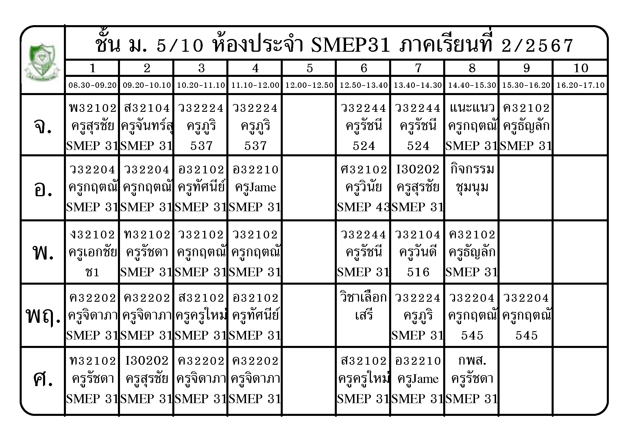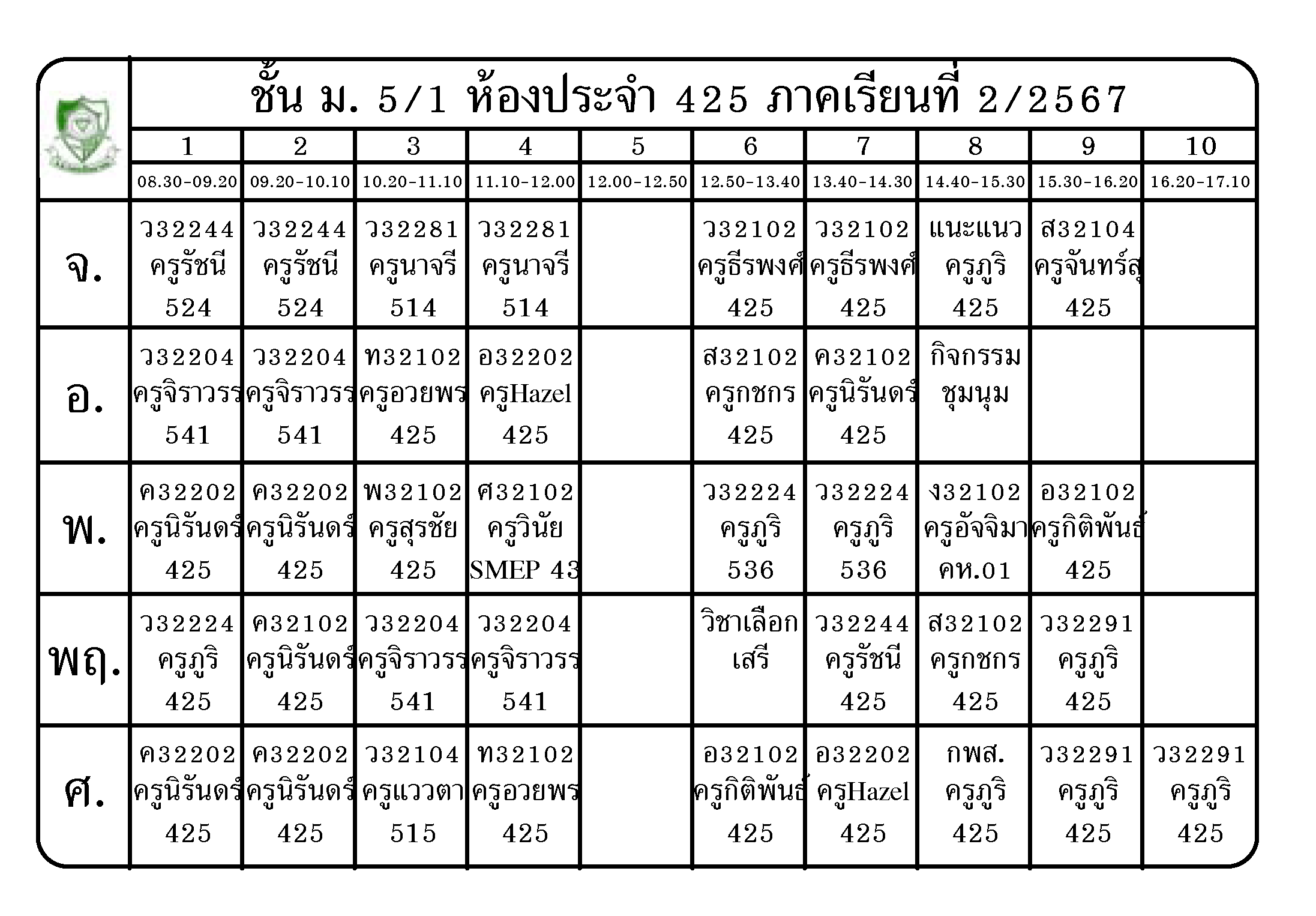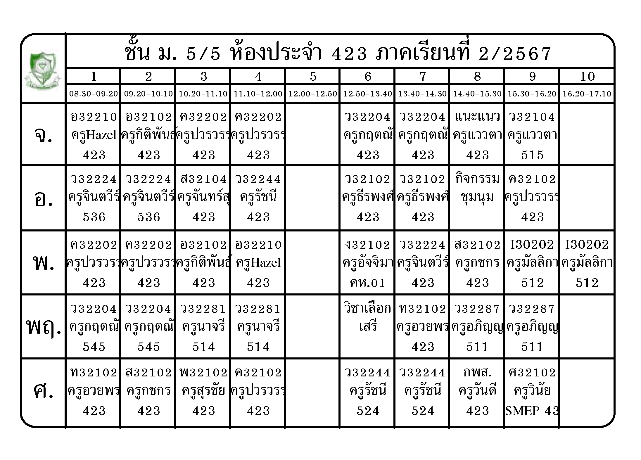 ตารางเรียน ภาคเรียนที่ 2 ปีการศึกษา 2567 ระดับชั้นมัธยมศึกษาปีที่ 5