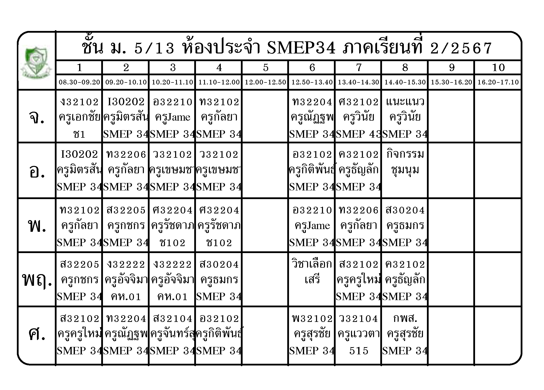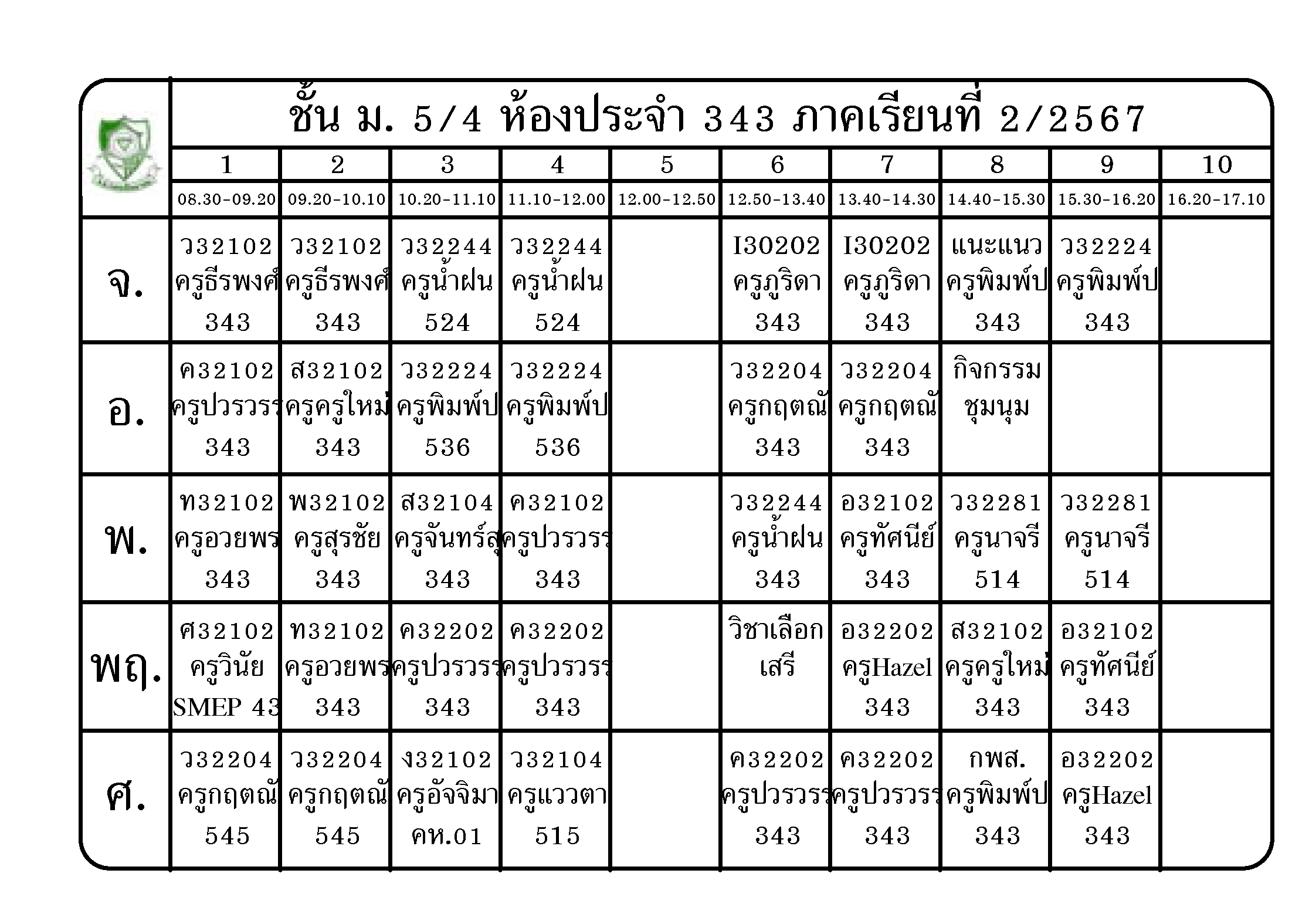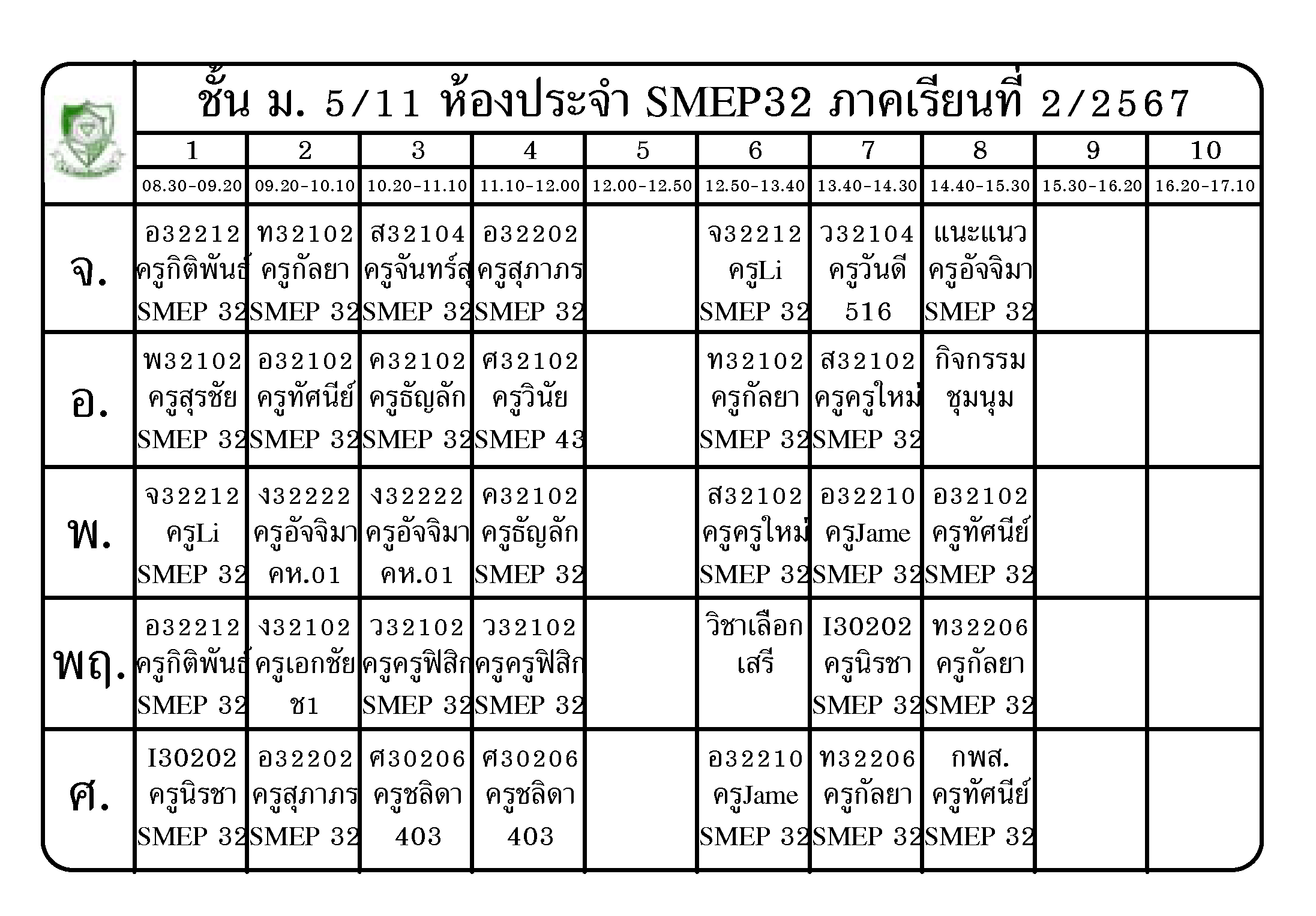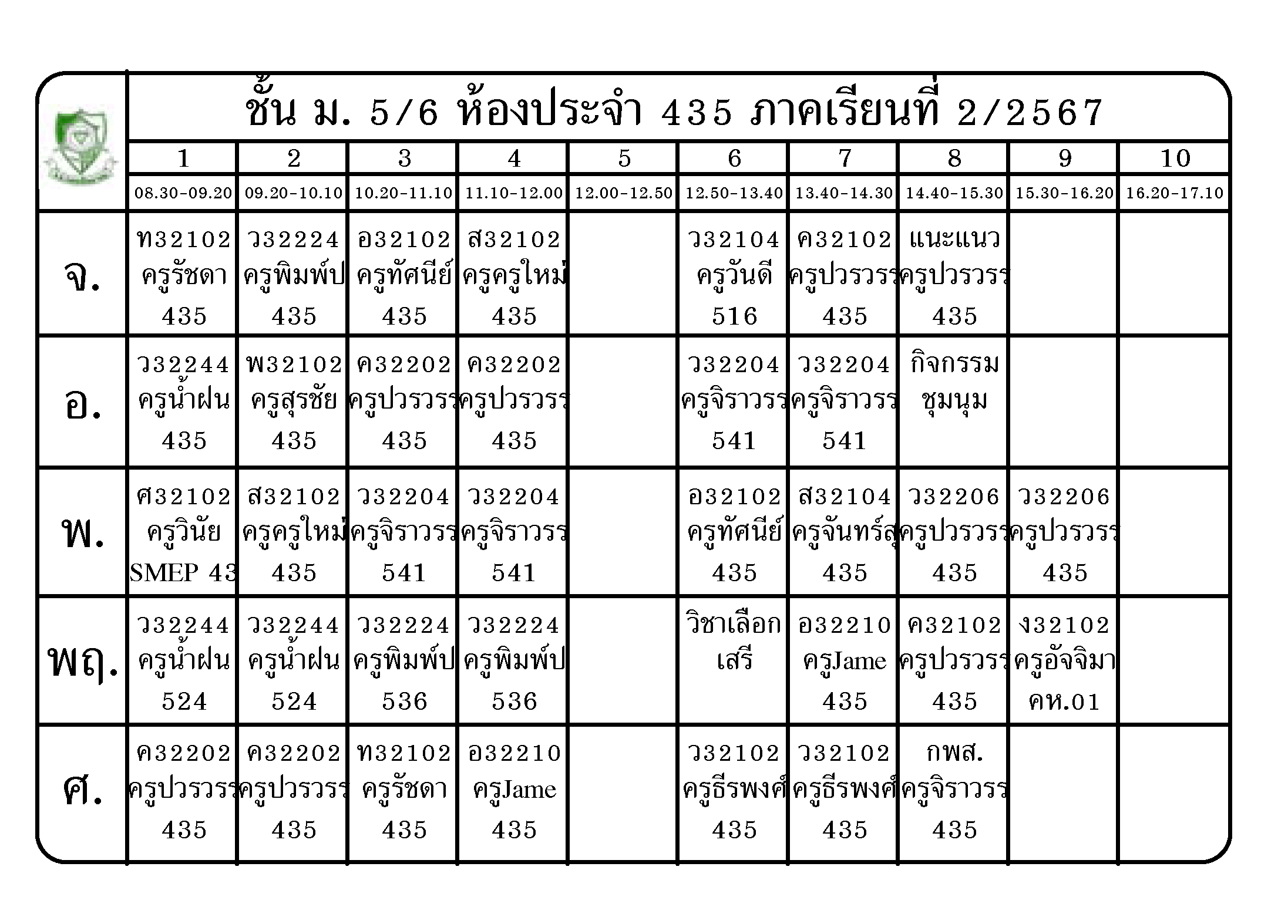 ตารางเรียน ภาคเรียนที่ 2 ปีการศึกษา 2567 ระดับชั้นมัธยมศึกษาปีที่ 5