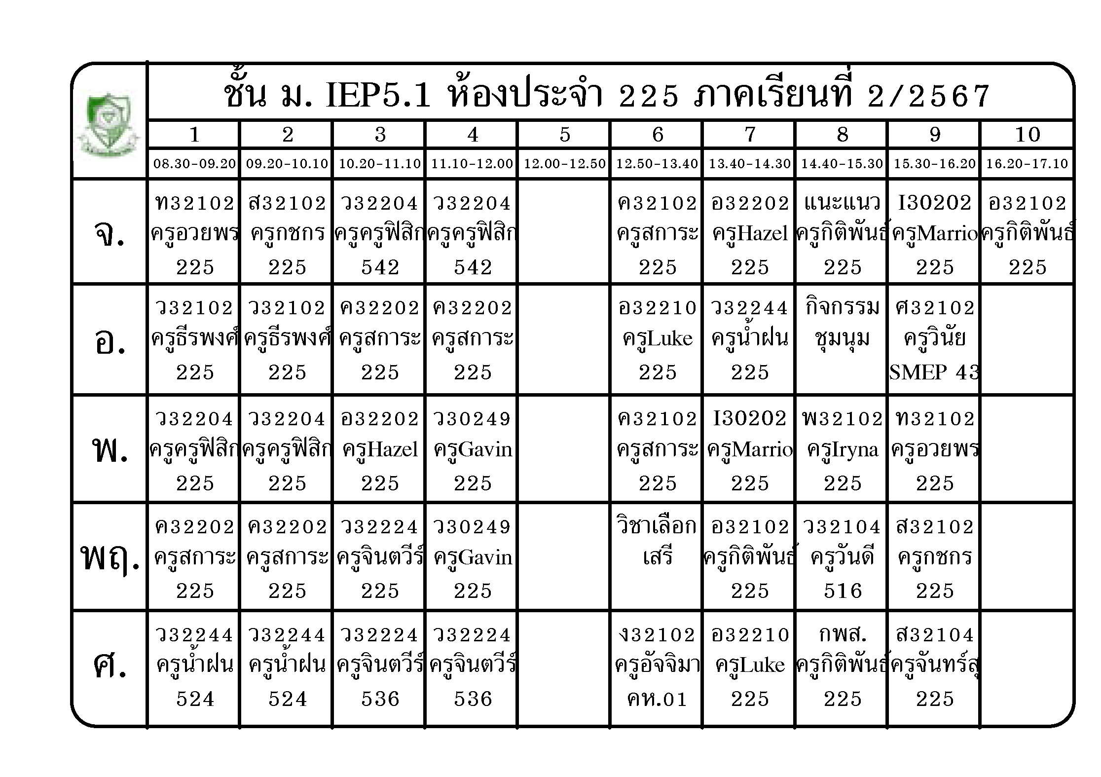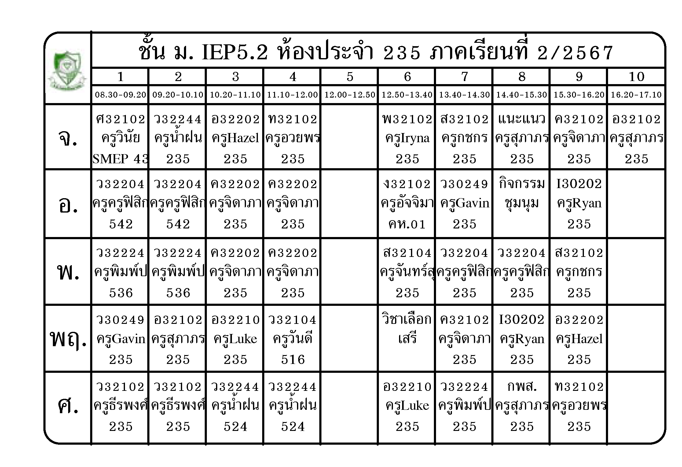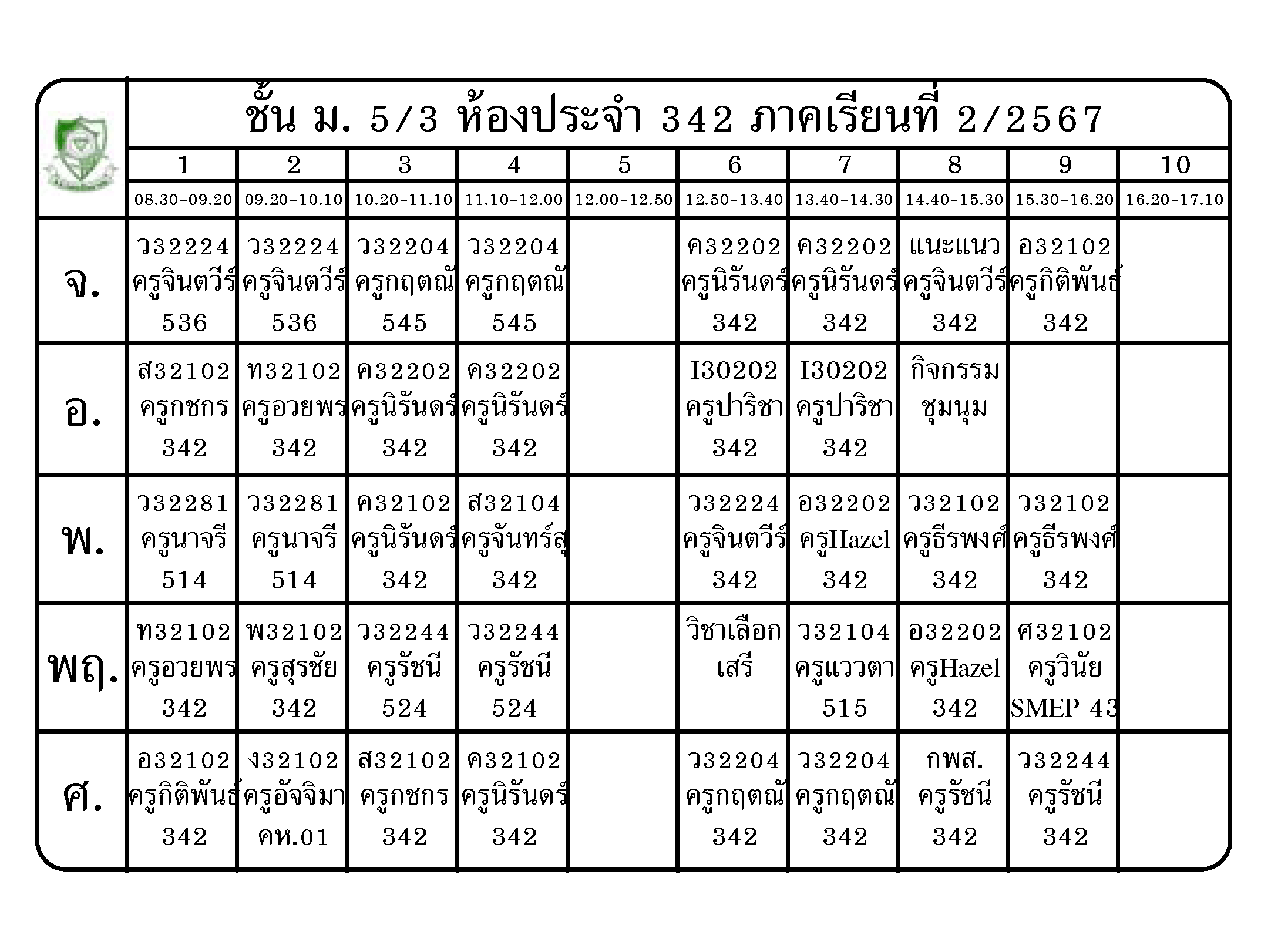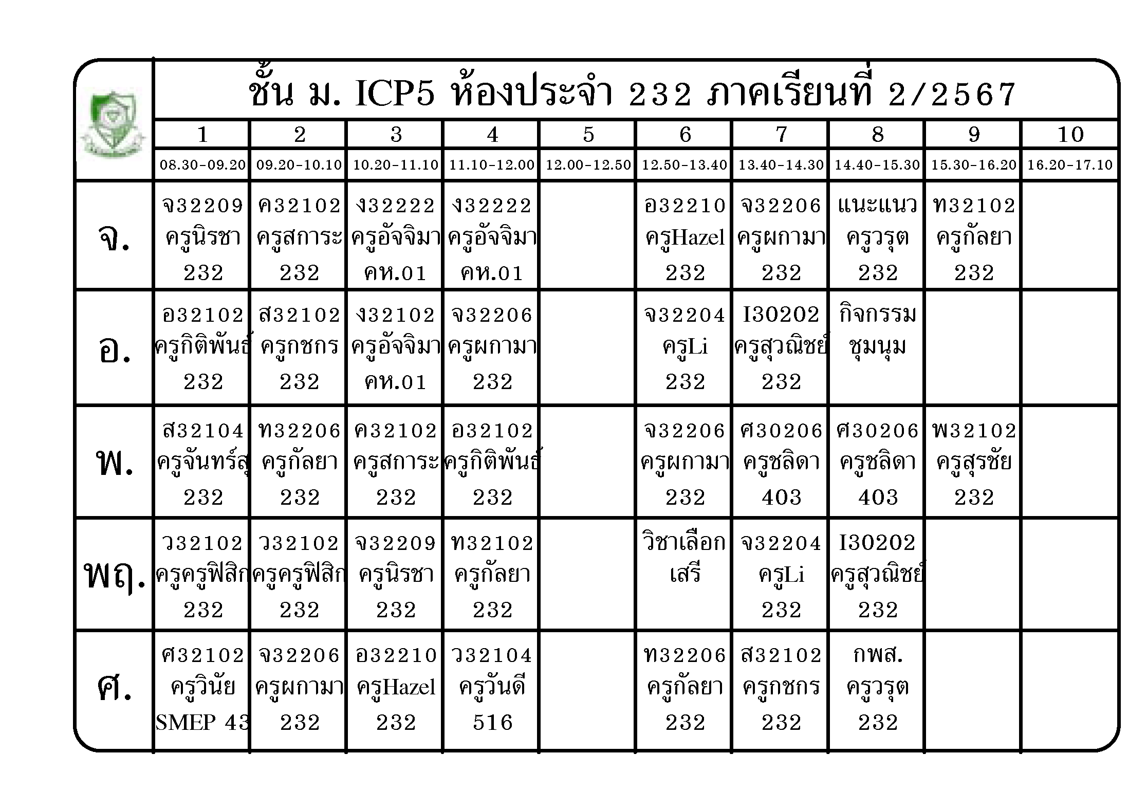 ตารางเรียน ภาคเรียนที่ 2 ปีการศึกษา 2567 ระดับชั้นมัธยมศึกษาปีที่ 5