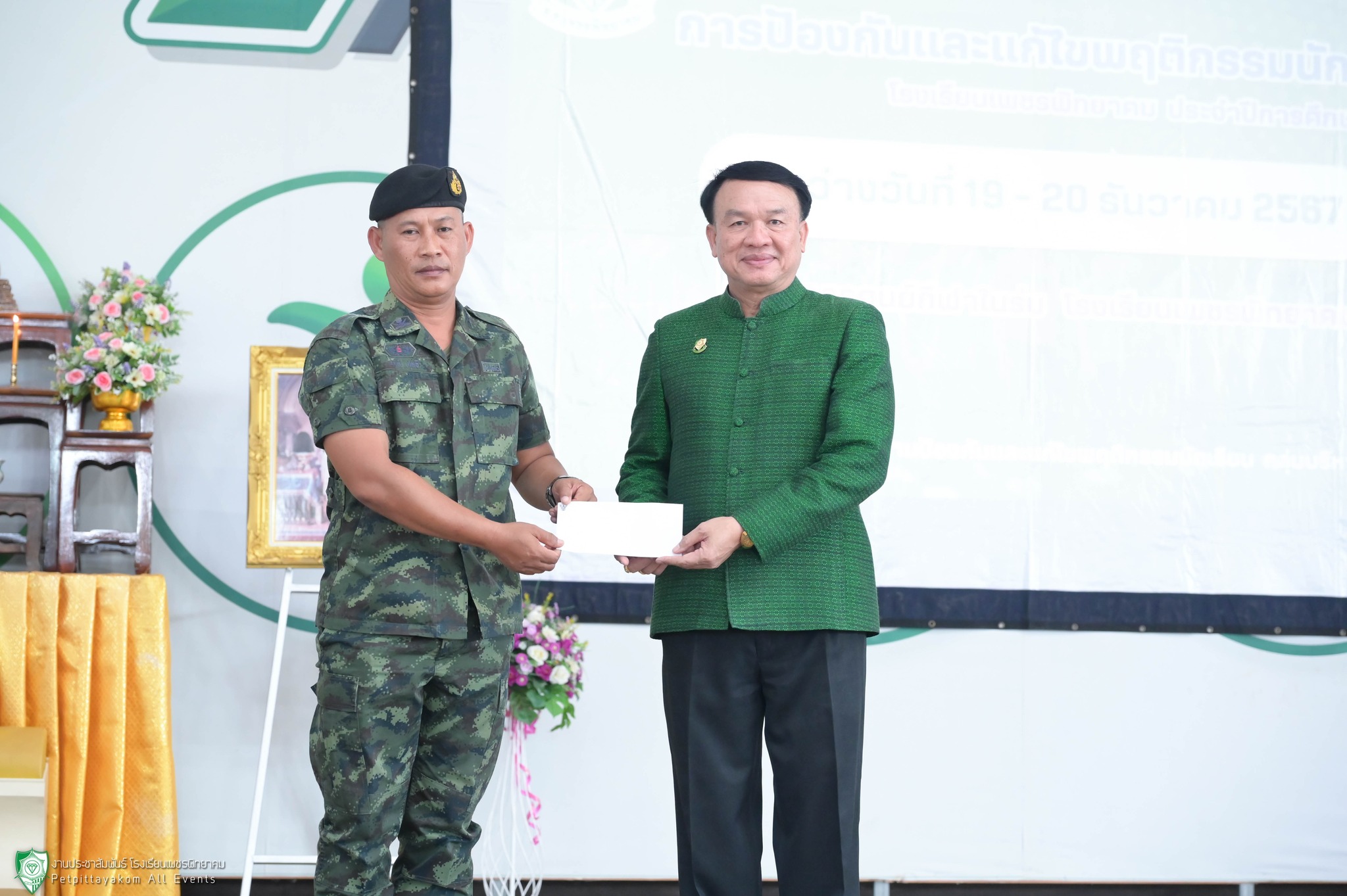 โรงเรียนเพชรพิทยาคมดำเนินการจัดกิจกรรมการป้องกันและแก้ไขพฤติกรรมนักเรียน ประจำปีการศึกษา 2567 เพื่อส่งเสริมระเบียบ วินัย น้อมนำหลักธรรมไปปฏิบัติในชีวิตประจำวัน และพัฒนาคุณลักษณะอันพึงประสงค์ของนักเรียน ได้รับเกียรติจากคณะครูฝึก หน่วยฝึกนักศึกษาวิชาทหาร มณฑลทหารบกที่ 36 เป็นวิทยากรโดยมี นายวิเศษ ปิ่นพิทักษ์ ผู้อำนวยการโรงเรียน เป็นประธานพิธี พร้อมด้วยรองผู้อำนวยการ และคณะครูเข้าร่วมกิจกรรม เมื่อวันที่ 19 ธันวาคม 2567 ณ อาคารศูนย์กีฬาในร่ม โรงเรียนเพชรพิทยาคม จังหวัดเพชรบูรณ์