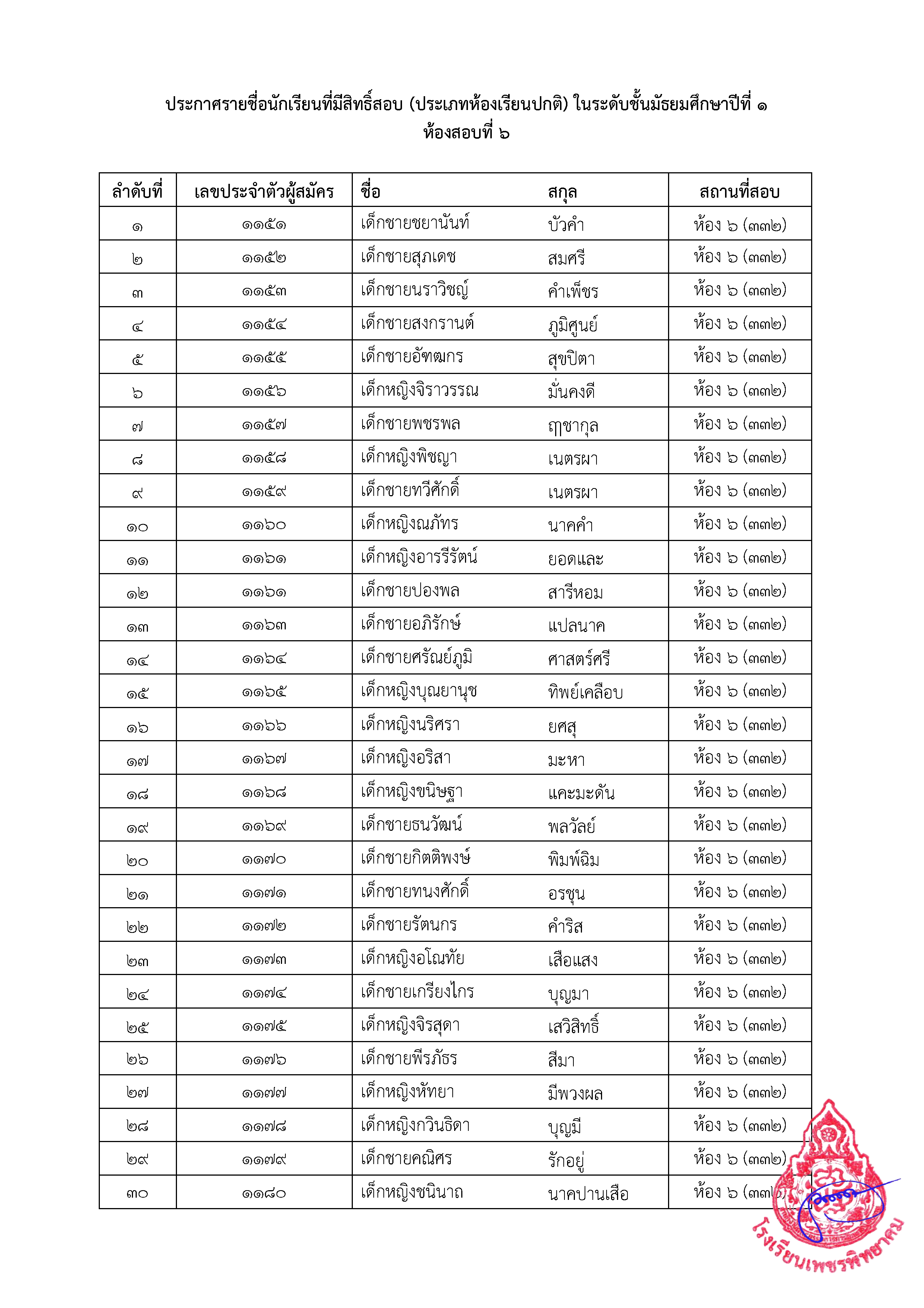 ปีการศึกษา 2566 (ประเภทห้องเรียนปกติ) วัน เวลาและสถานที่สอบ