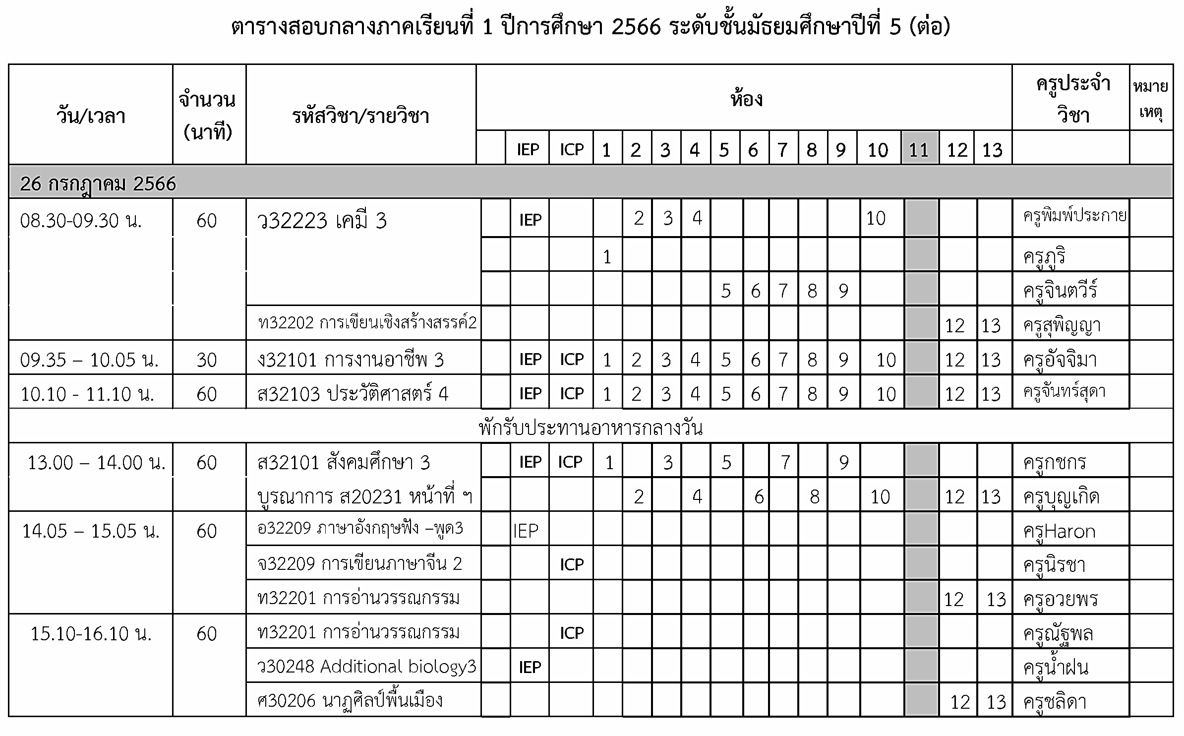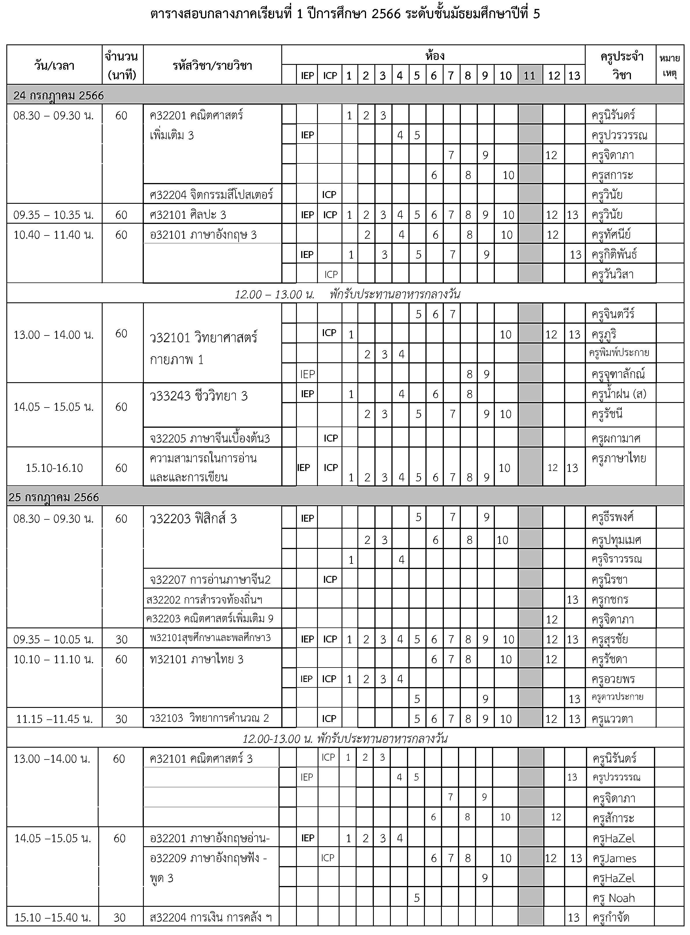 ตารางสอบกลางภาคเรียนที่ 1 ปีการศึกษา 2566 ระดับชั้น ม.5