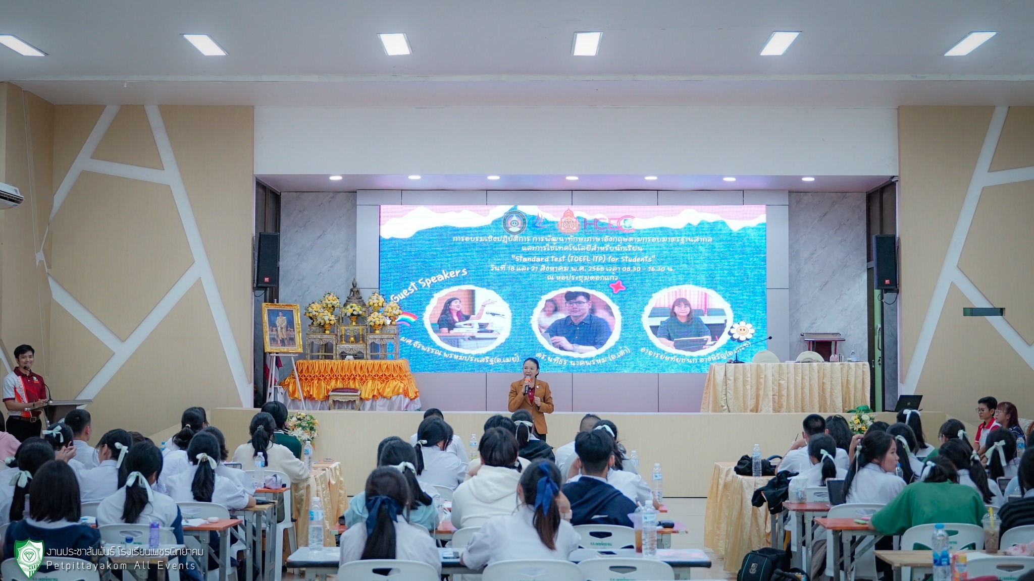 โรงเรียนเพชรพิทยาคม จัดกิจกรรมอบรมเชิงปฏิบัติการ "การพัฒนาทักษะภาษาอังกฤษตามกรอบมาตรฐานสากล และเทคโนโลยีสำหรับนักเรียน Standard Test (TOEFL ITP) for Students" ประจำปีการศึกษา 2568 เมื่อวันที่ 18 และ 21 สิงหาคม 2568 ณ หอประชุมดอกแก้ว โรงเรียนเพชรพิทยาคม โดยมีนายวิเศษ ปิ่นพิทักษ์ ผู้อำนวยการโรงเรียนเป็นประธาน พร้อมด้วยฝ่ายบริหาร คณะครู และนักเรียนเข้าร่วมกิจกรรมอย่างพร้อมเพรียง