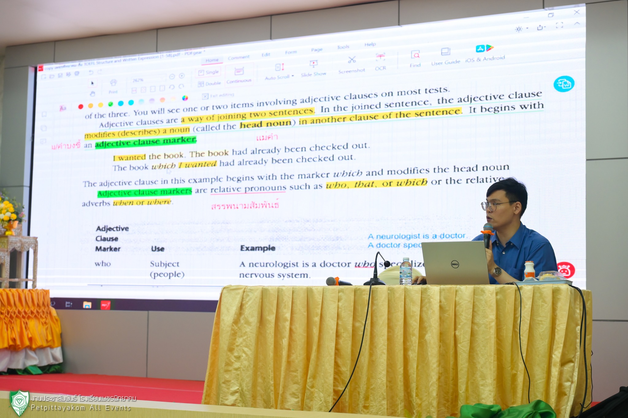 โรงเรียนเพชรพิทยาคม จัดอบรมเชิงปฏิบัติการพัฒนาทักษะภาษาอังกฤษตามกรอบมาตรฐานสากล Standard Test (TOEFL ITP) for Students ปีการศึกษา 2568