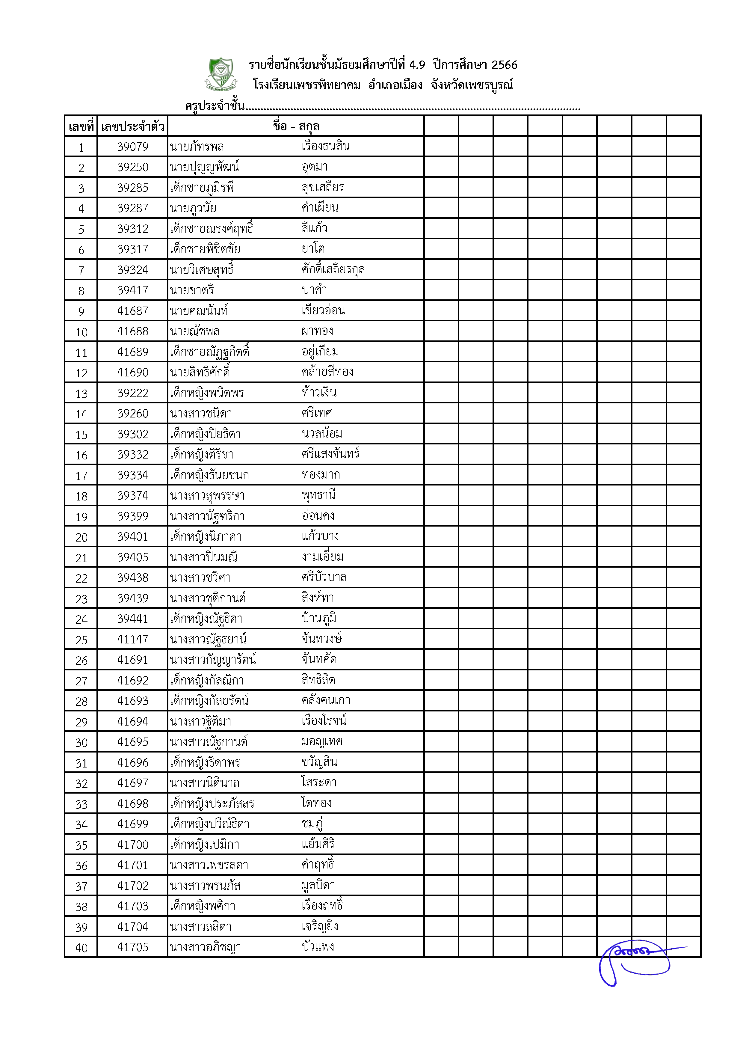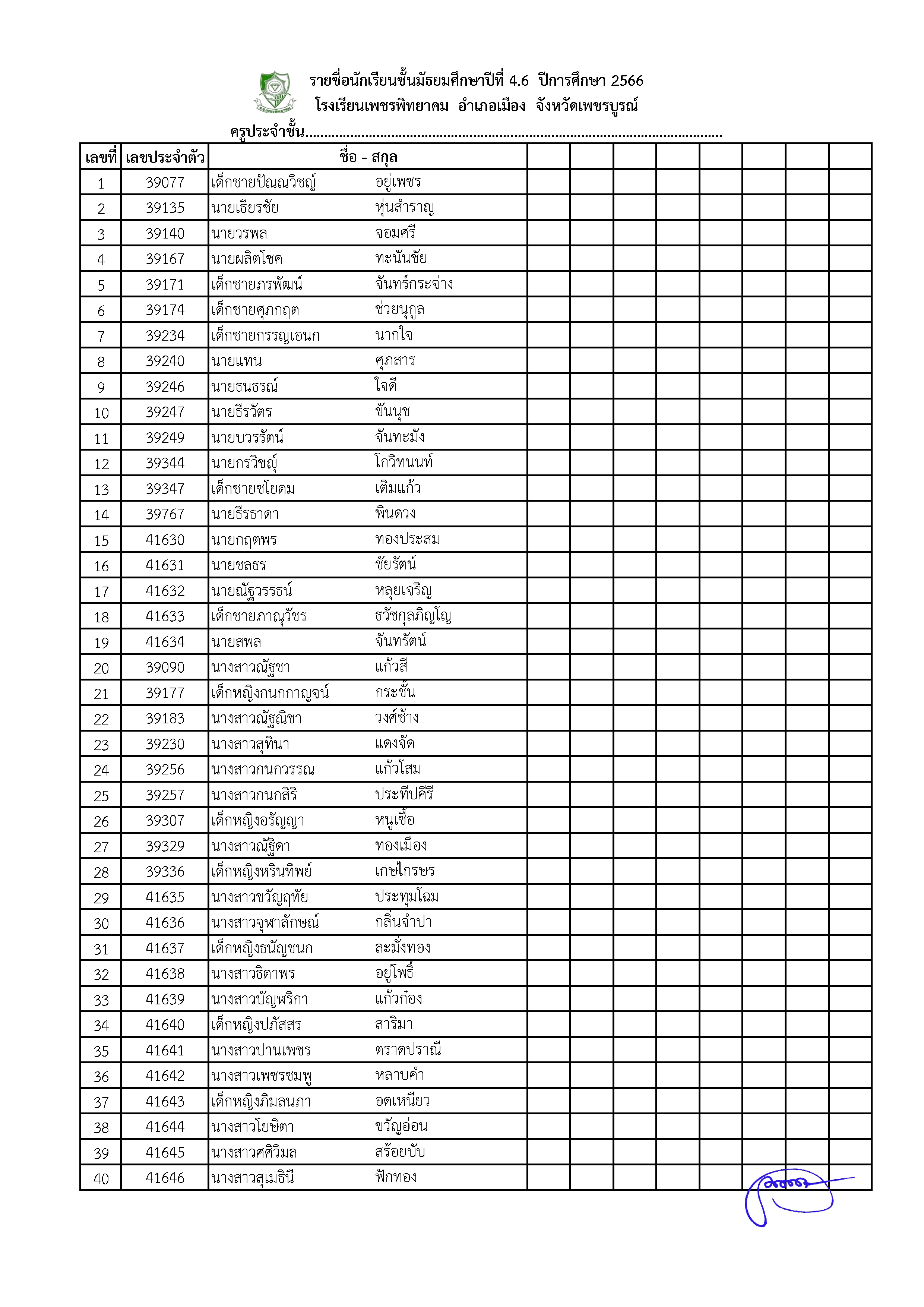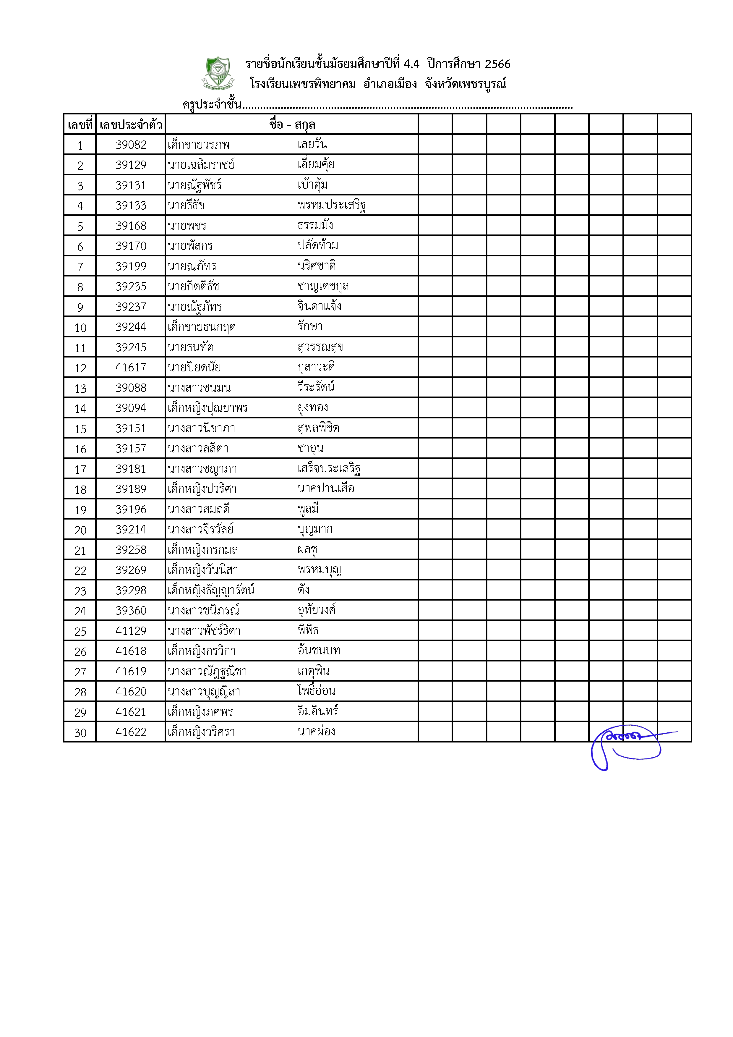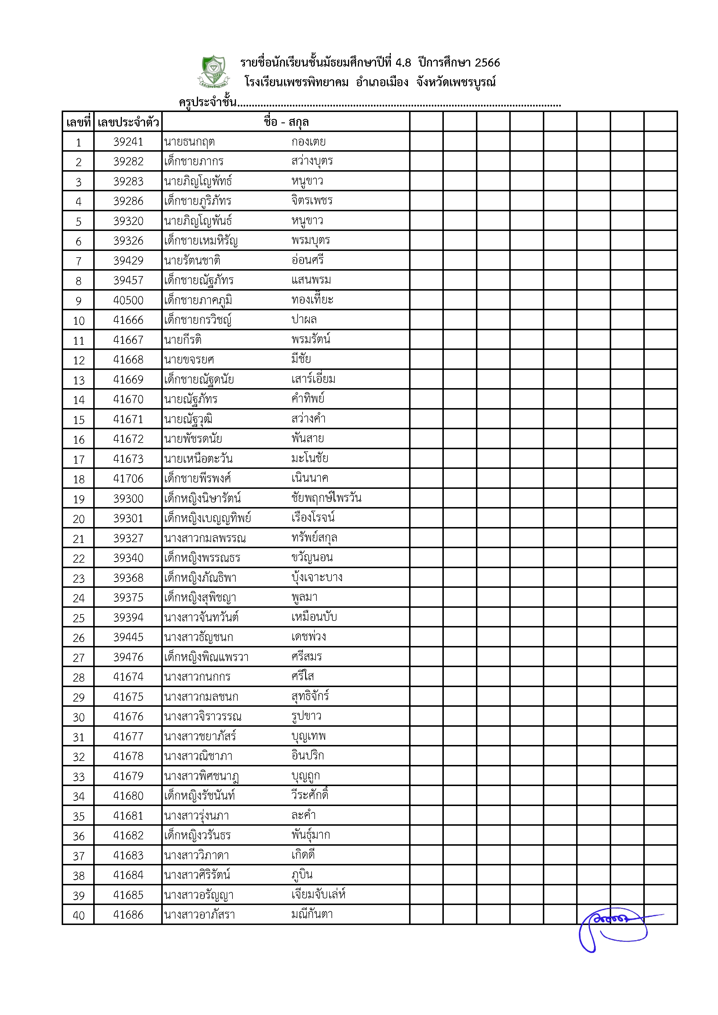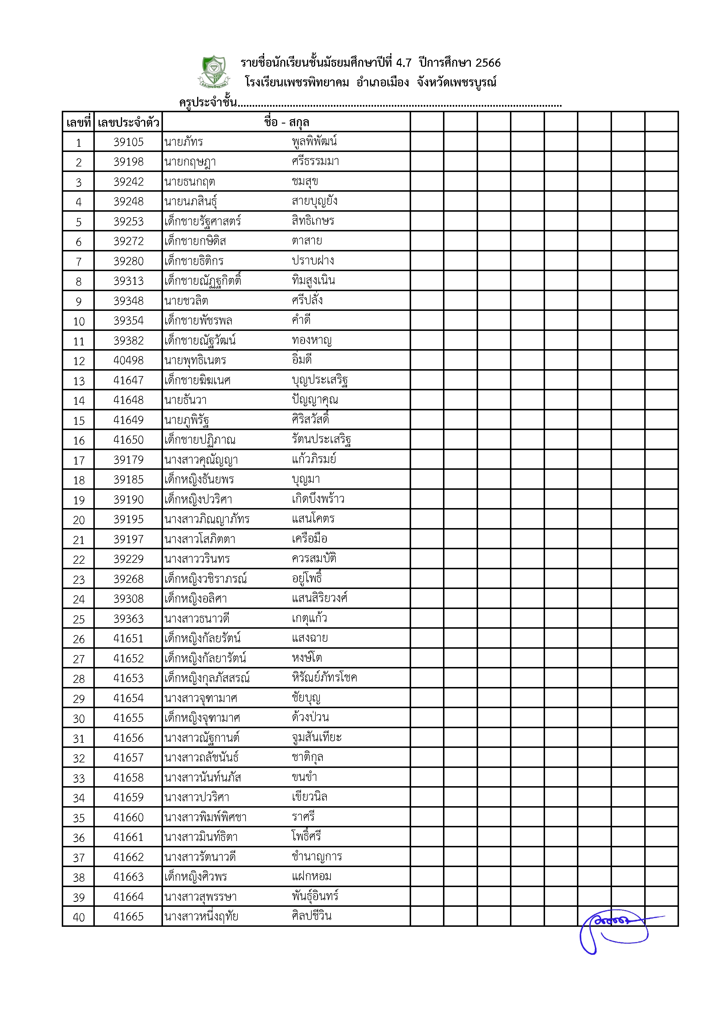 รายชื่อนักเรียน ชั้นมัธยมศึกษาปีที่ 4 ปีการศึกษา 2566