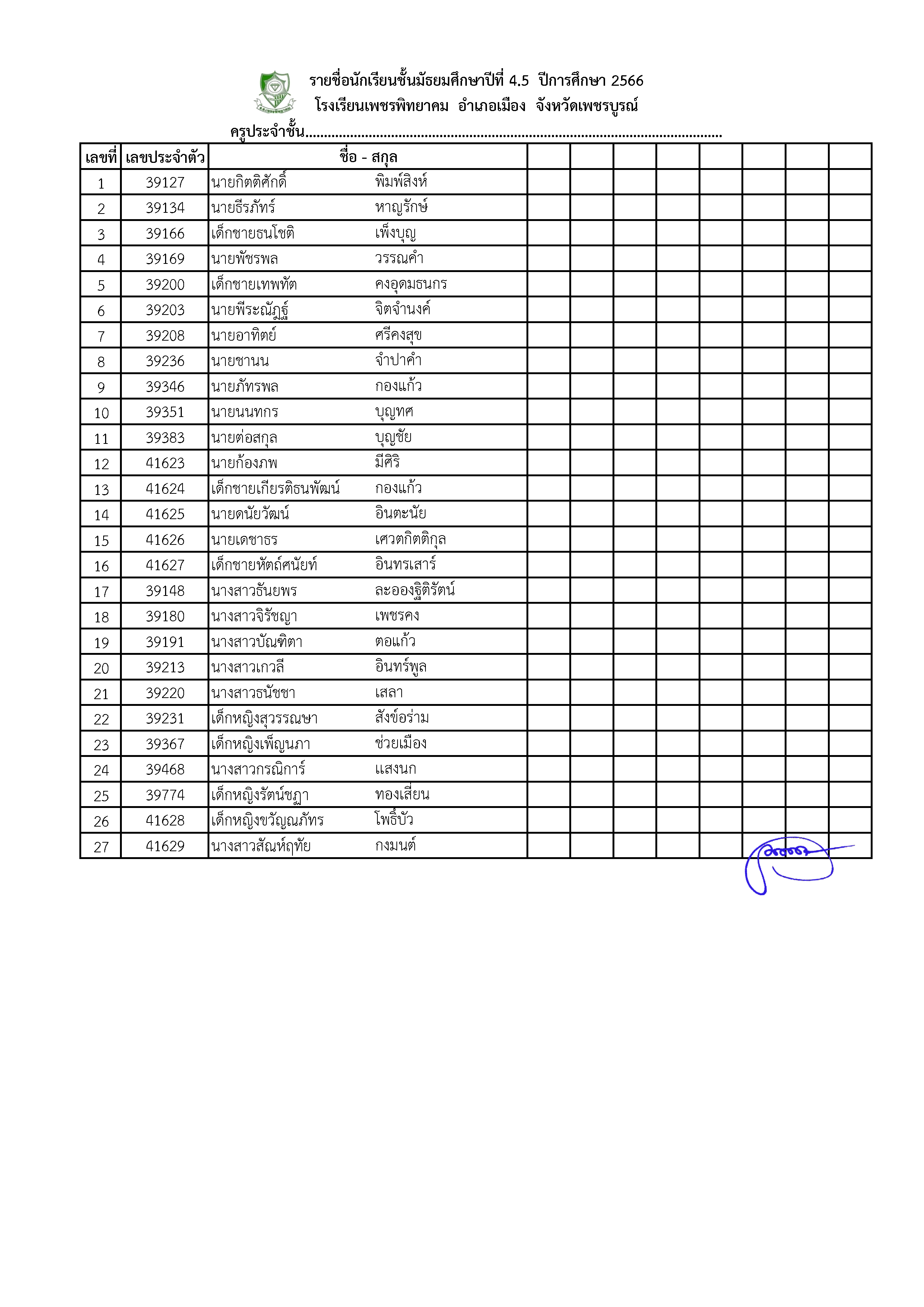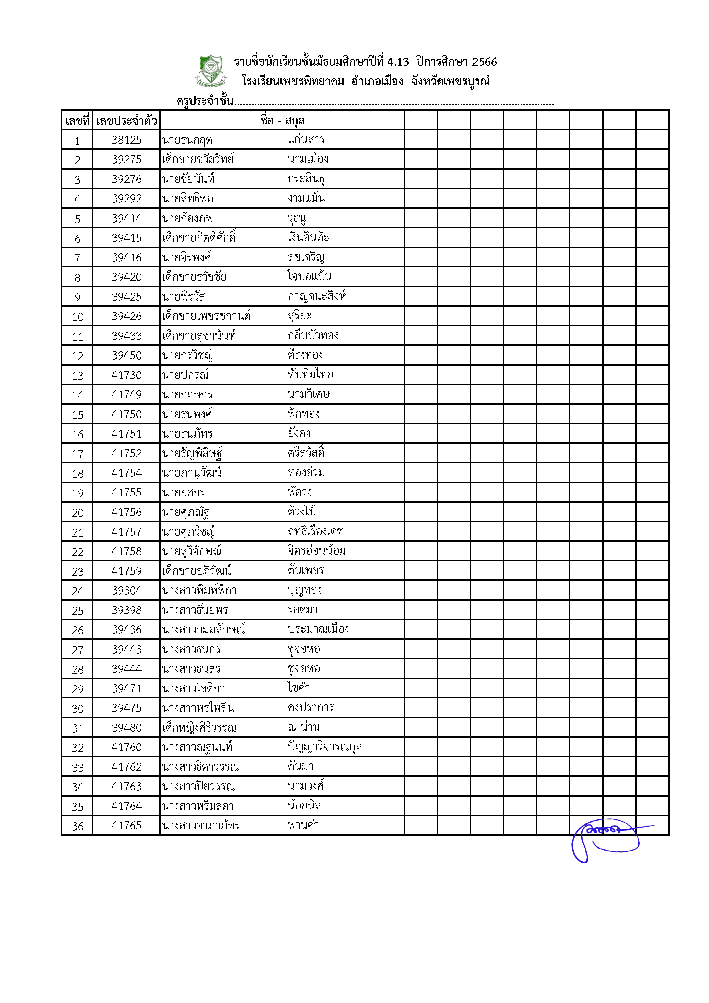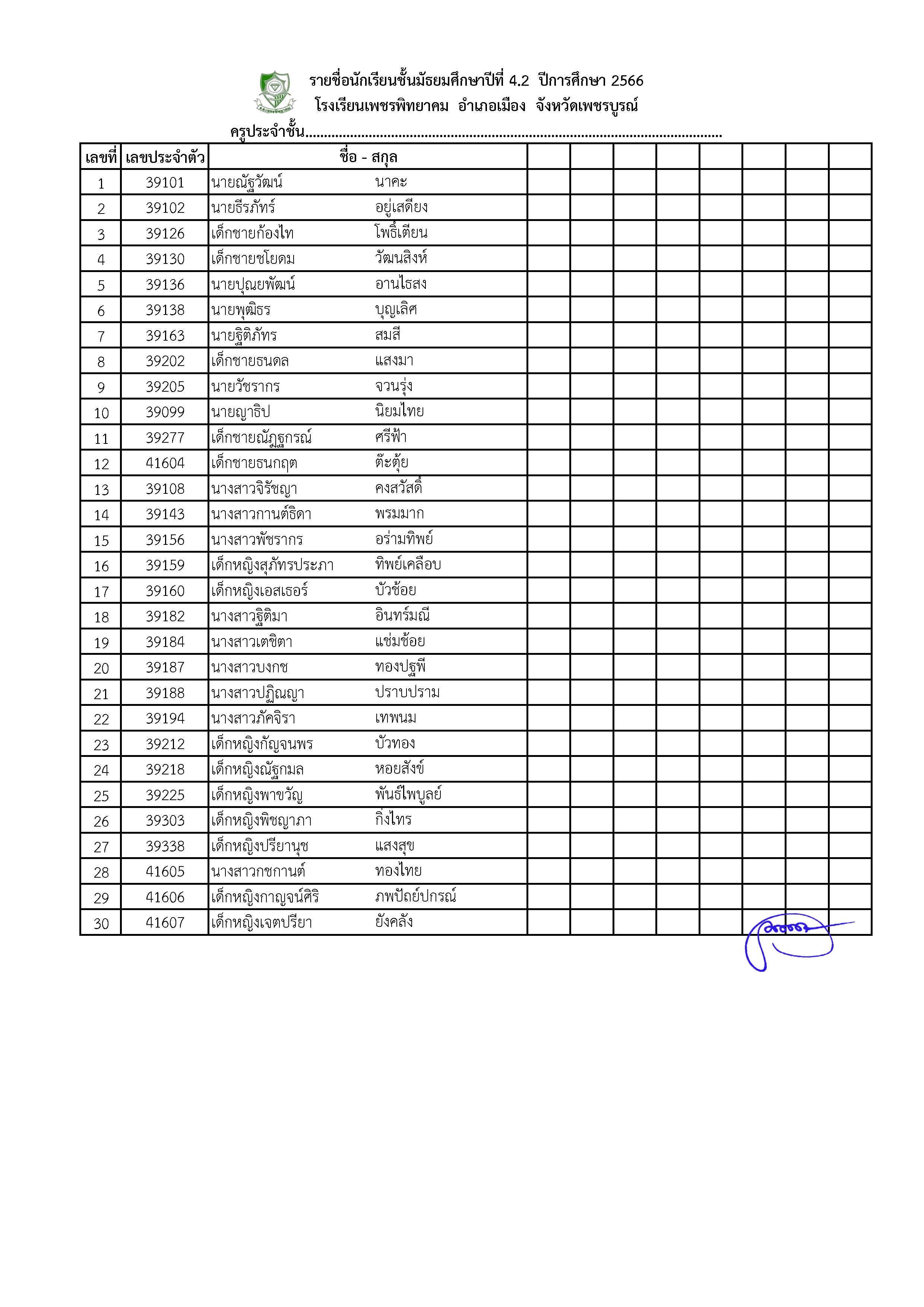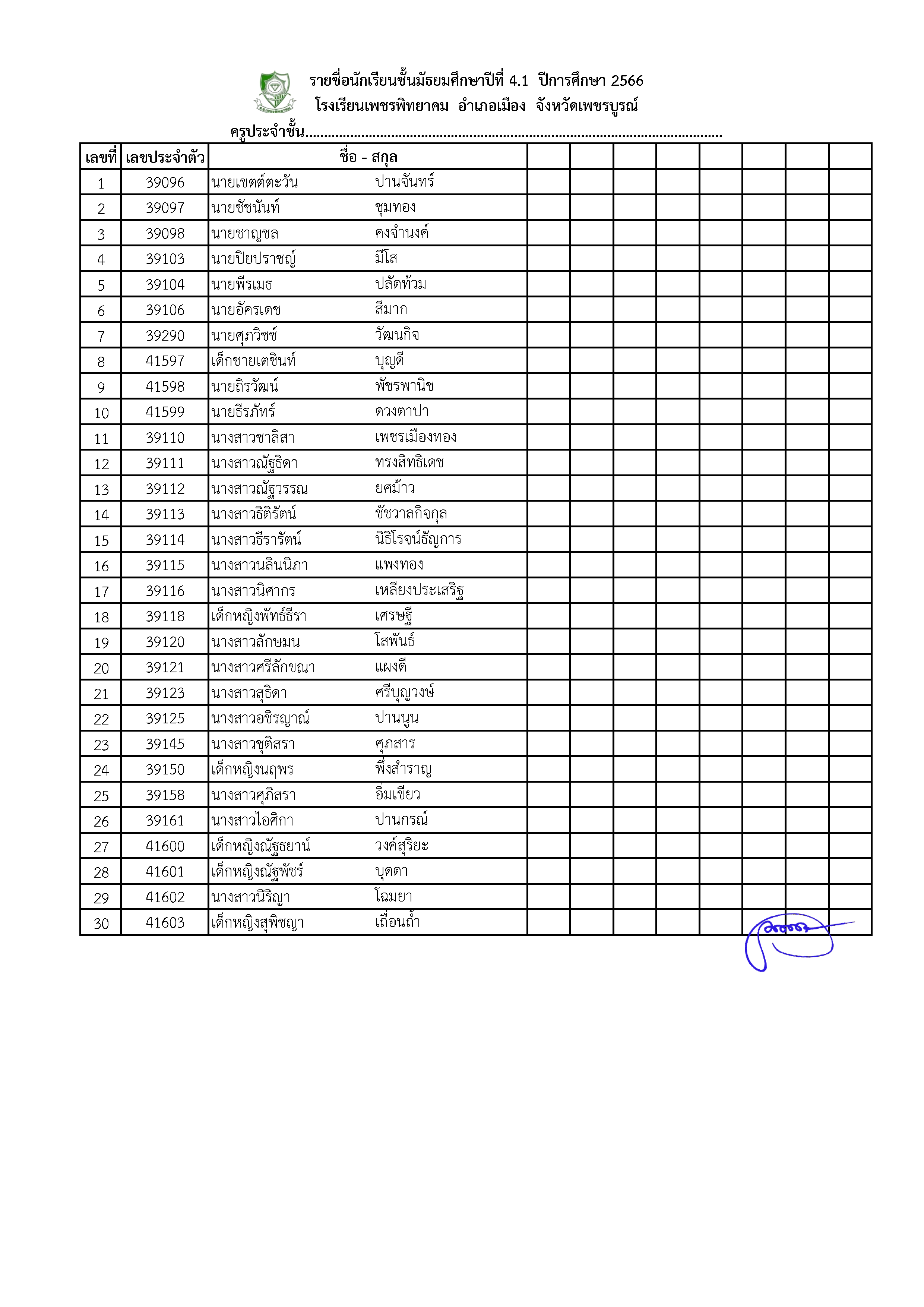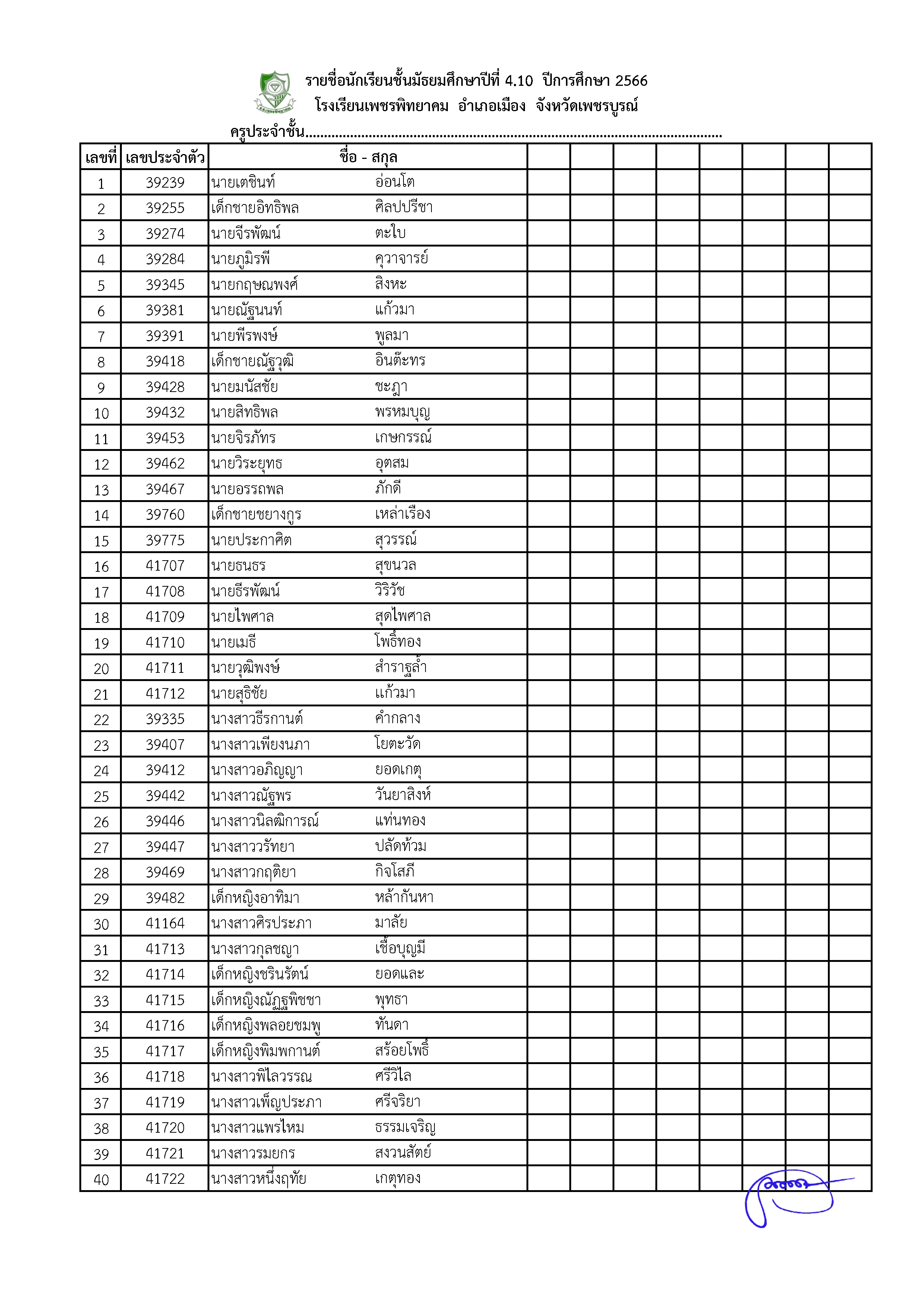 รายชื่อนักเรียน ชั้นมัธยมศึกษาปีที่ 4 ปีการศึกษา 2566