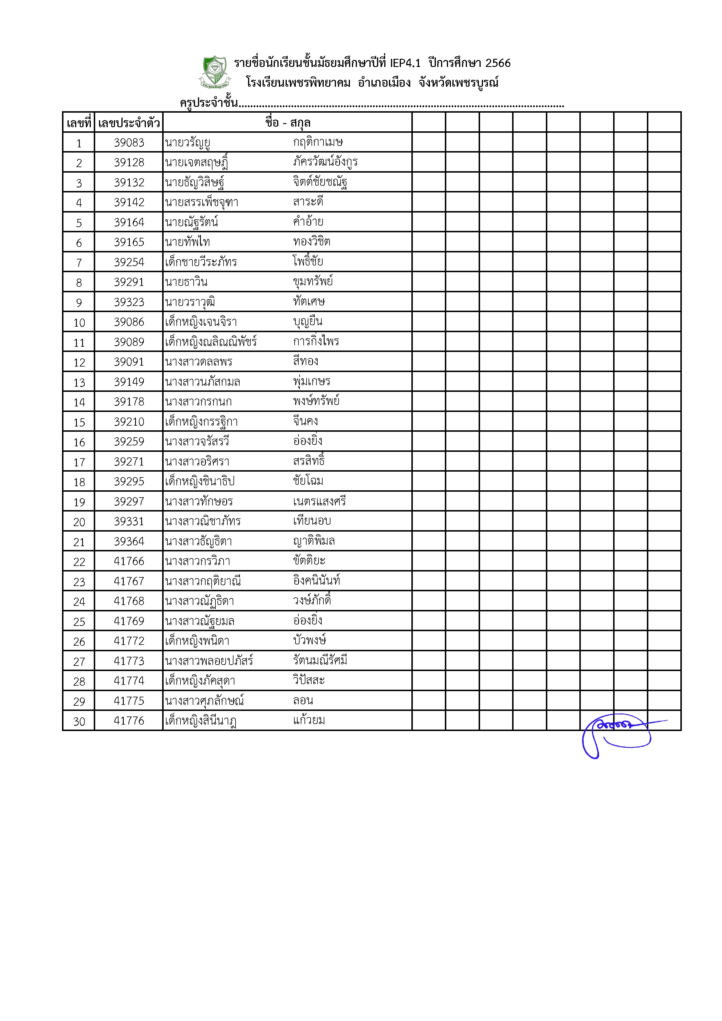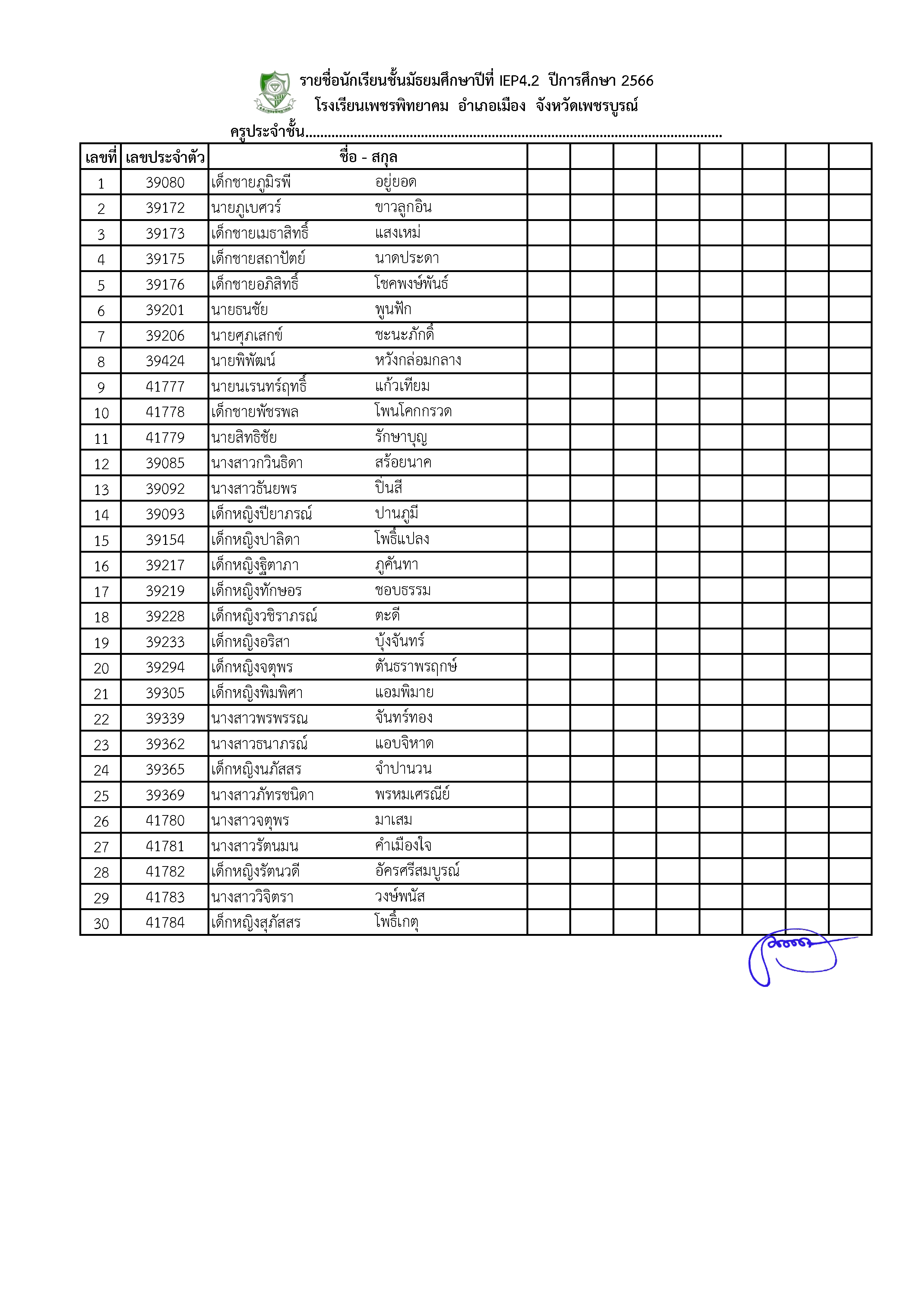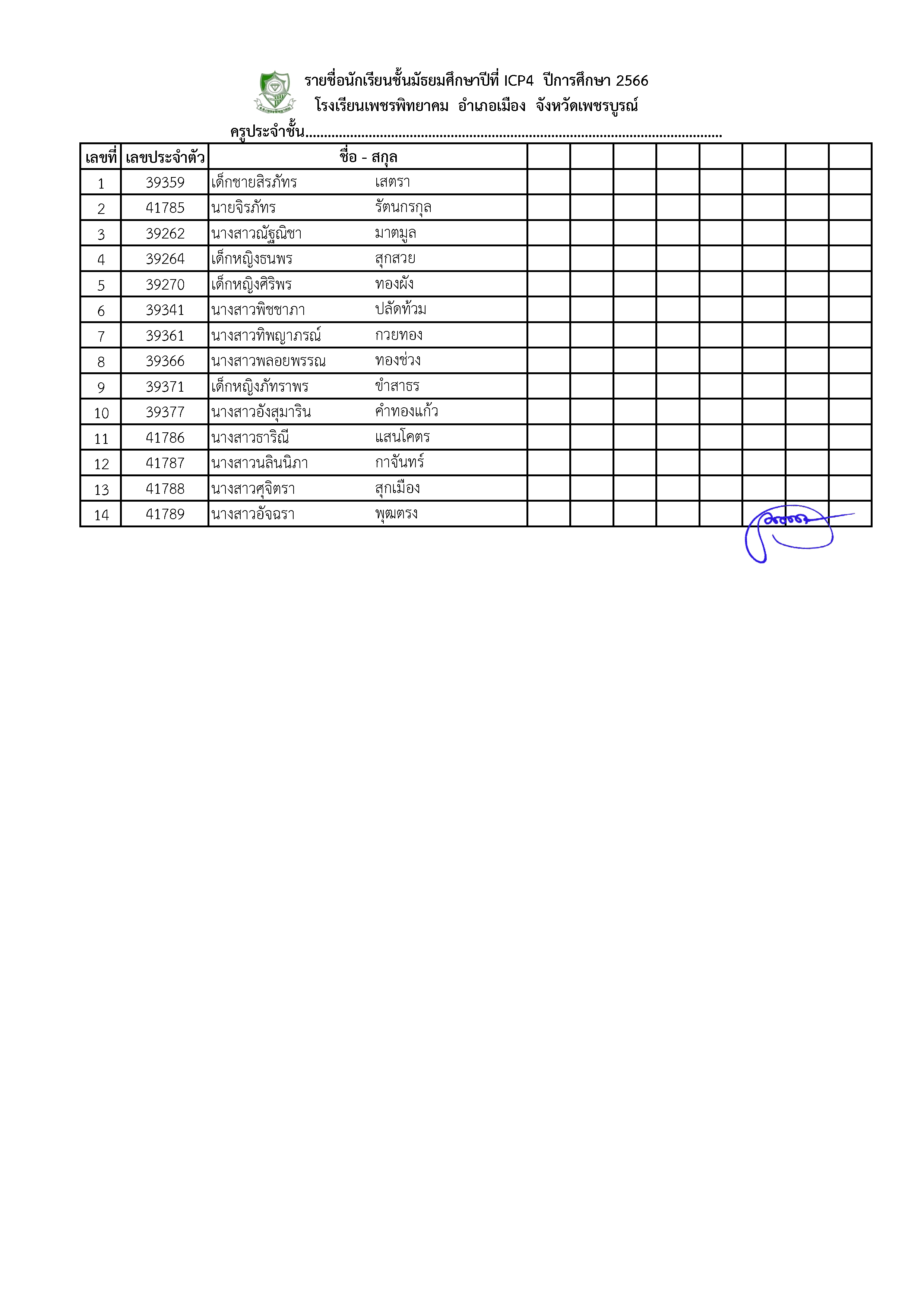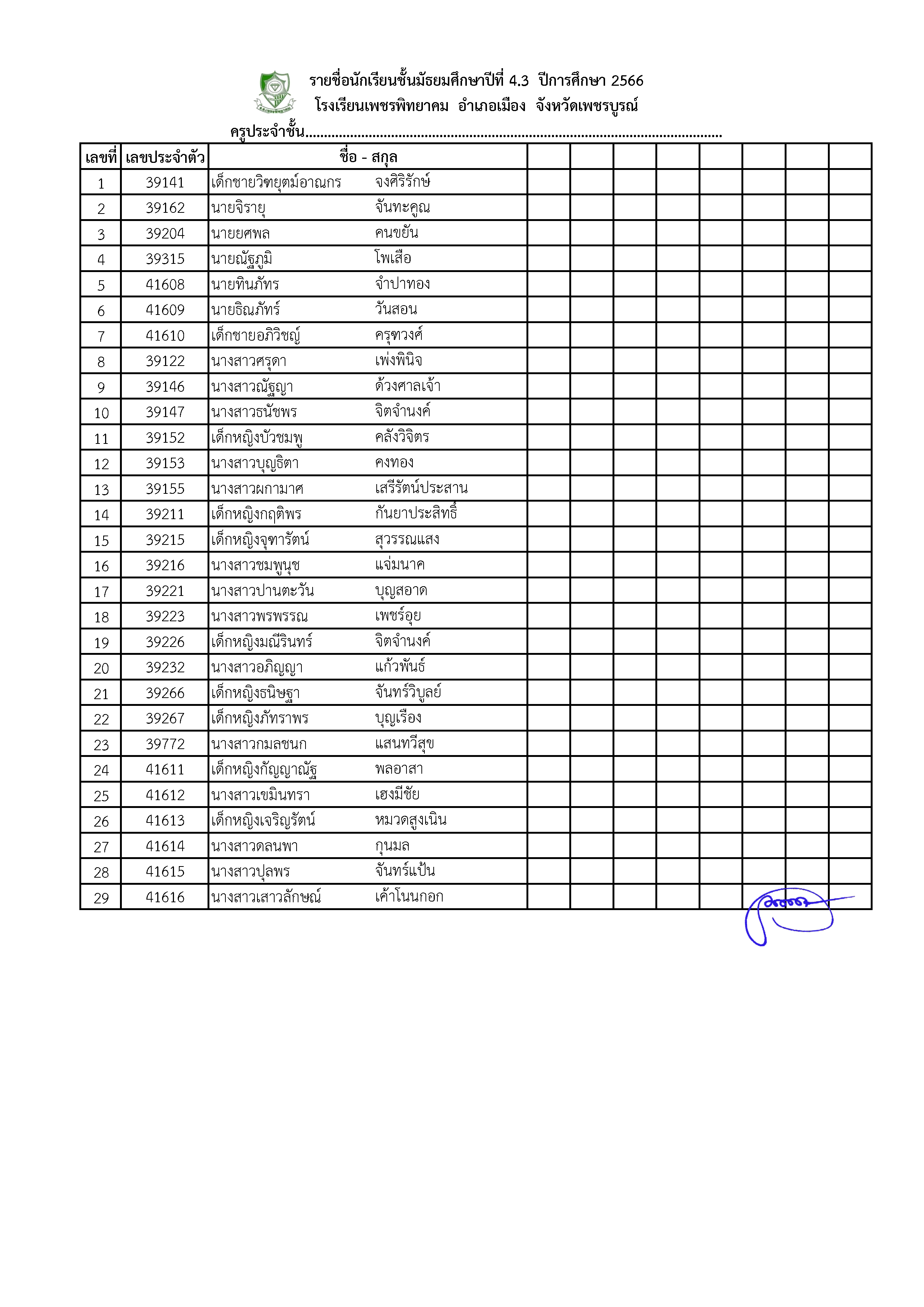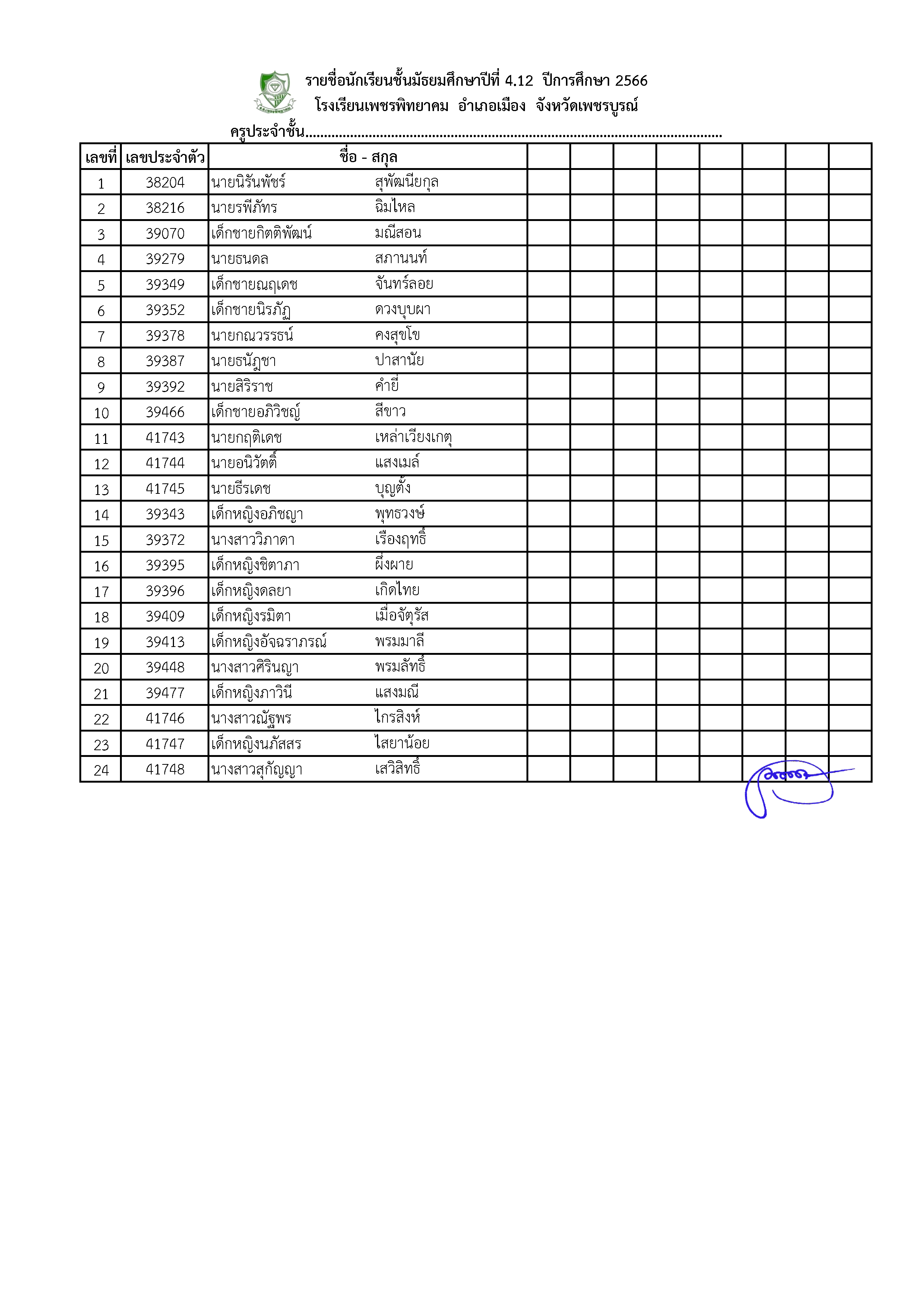 รายชื่อนักเรียน ชั้นมัธยมศึกษาปีที่ 4 ปีการศึกษา 2566