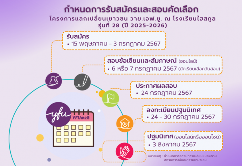 โครงการแลกเปลี่ยนเยาวชน วาย.เอฟ.ยู. ณ โรงเรียนไฮสกูล รุ่น 28 ปี 2025-2026 (1 ปีการศึกษา)