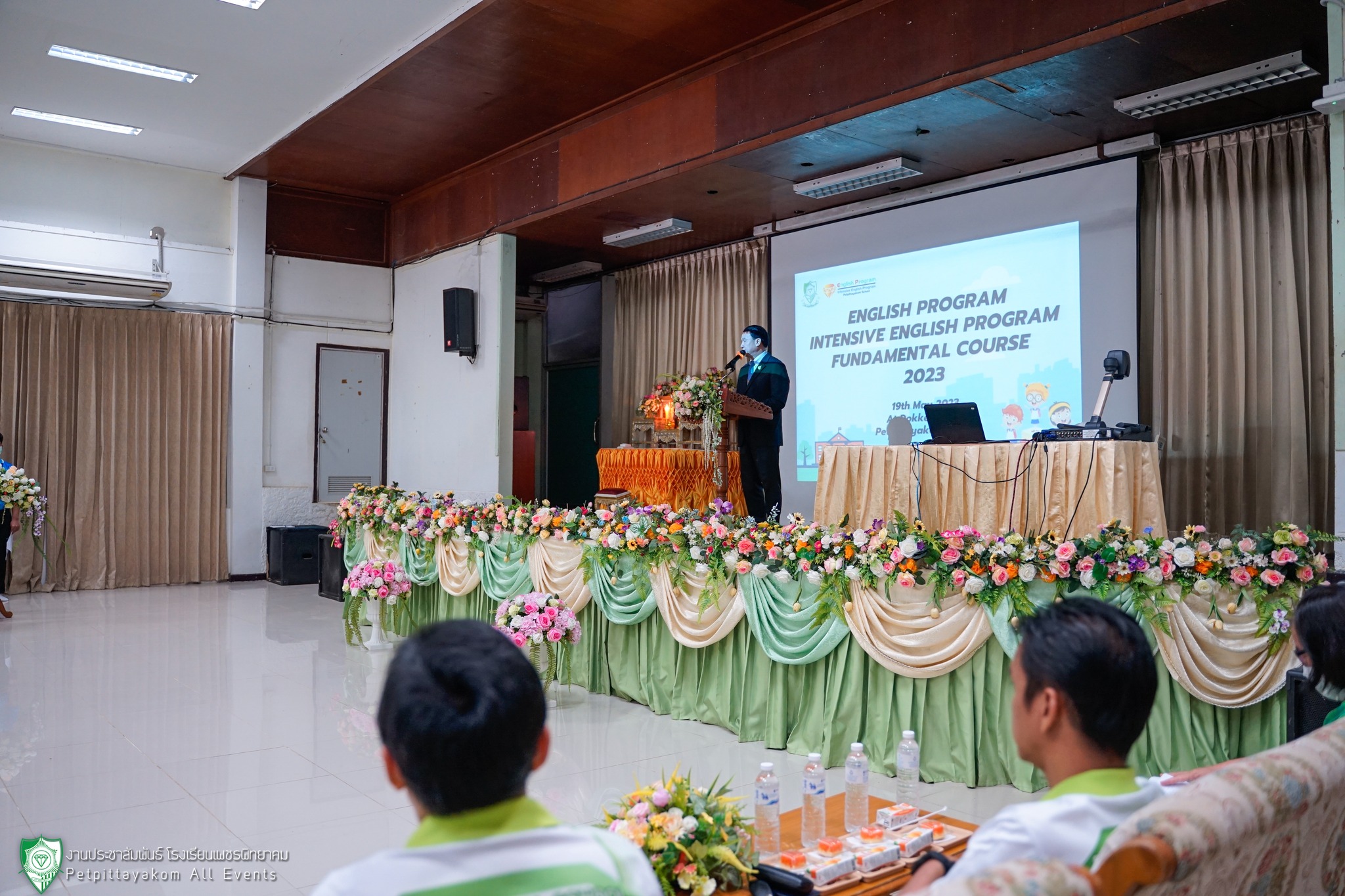 นำโดยท่านผู้อำนวยการวิเศษ ปิ่นพิทักษ์ ผู้อำนวยการโรงเรียนเพชรพิทยาคม เป็นประธานในพิธีเปิดกิจกรรม พร้อมด้วยท่านรองผู้อำนวยการโรงเรียน และหัวหน้ากลุ่มสาระการเรียนรู้ภาษาต่างประเทศ ณ หอประชุมดอกแก้ว วัตถุประสงค์ของการจัดกิจกรรมครั้งนี้เพื่อให้นักเรียนใหม่ประจำปีการศึกษา 2566 ทราบแนวทางการปฏิบัติตนในด้านการเรียนและการปฏิบัติตนตามระเบียบของโรงเรียน รวมทั้งเพื่อสานสัมพันธ์อันดีระหว่างครูกับนักเรียน และระหว่างเพื่อนนักเรียนในโครงการ