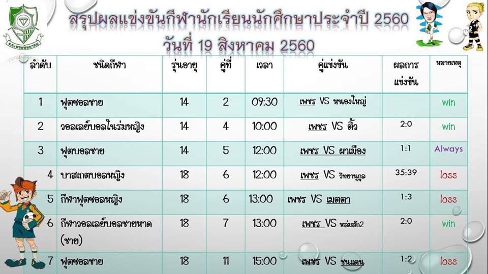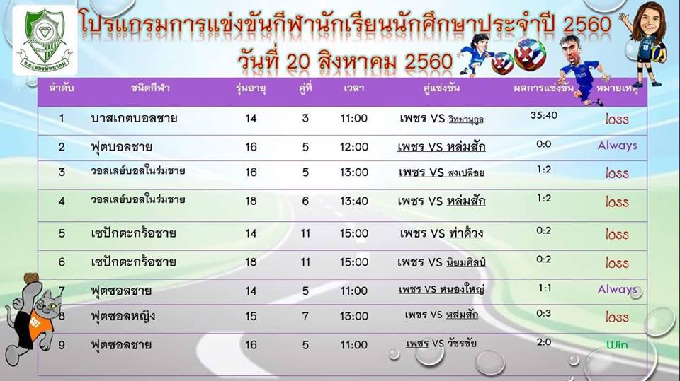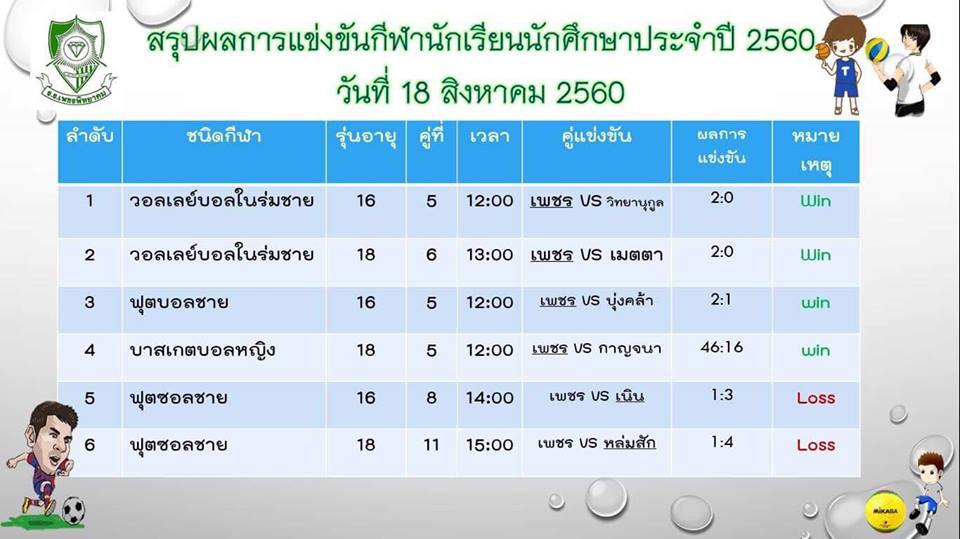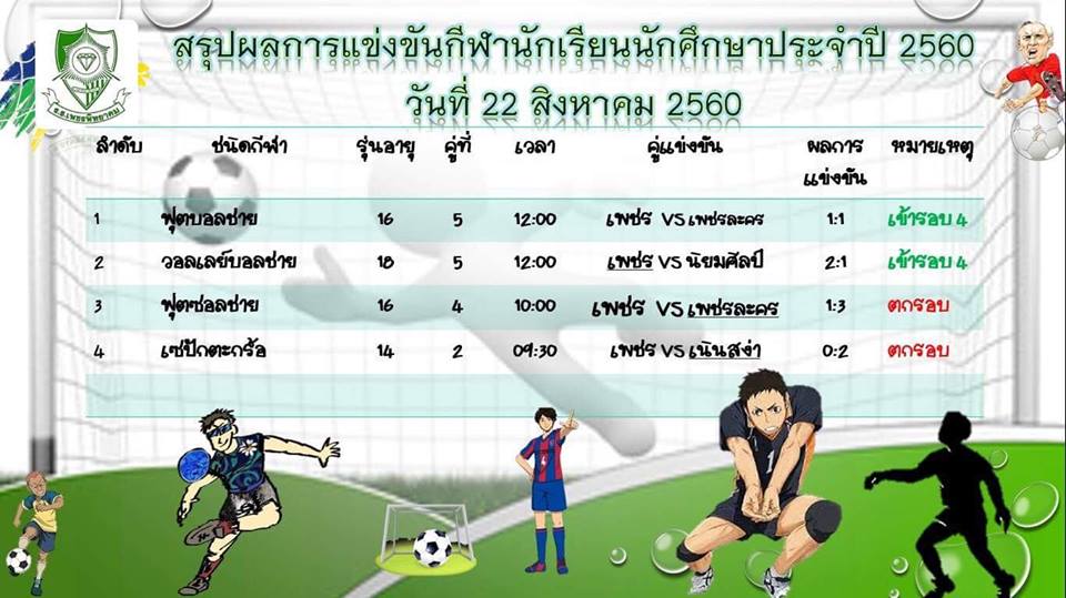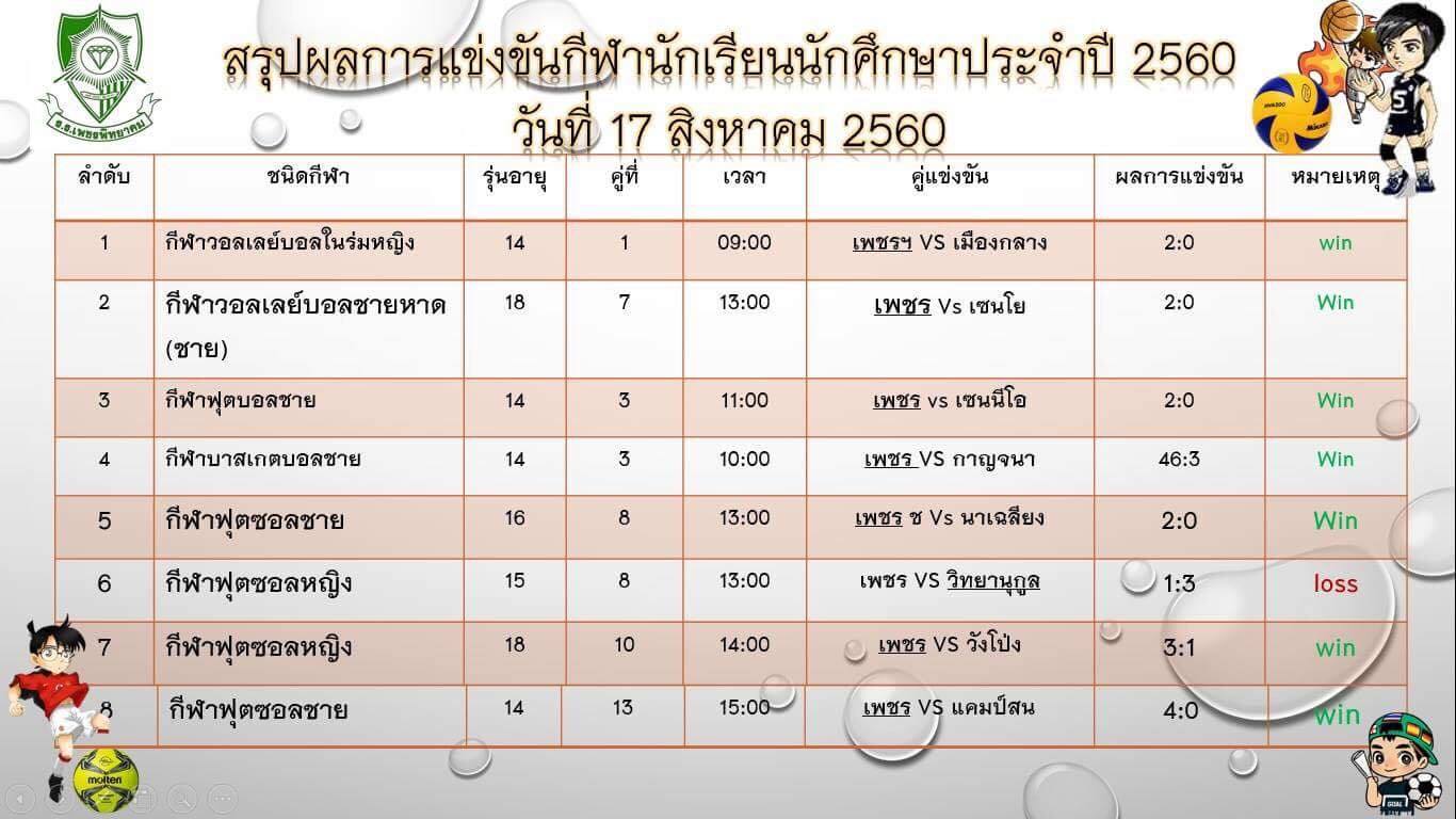 การแข่งขันกีฬาระหว่างโรงเรียนส่วนภูมิภาคจังหวัดเพชรบูรณ์ ประจำปี 2560 ระหว่างวันที่ 16-25 ส. ค. 2560
