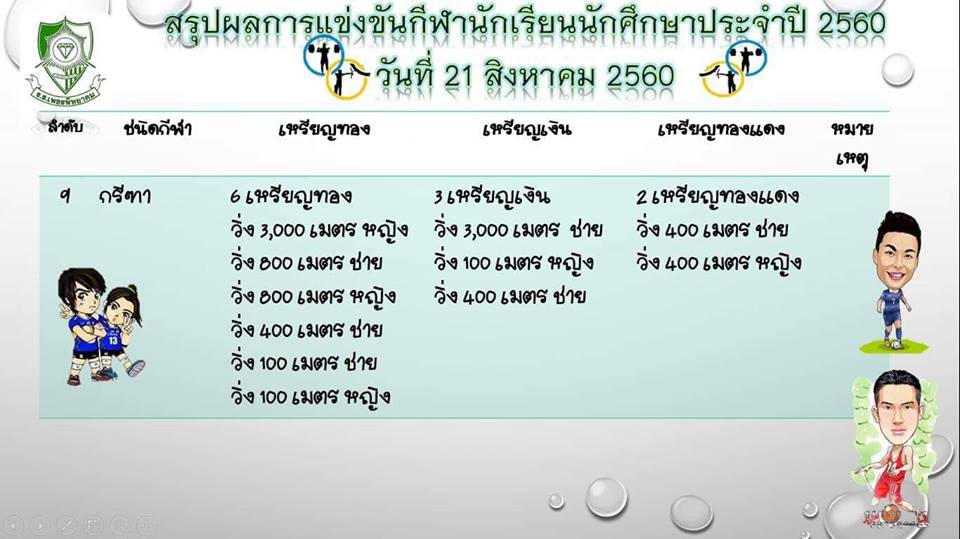 เพชรพิทยาคม คว้า 14เหรียญทอง 7เหรียญเงิน 6เหรียญทองแดง จากการแข่งขันกีฬานักเรียนนักศึกษา ประจำปี2560