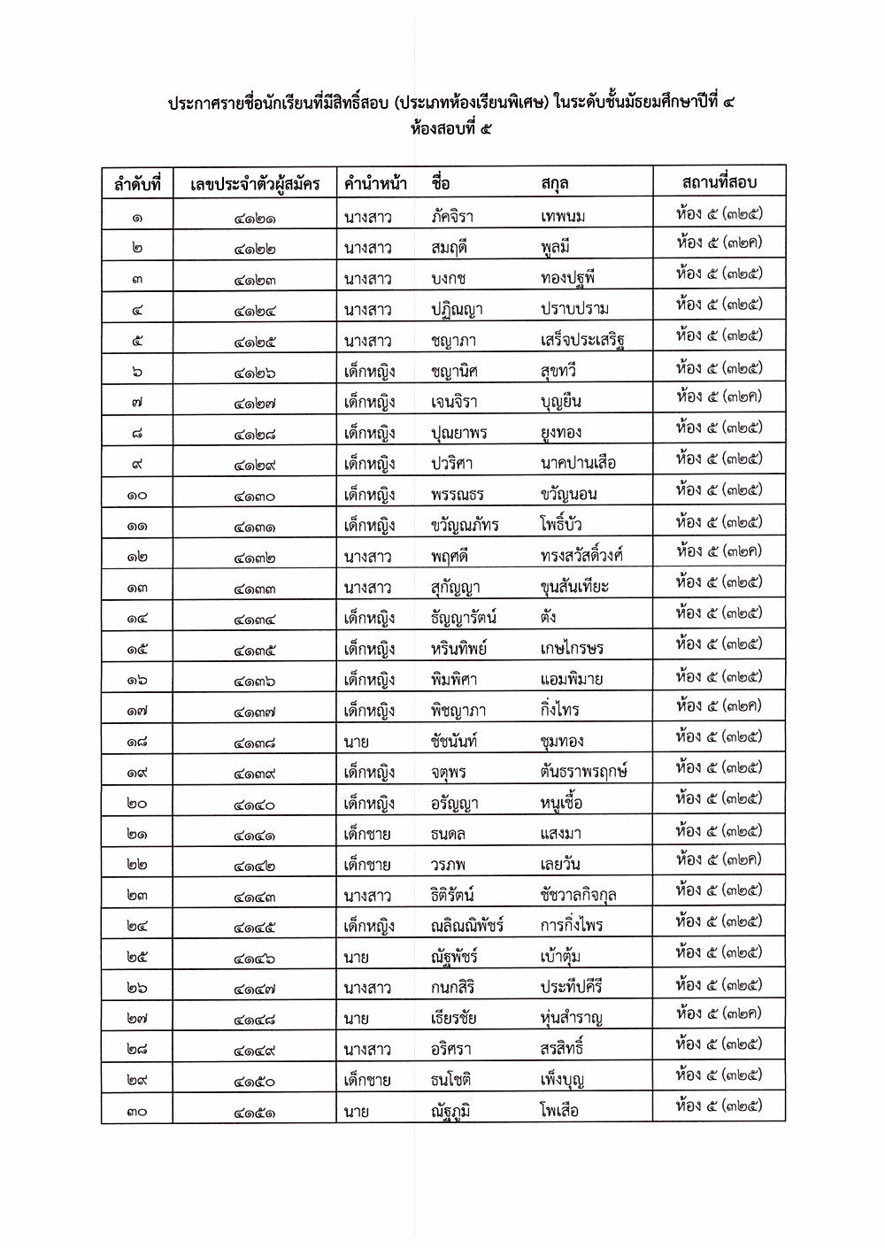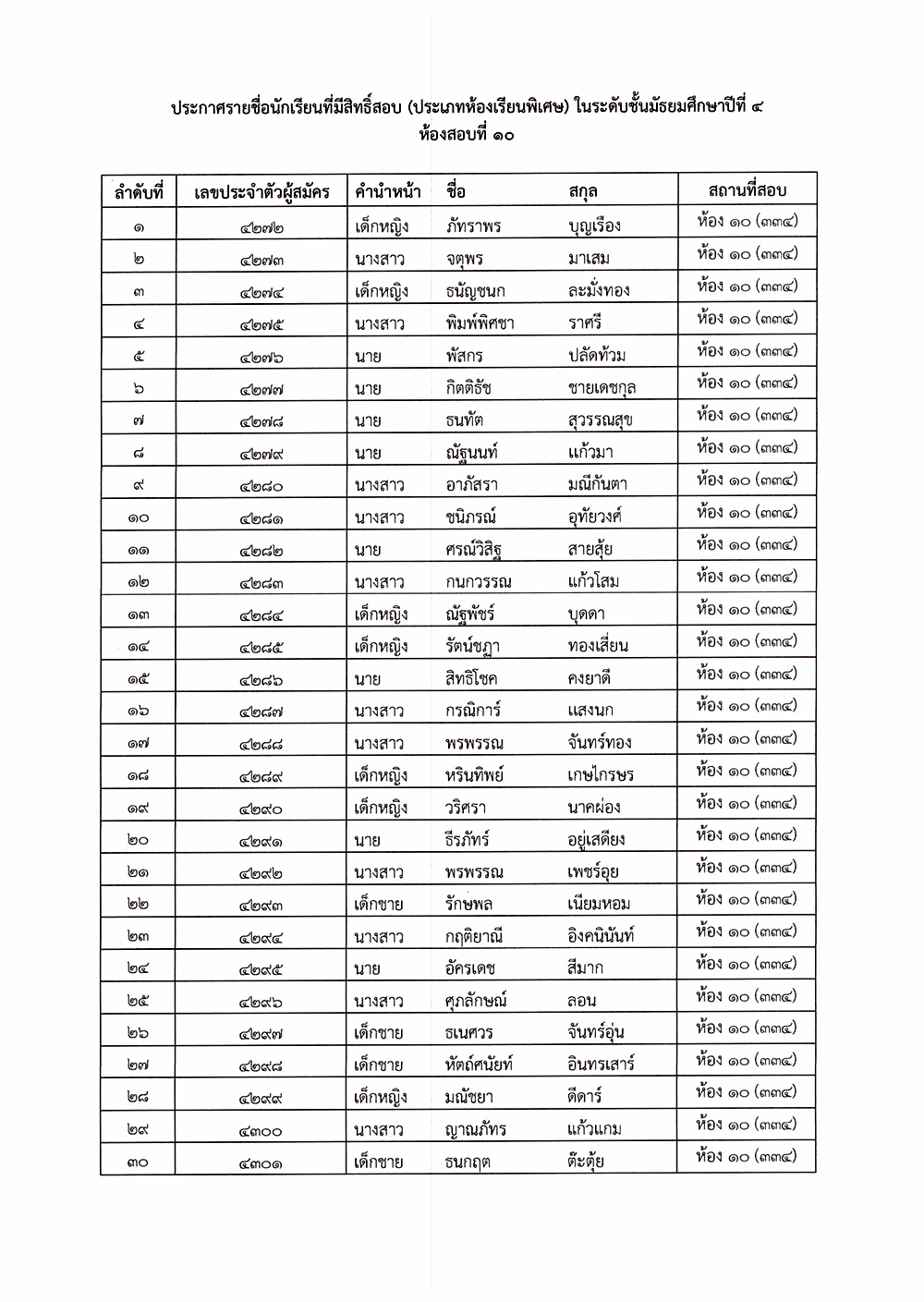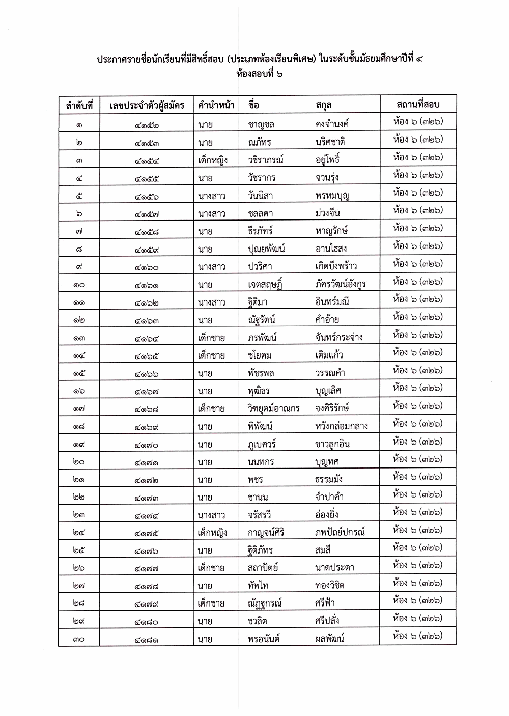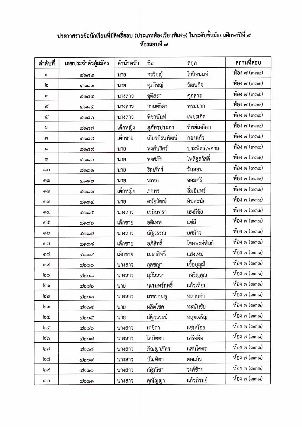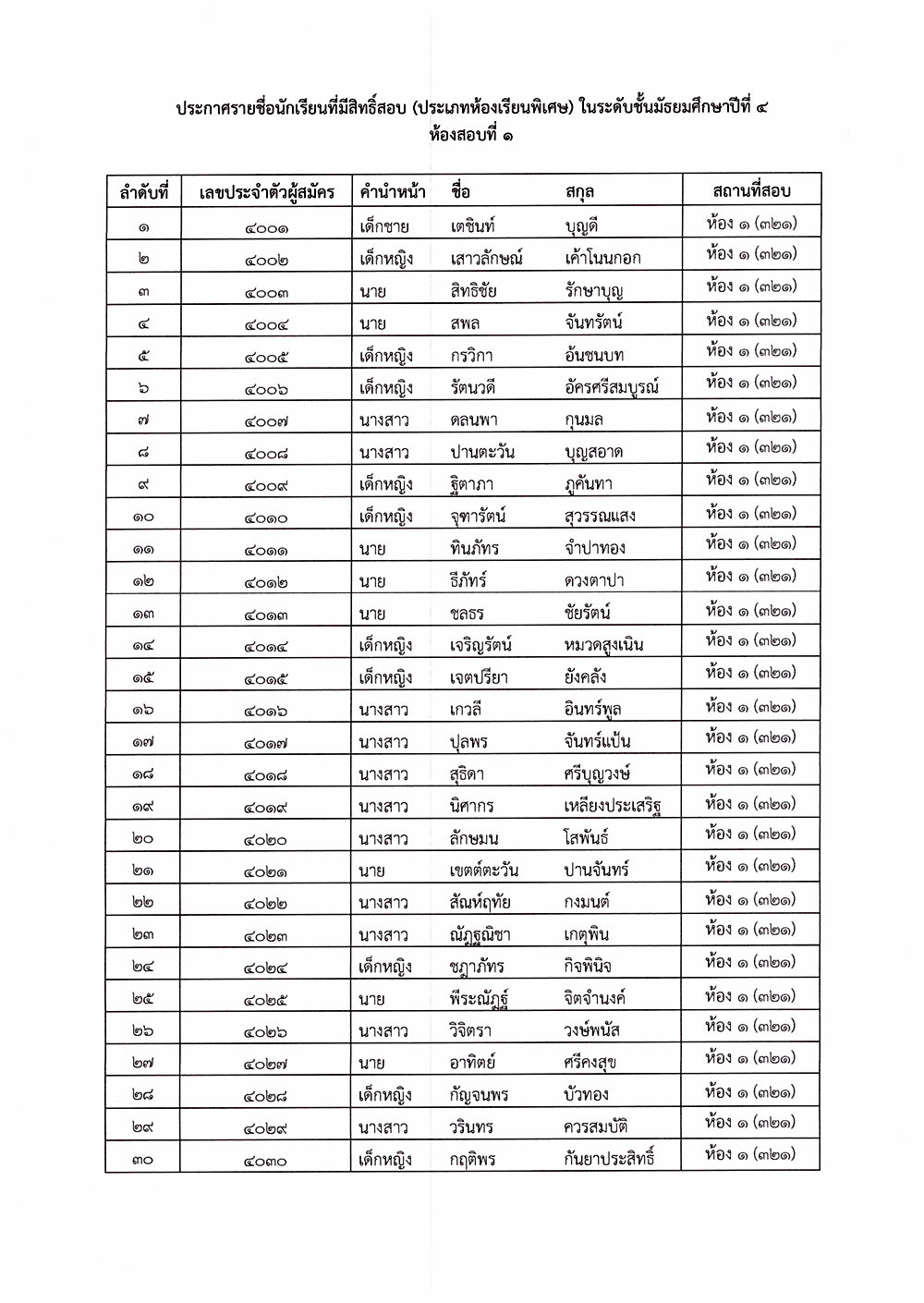 เรื่อง ประกาศรายชื่อผู้มีสิทธิ์สอบคัดเลือก ระดับชั้นมัธยมศึกษาปีที่ 4