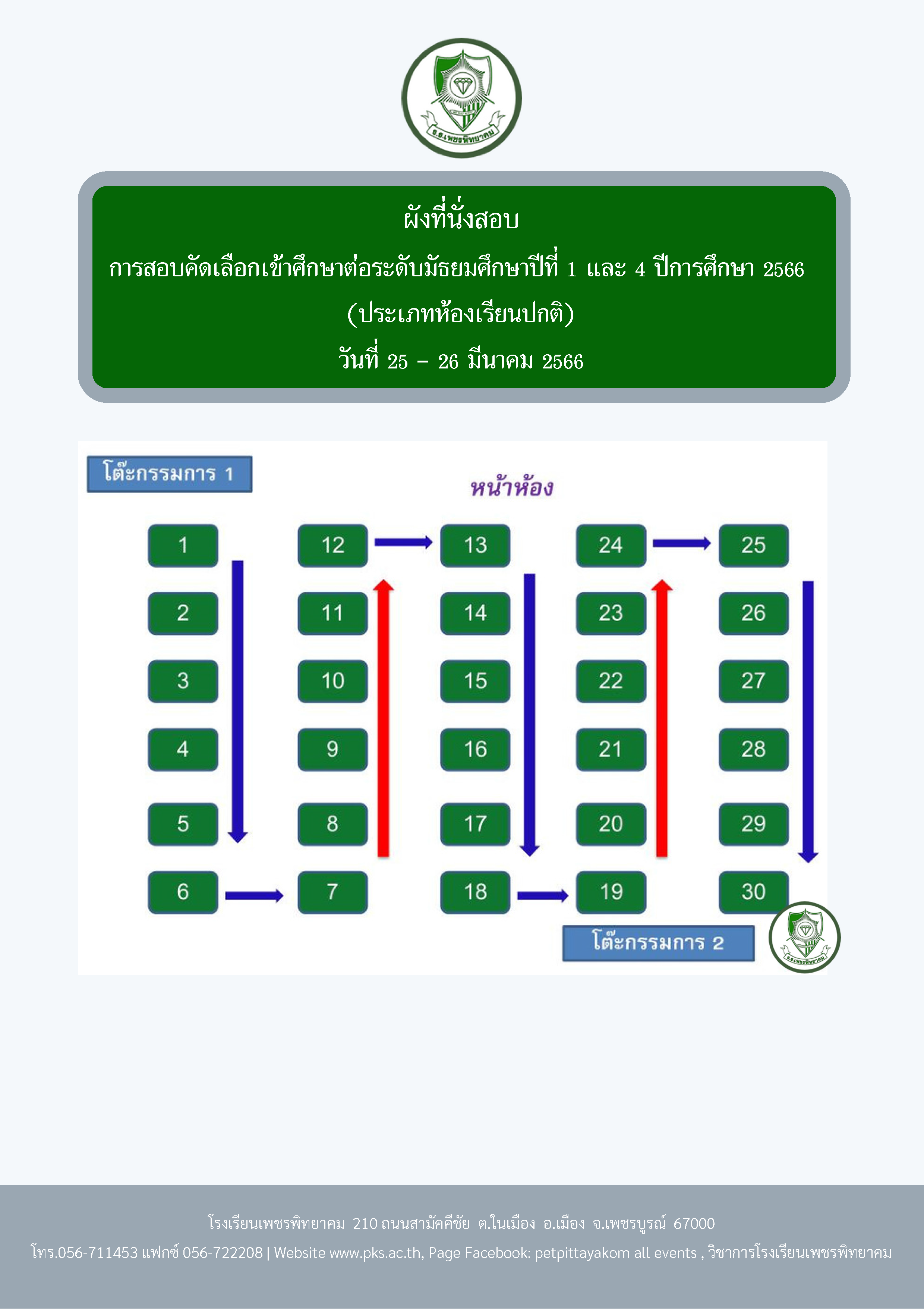 แนวปฏิบัติระเบียบและอุปกรณ์ในการสอบการสอบคัดเลือกเข้าศึกษาต่อระดับมัธยมศึกษาปีที่ 1 และ 4 ปีการศึกษา 2566 (ประเภทห้องเรียนปกติ) วันที่ 25 - 26 มีนาคม 2566