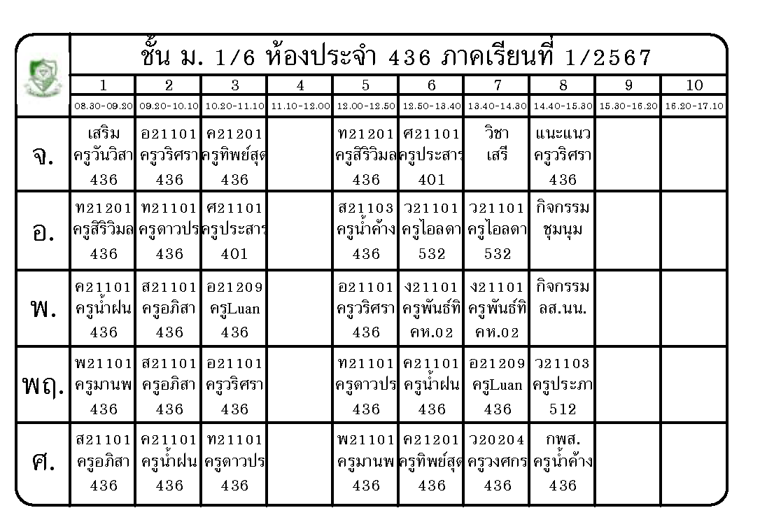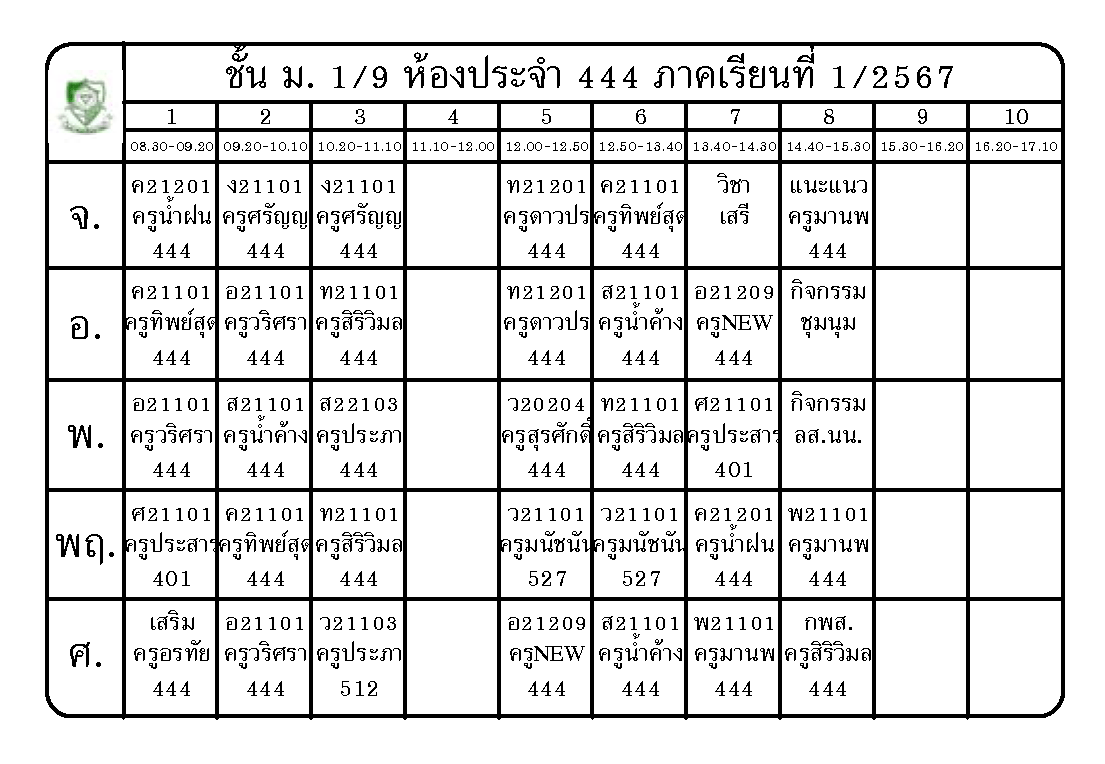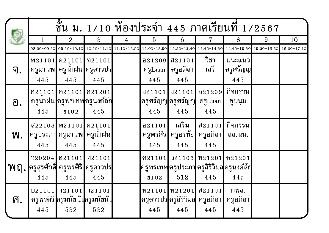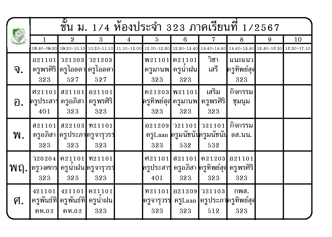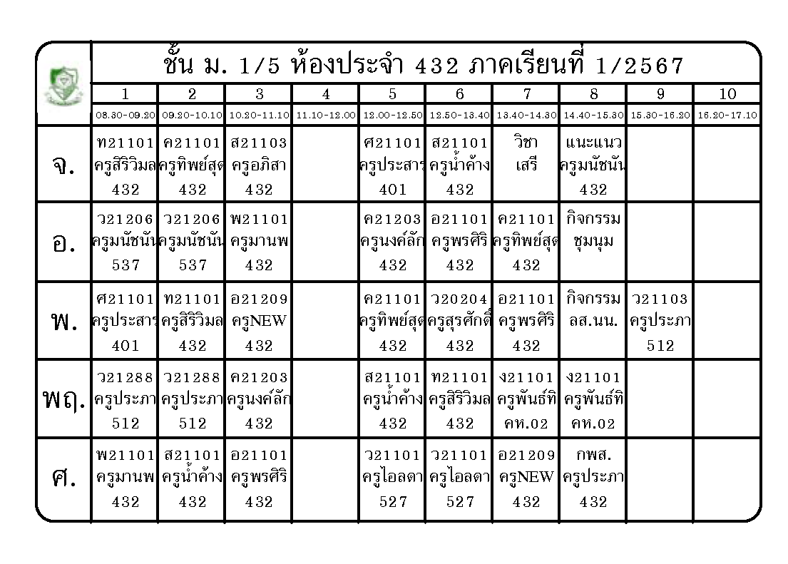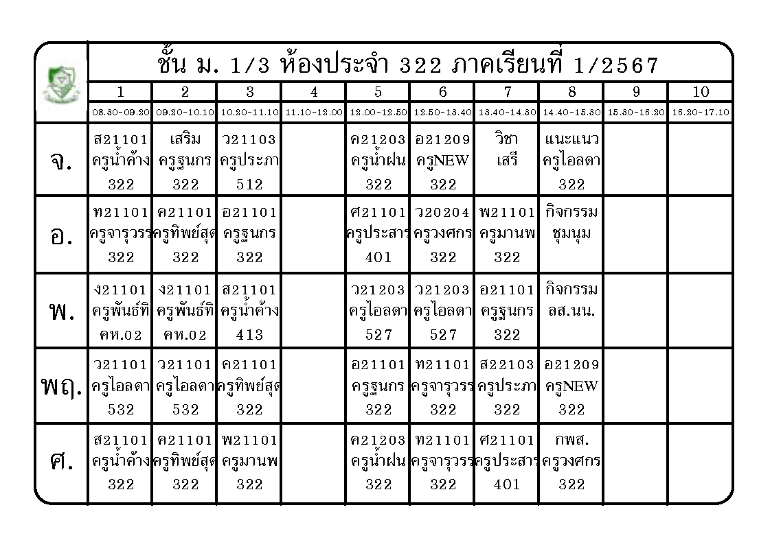 ตารางเรียน นักเรียนชั้นมัธยมศึกษาปีที่ 1 ภาคเรียนที่ 1 ปีการศึกษา 2567