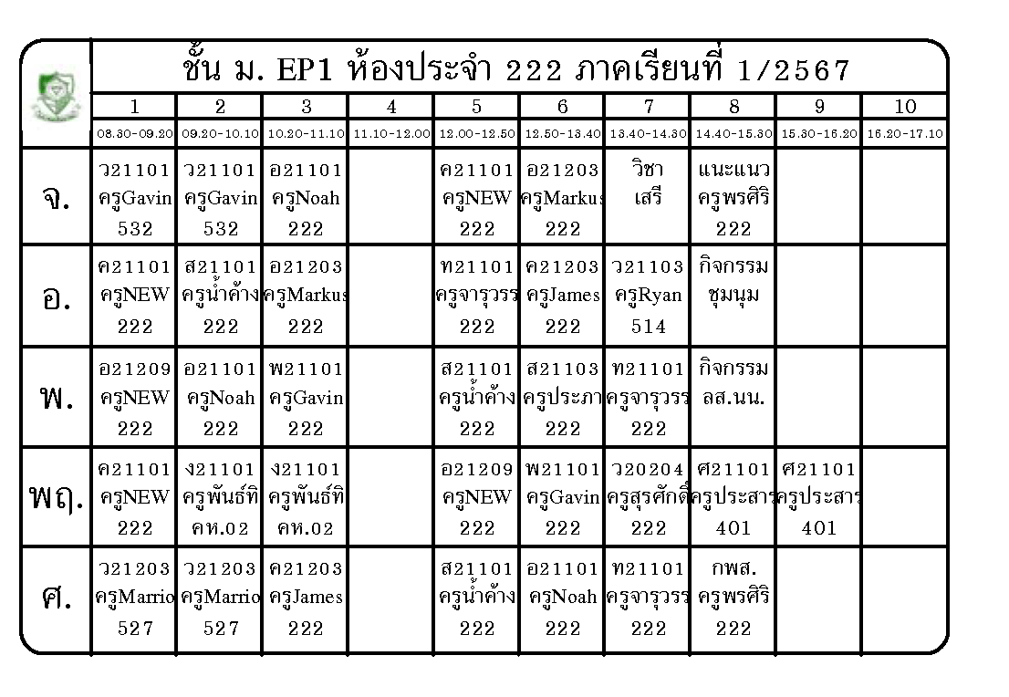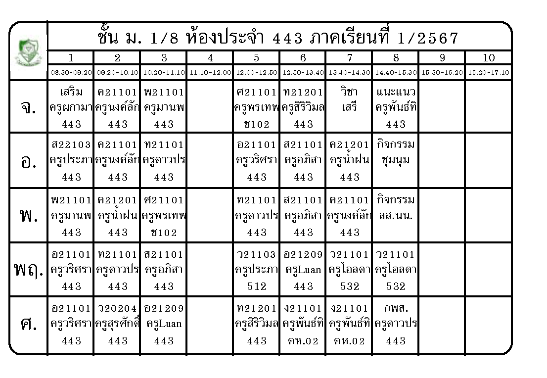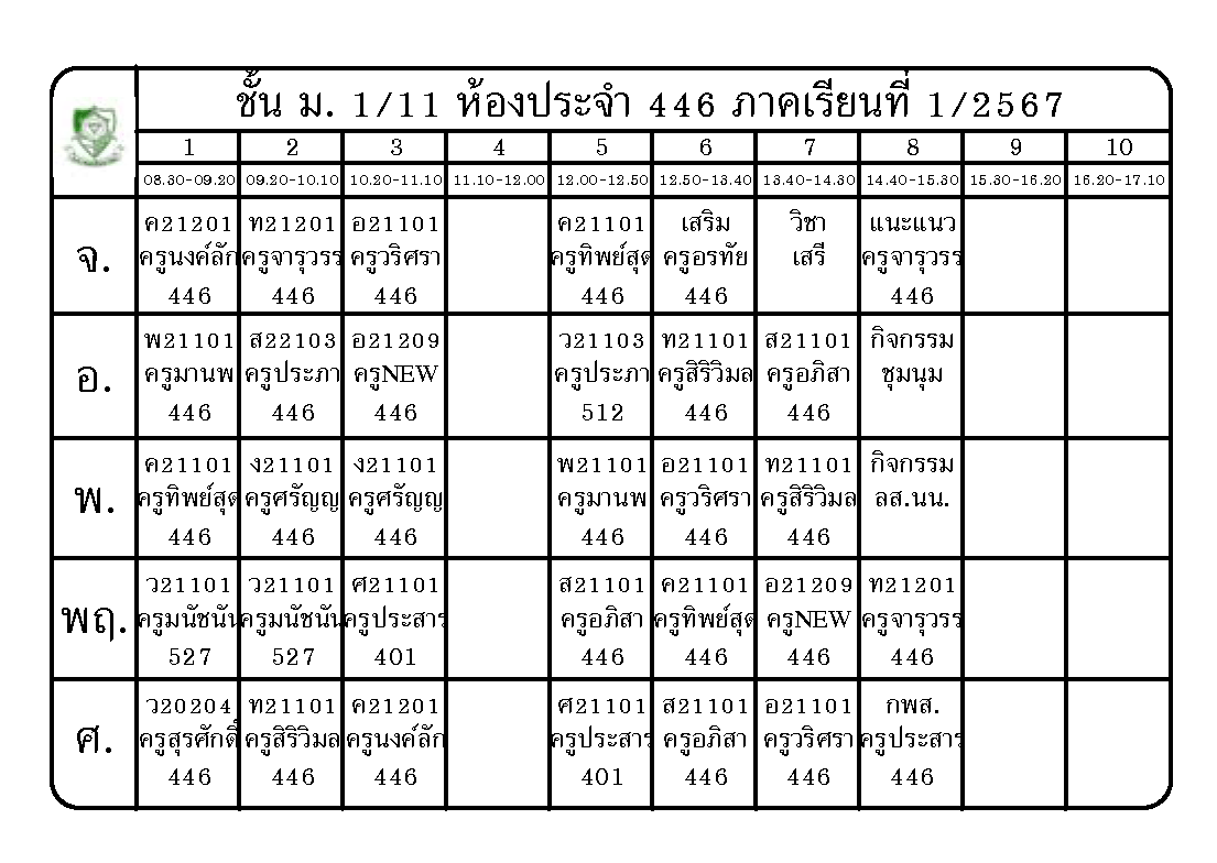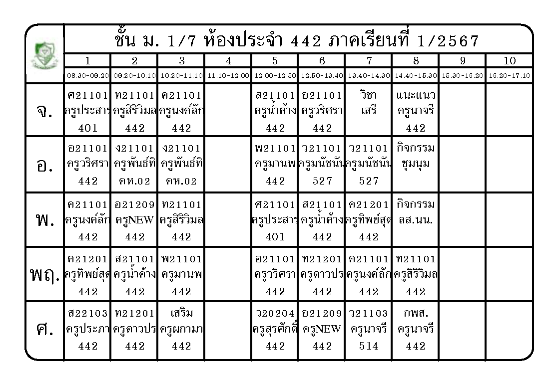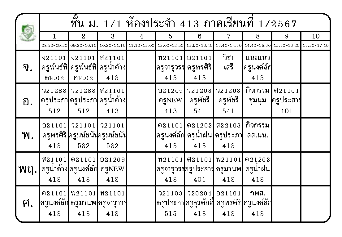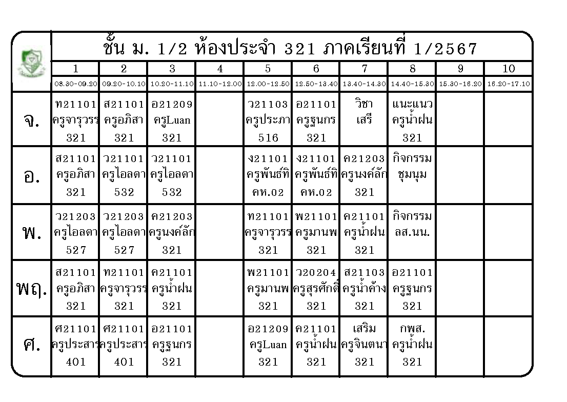 ตารางเรียน นักเรียนชั้นมัธยมศึกษาปีที่ 1 ภาคเรียนที่ 1 ปีการศึกษา 2567
