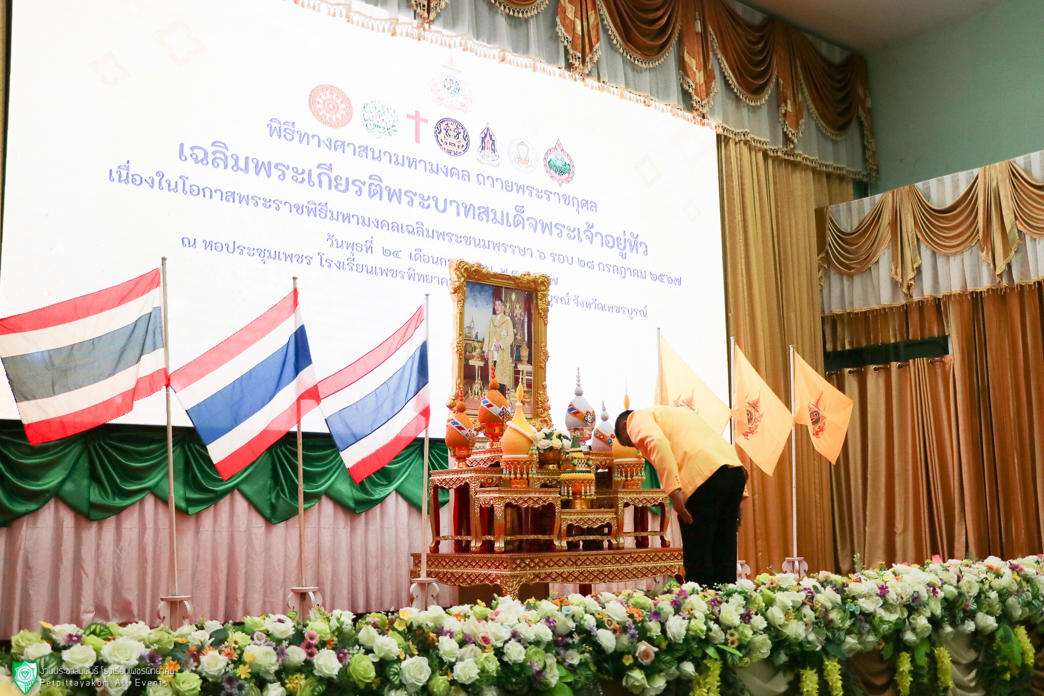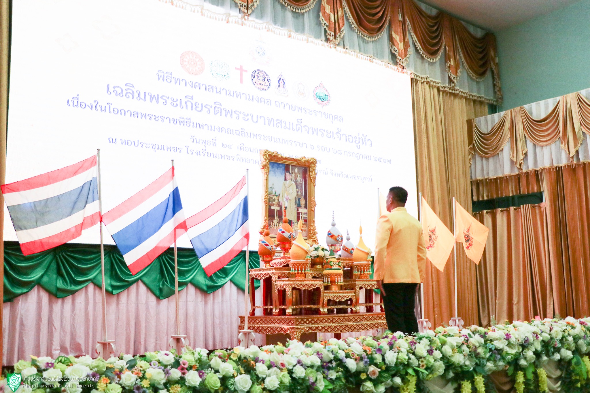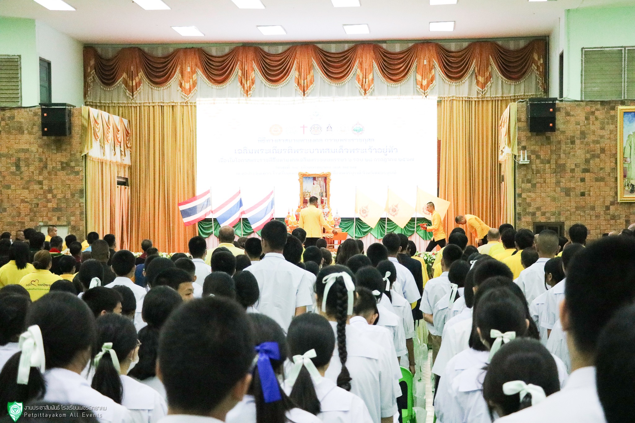 โรงเรียนเพชรพิทยาคม นำโดย นายวิเศษ ปิ่นพิทักษ์ ผู้อำนวยการโรงเรียน พร้อมด้วยรองผู้อำนวยการ คณะครูและนักเรียนชั้นมัธยมศึกษาปีที่ 2 และ 3 เข้าร่วมพิธีทางศาสนามหามงคล ถวายพระราชกุศล เฉลิมพระเกียรติพระบาทสมเด็จพระเจ้าอยู่หัว เนื่องในโอกาสพระราชพิธีมหามงคลเฉลิมพระชนมพรรษา 6 รอบ 28 กรกฎาคม 2567 โดยมีวัตถุประสงค์เพื่อเฉลิมพระเกียรติพระบาทสมเด็จพระเจ้าอยู่หัว เพื่อรวมพลังศาสนิกชนทุกศาสนา แสดงความจงรักภักดีและเทิดทูน สถาบันพระมหากษัตริย์ และเพื่อส่งเสริมให้ศาสนิกชนมีจิตสำนึกที่ดี และตั้งใจปฏิบัติตนตามหลักธรรมคำสอนทางศาสนา สร้างความสัมพันธ์ที่ดีต่อกัน ระหว่างหน่วยงานของรัฐ องค์กรภาคเอกชน สร้างความสมานฉันท์ให้เกิดขึ้นแก่ประชาชนในชาติ