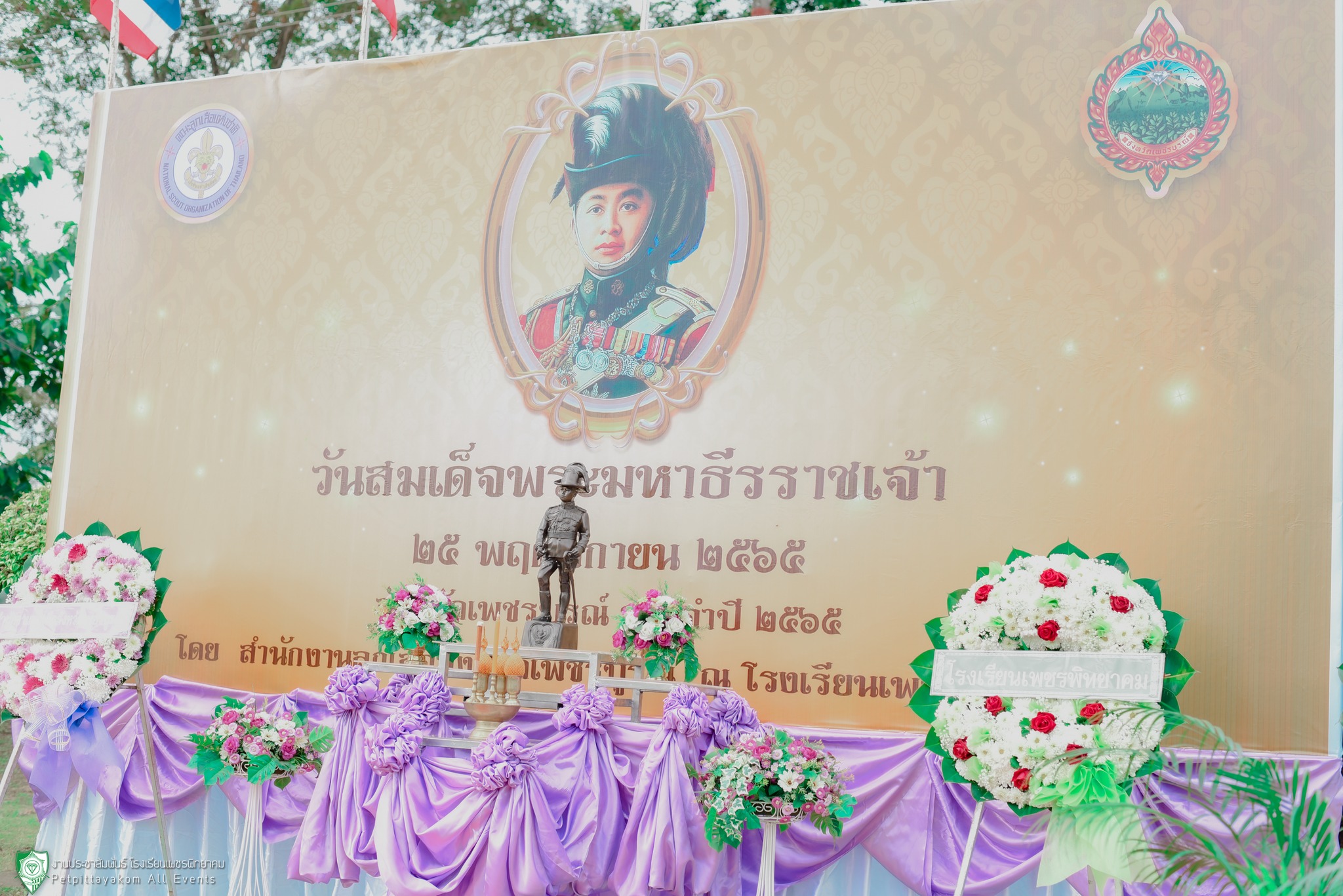 วันที่ 25 พฤศจิกายน 2565 นายวิเศษ ปิ่นพิทักษ์ ผู้อำนวยการโรงเรียนเพชรพิทยาคม พร้อมด้วยรองผู้อำนวยการ และคณะครูนำนักเรียนเข้าร่วมพิธีวันสมเด็จพระมหาธีรราชเจ้า ประจำปี 2565 เนื่องในวันคล้ายวันสวรรคตของพระบาทสมเด็จพระมงกุฎเกล้าเจ้าอยู่หัว พระผู้ทรงพระราชทานกำเนิดลูกเสือไทย