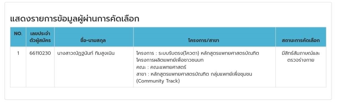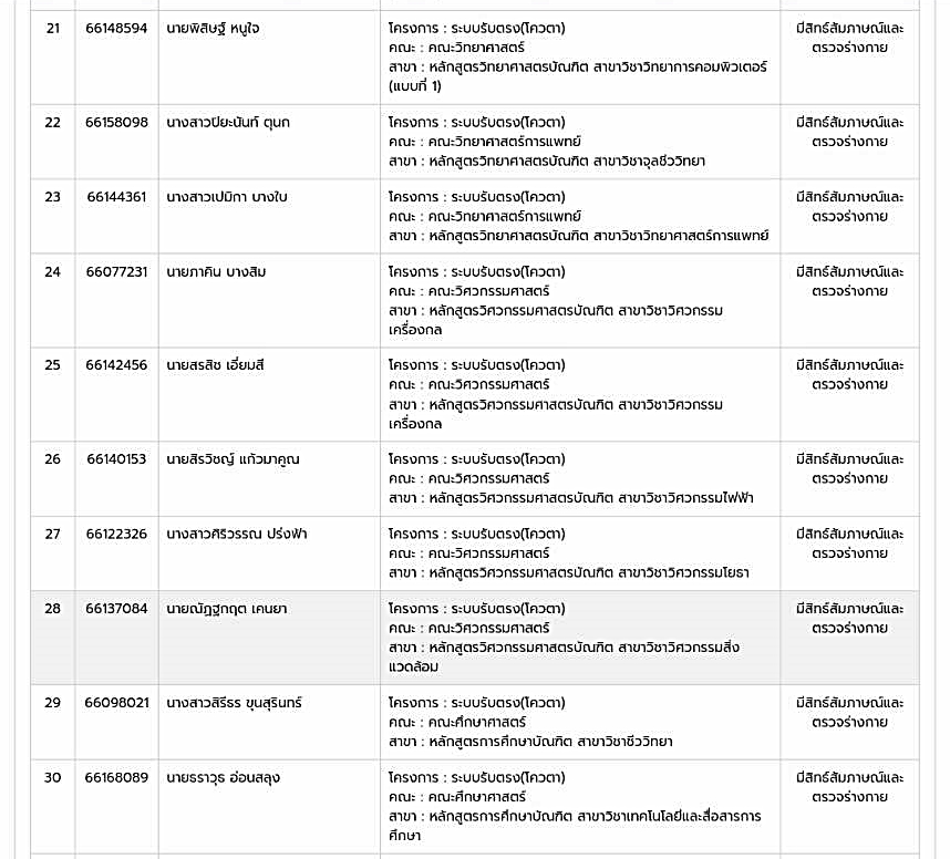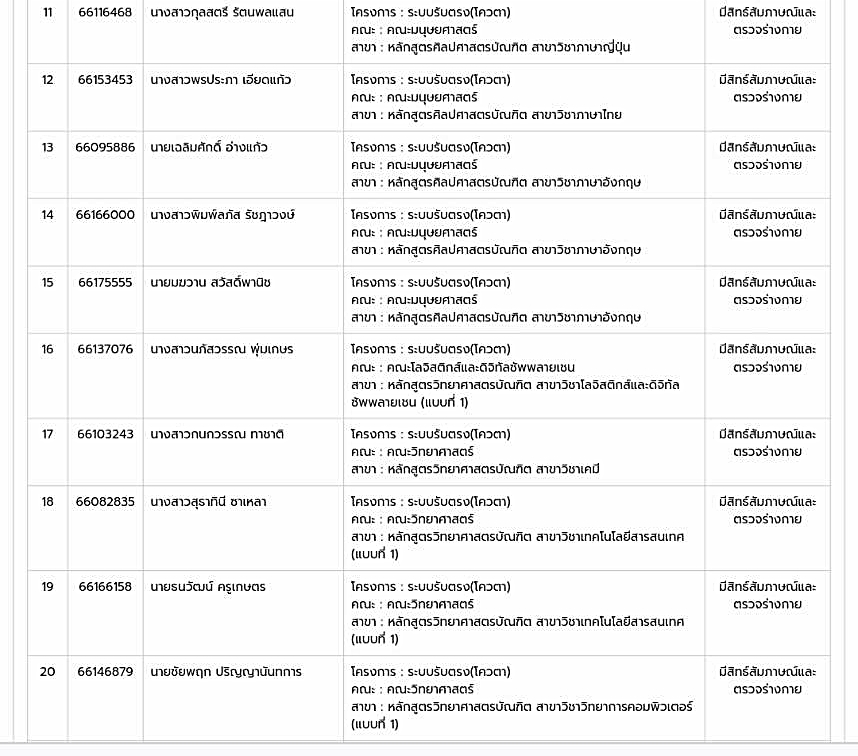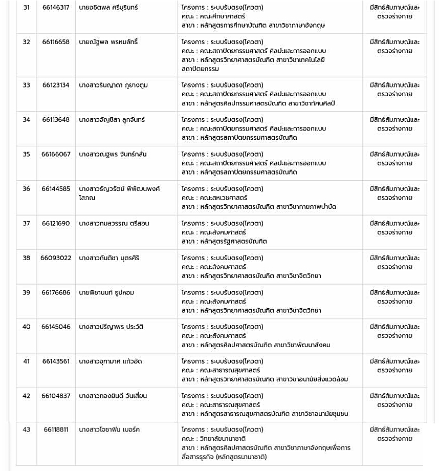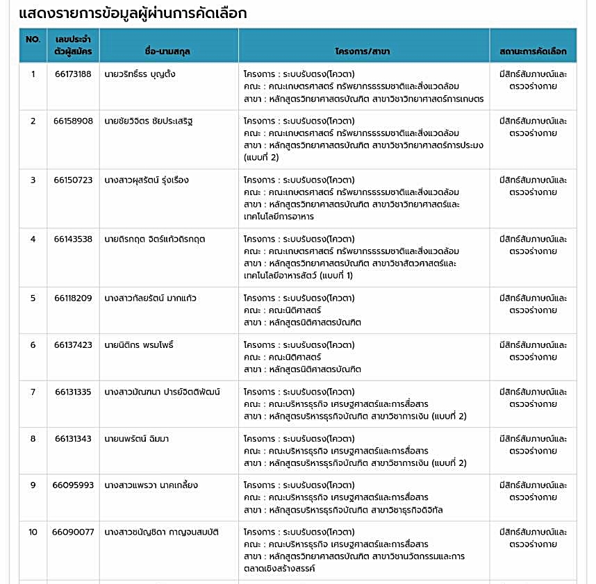 รายชื่อนักเรียน ผู้ผ่านการคัดเลือกเพื่อศึกษาต่อมหาวิทยาลัยนเรศวร ม.นเรศวร รอบ 2 จำนวน 44 คน