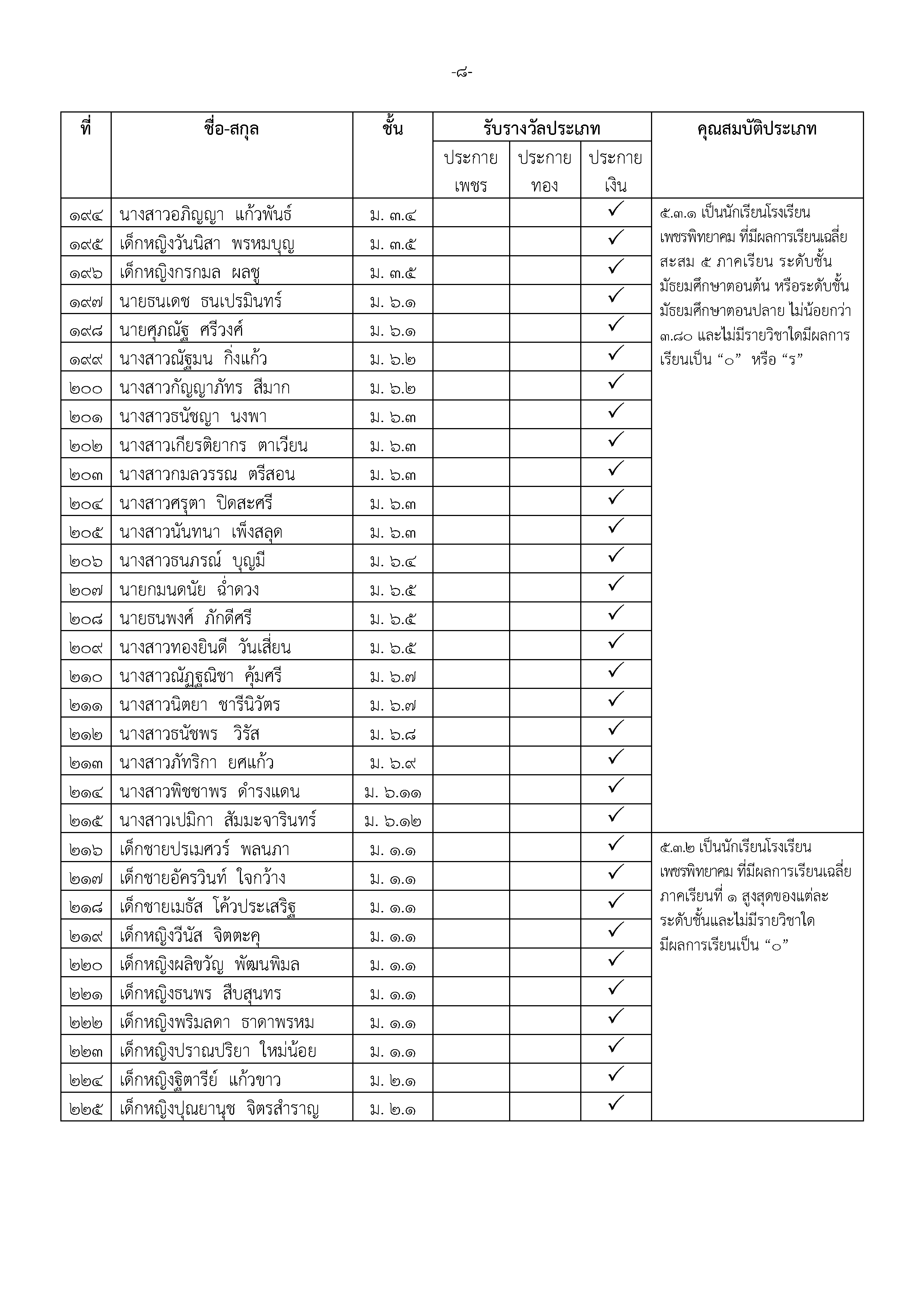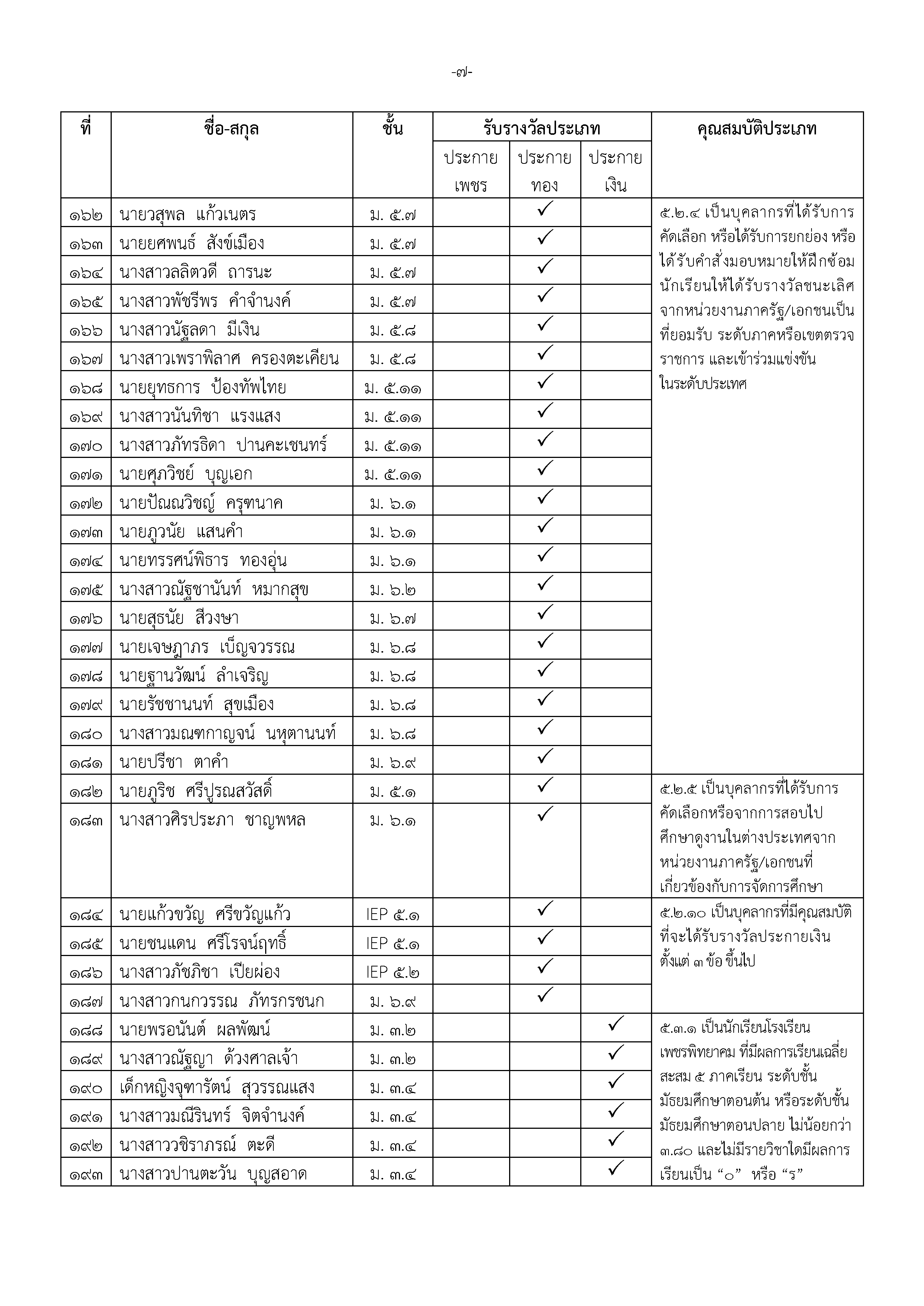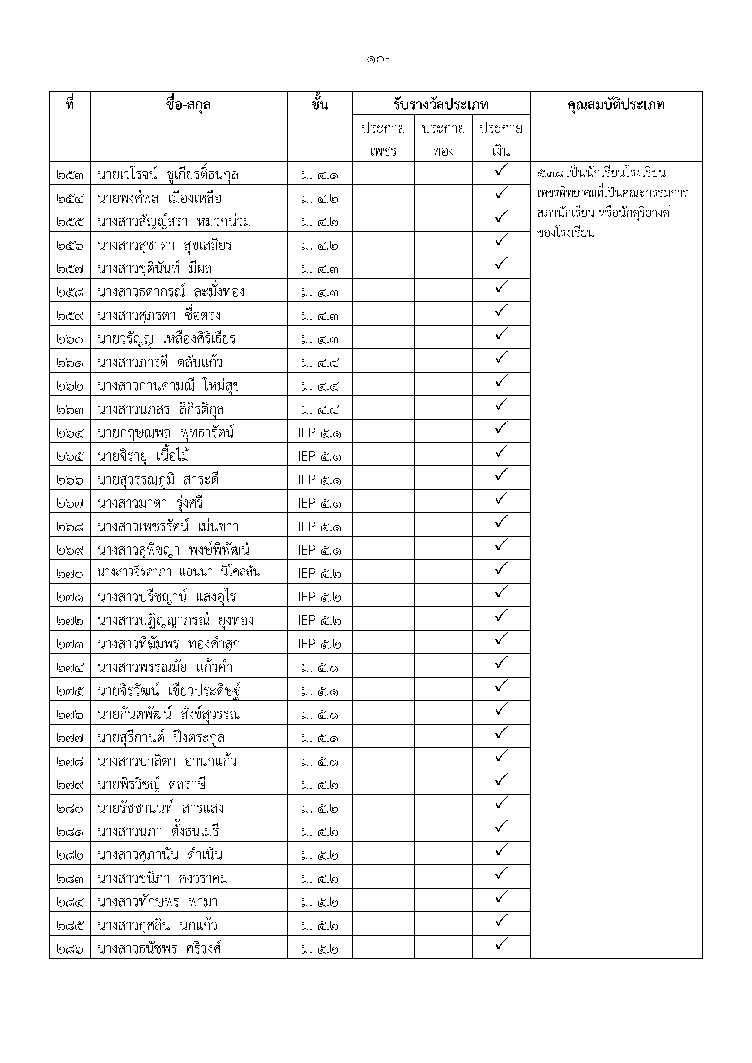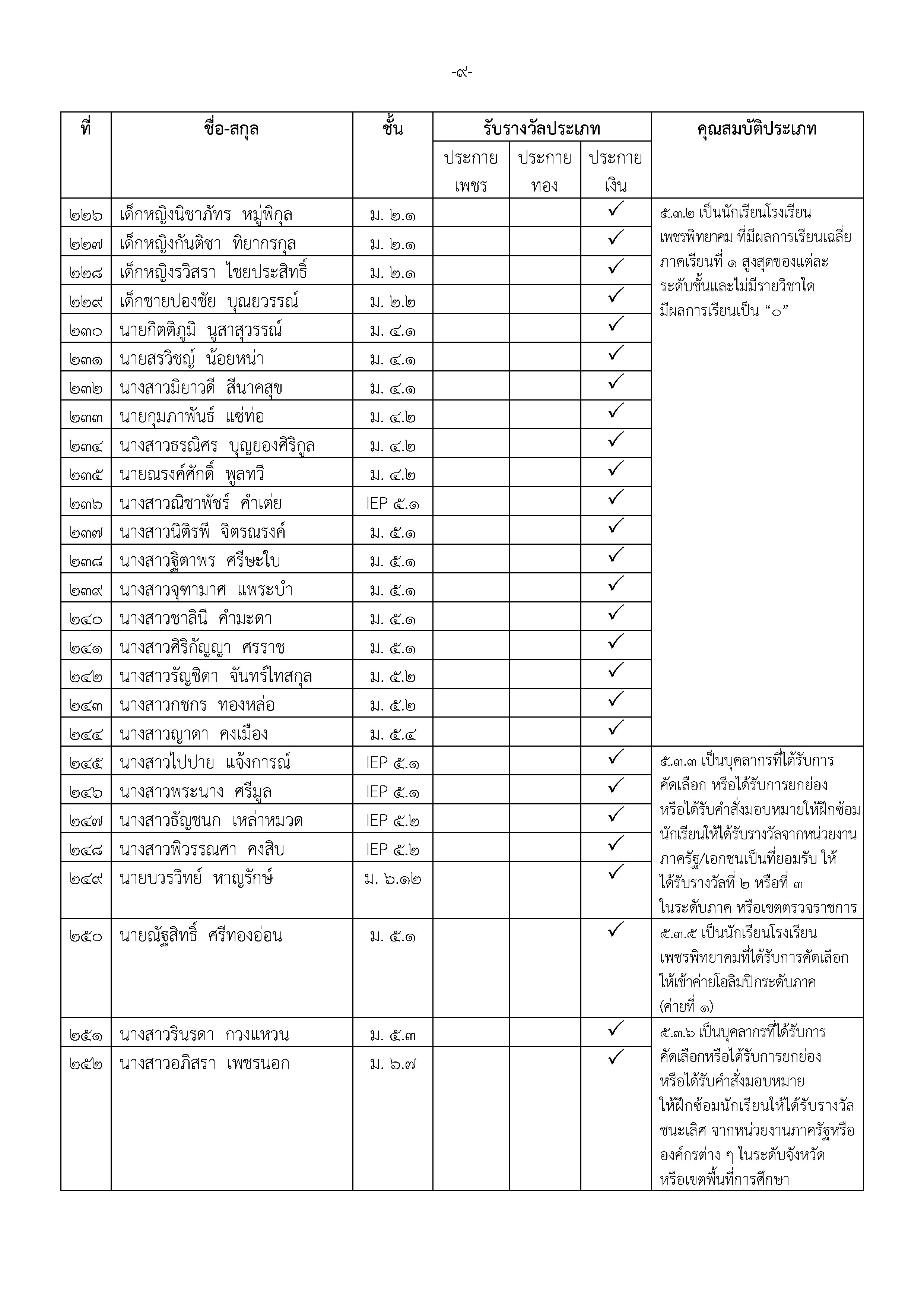 เรื่อง รายชื่อผู้ได้รับรางวัลเชิดชูเกียรติ วันเกียรติยศโรงเรียน