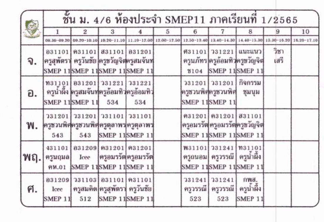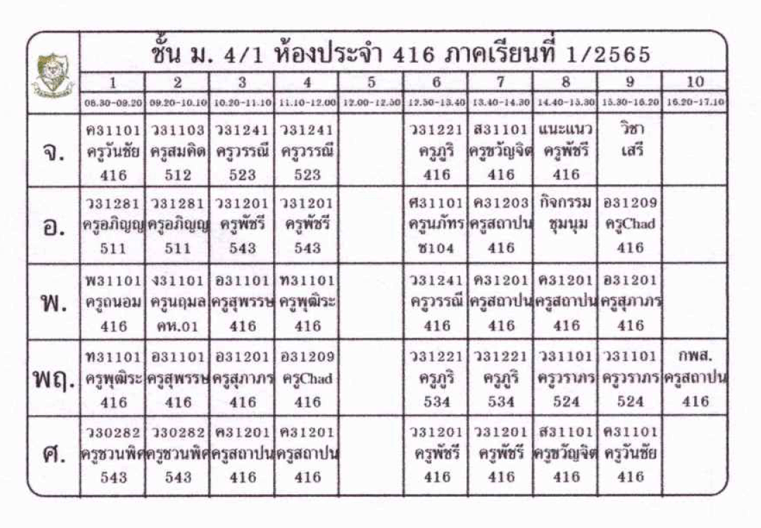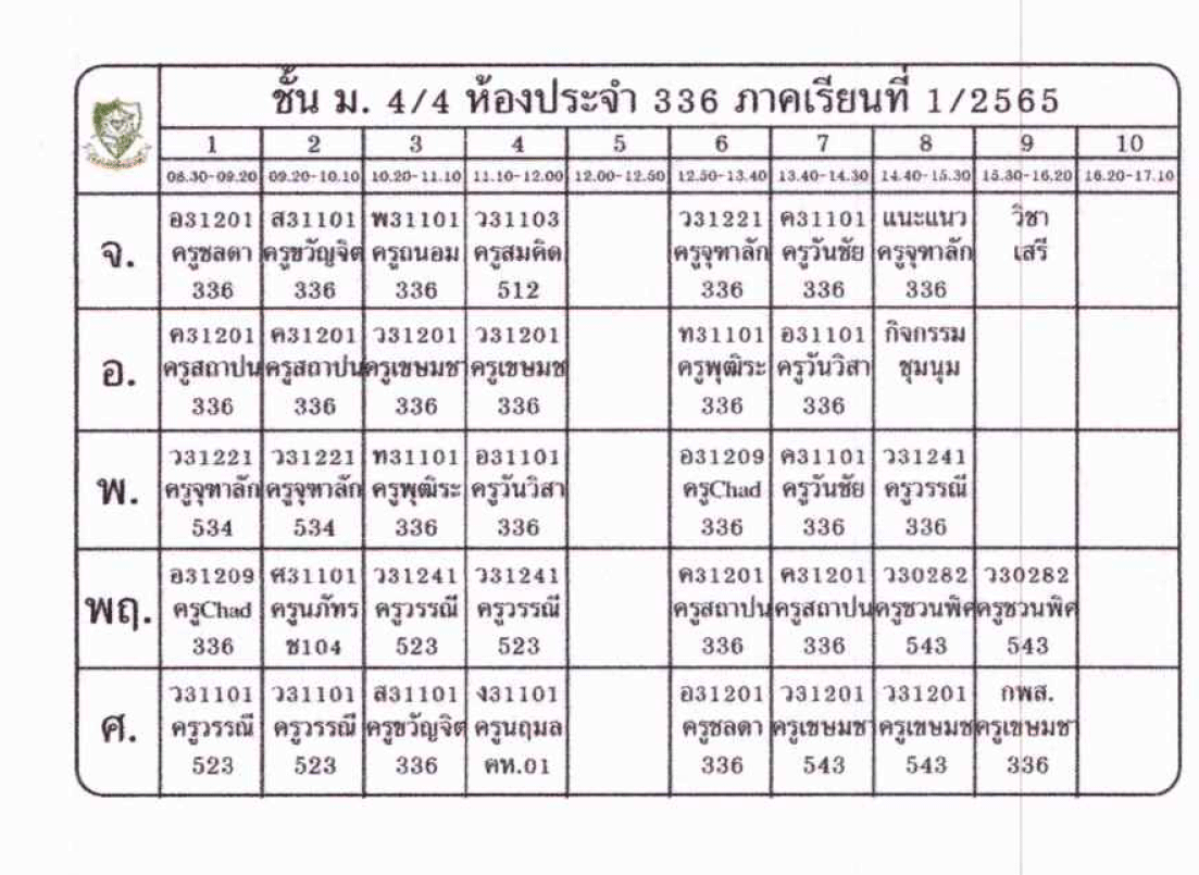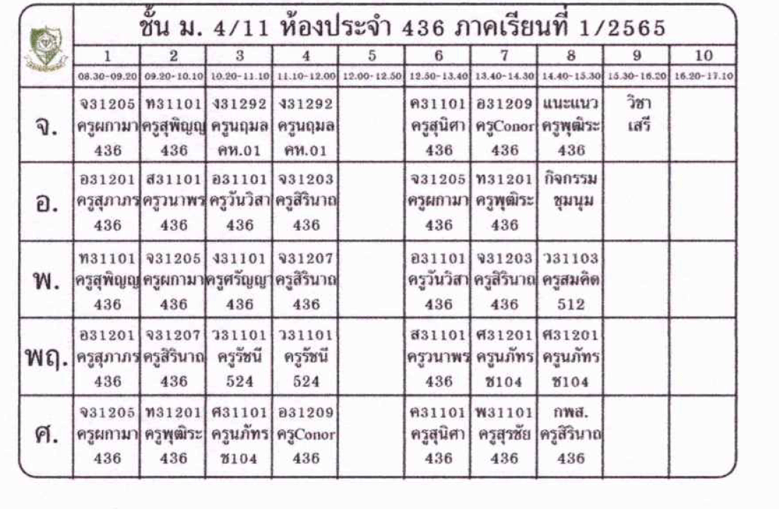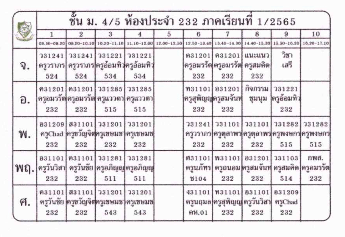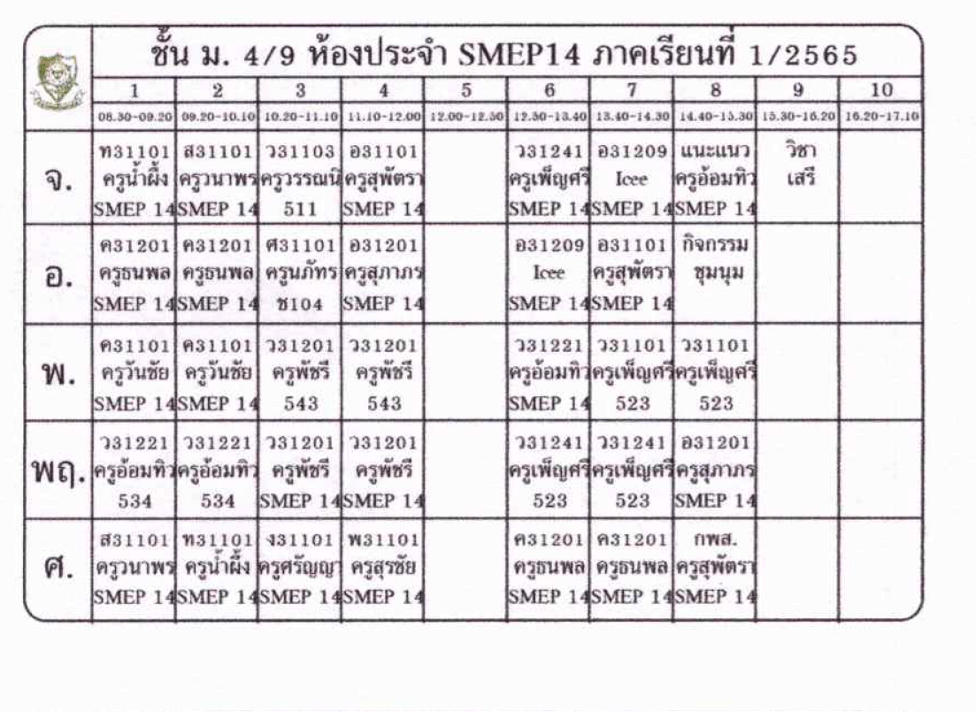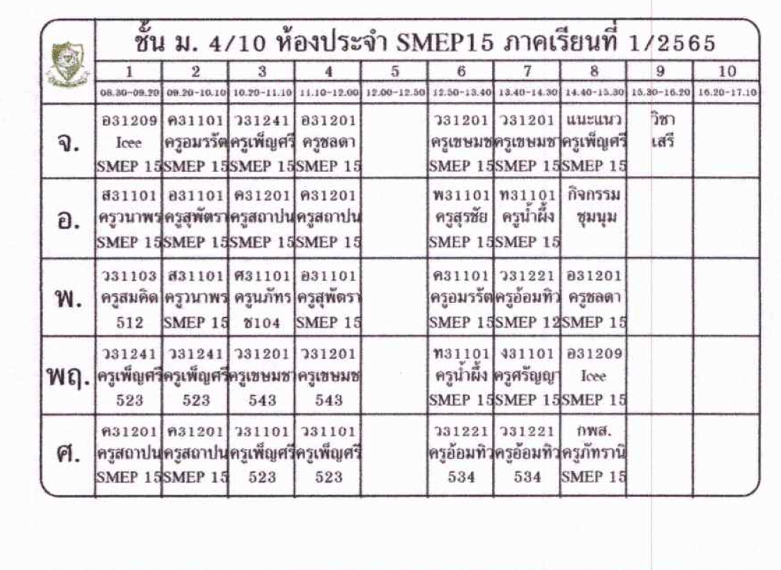 ตารางเรียนนักเรียน ชั้น ม.4 ภาคเรียนที่ 1 ปีการศึกษา 2565