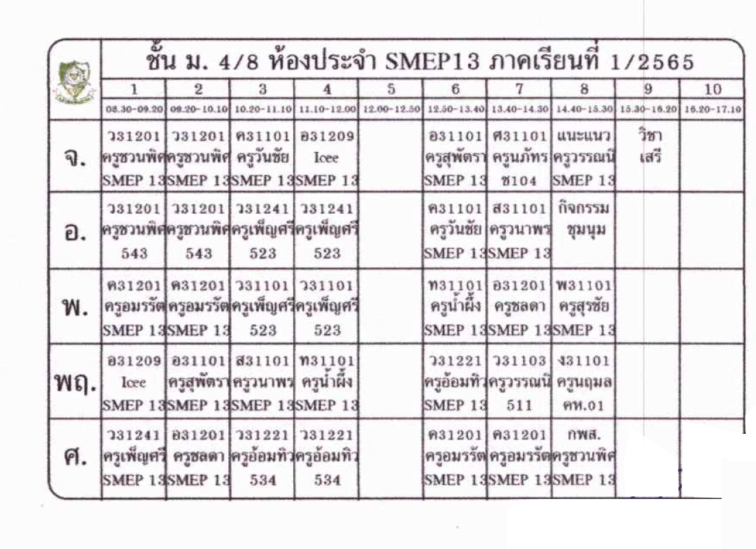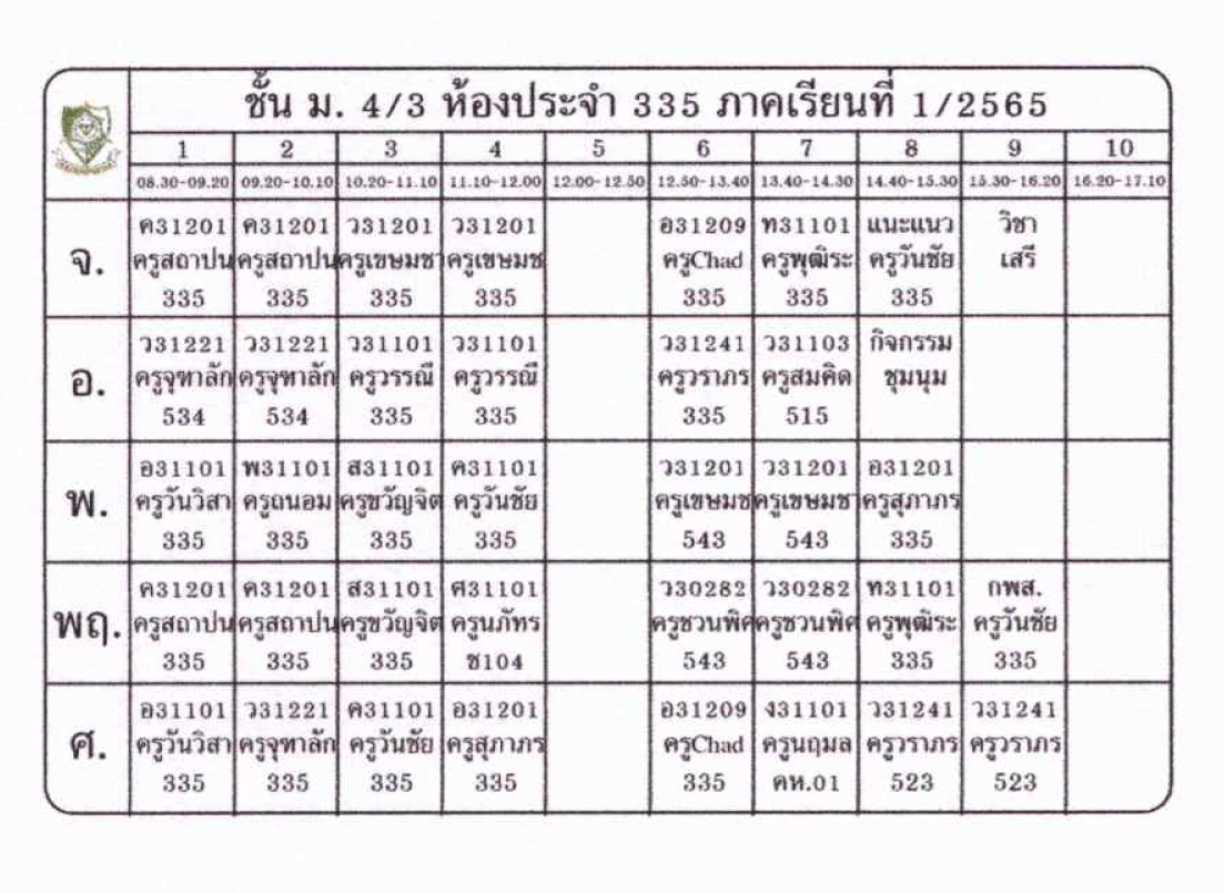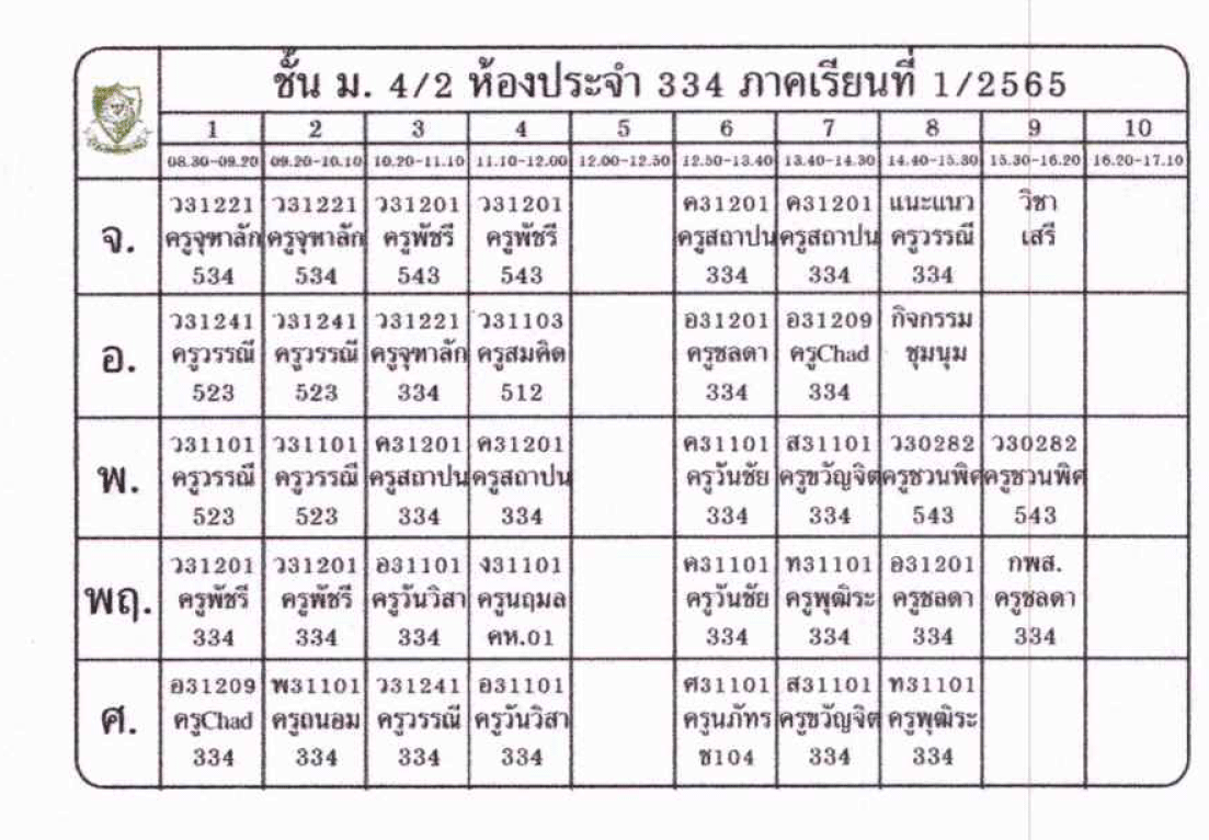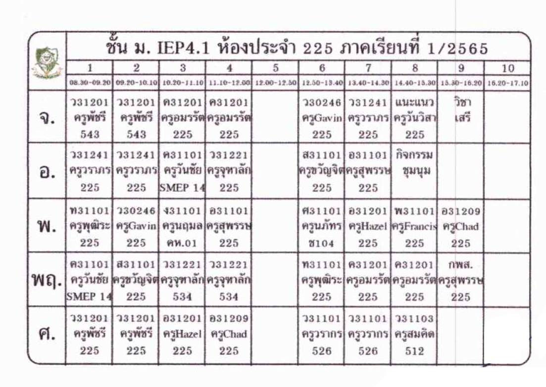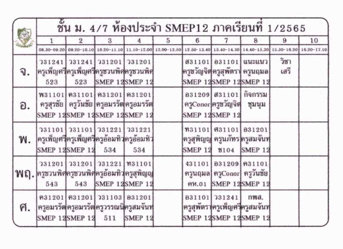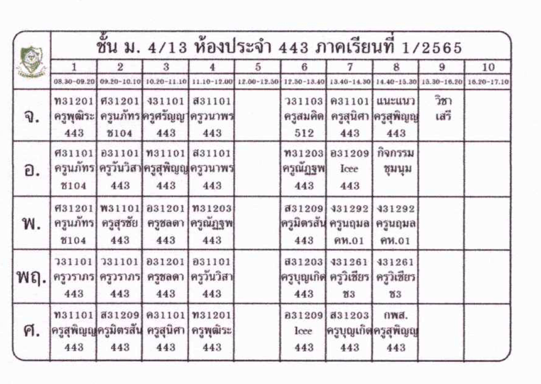 ตารางเรียนนักเรียน ชั้น ม.4 ภาคเรียนที่ 1 ปีการศึกษา 2565