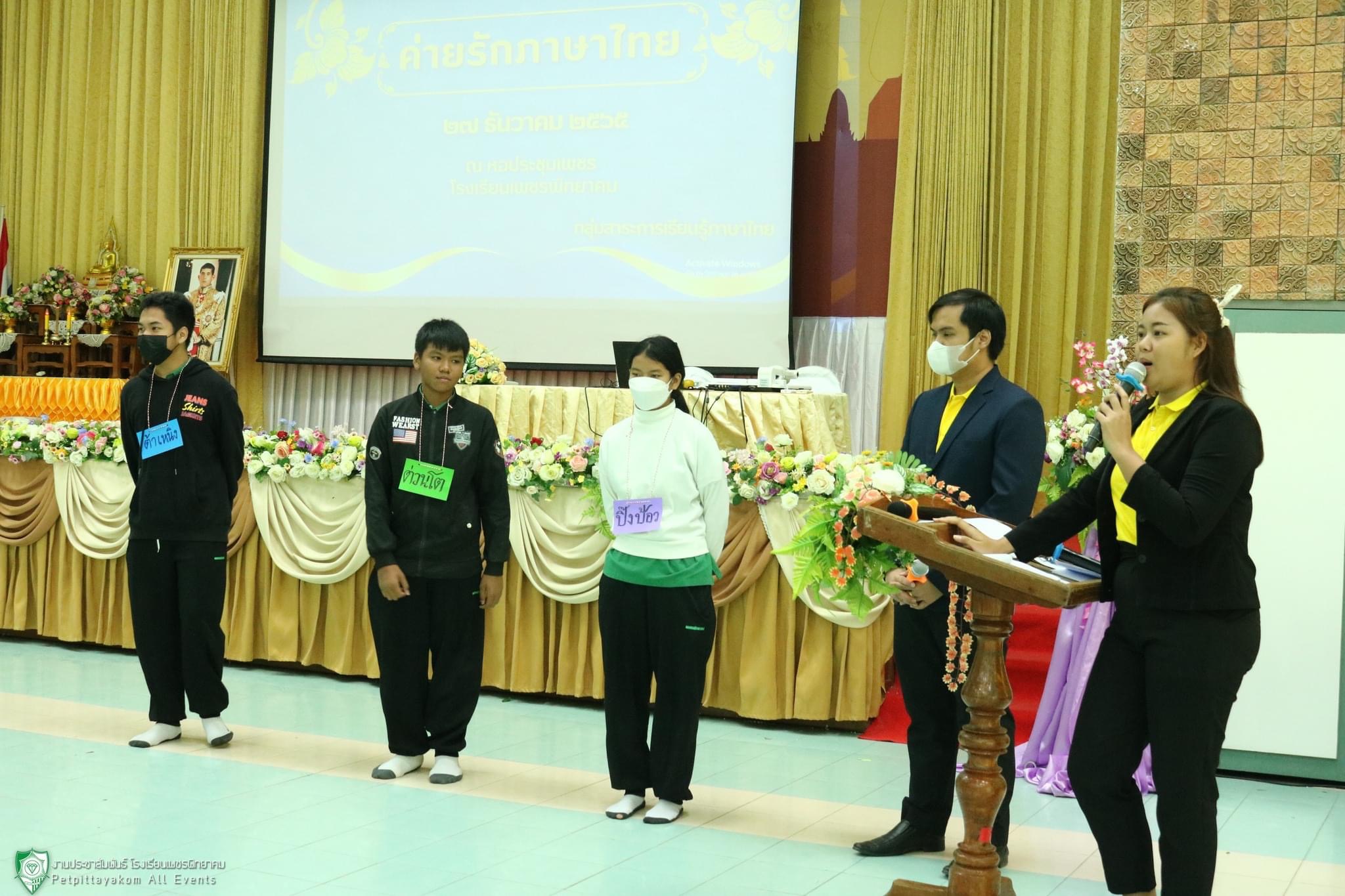 วันที่ 27 ธันวาคม 2565 โรงเรียนเพชรพิทยาคมจัดกิจกรรมค่ายรักภาษาไทย ประจำปีการศึกษา 2565 เพื่อพัฒนาทักษะการเรียนรู้ภาษาไทยและส่งเสริมปลูกฝังการใช้ภาษาไทยให้ถูกต้องโดยมีนายวิเศษ ปิ่นพิทักษ์ ผู้อำนวยการโรงเรียนเป็นประธานในพิธีเปิด และได้รับเกียรติจาก ผศ.สมพร แพ่งพิพัฒน์ เป็นวิทยากร พร้อมด้วยคณะครูกลุ่มสาระการเรียนรู้ภาษาไทย และนักเรียนชั้นมัธยมศึกษาปีที่ 1 เข้าร่วมกิจกรรม ณ หอประชุมเพชร โรงเรียนเพชรพิทยาคม