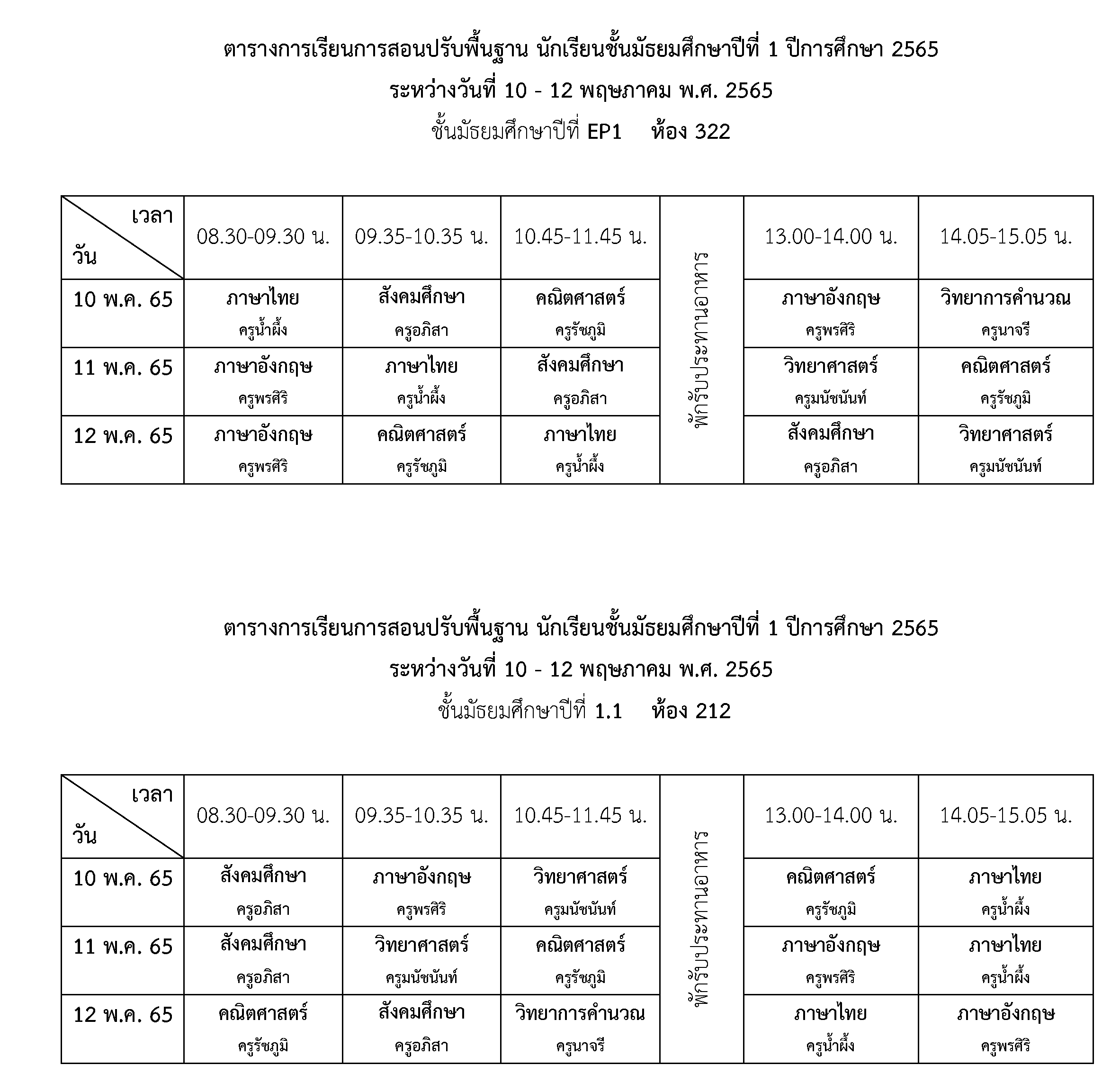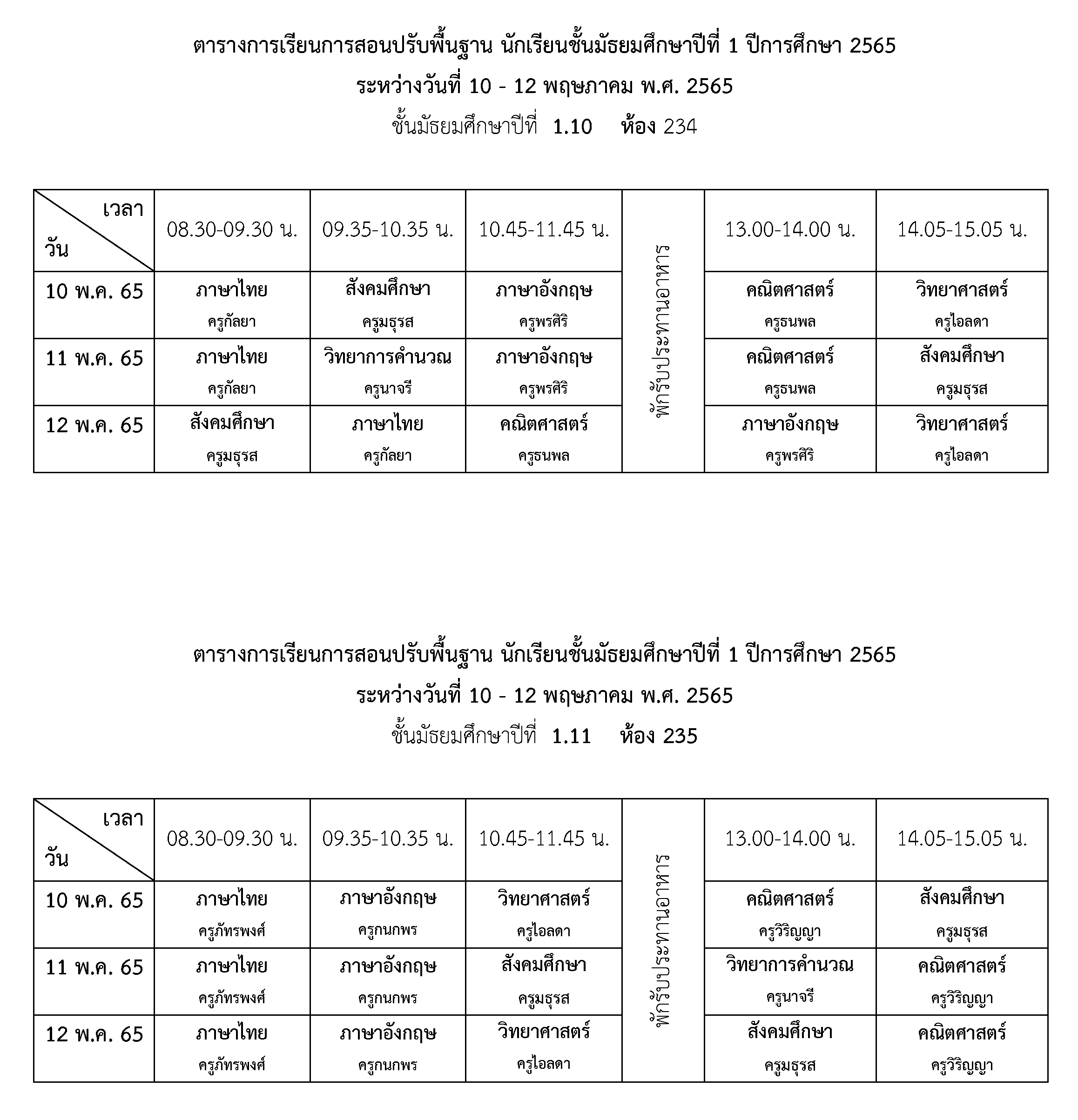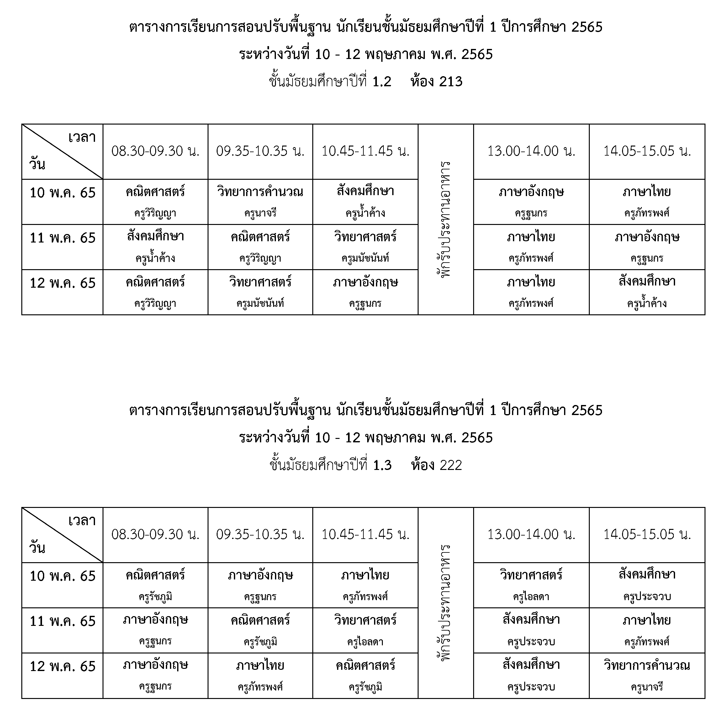 การจัดการเรียนการสอนปรับพื้นฐาน ชั้นมัธยมศึกษาปีที่ 1 ปีการศึกษา 2565 ระหว่างวันที่ 10 - 12 พฤษภาคม 2565