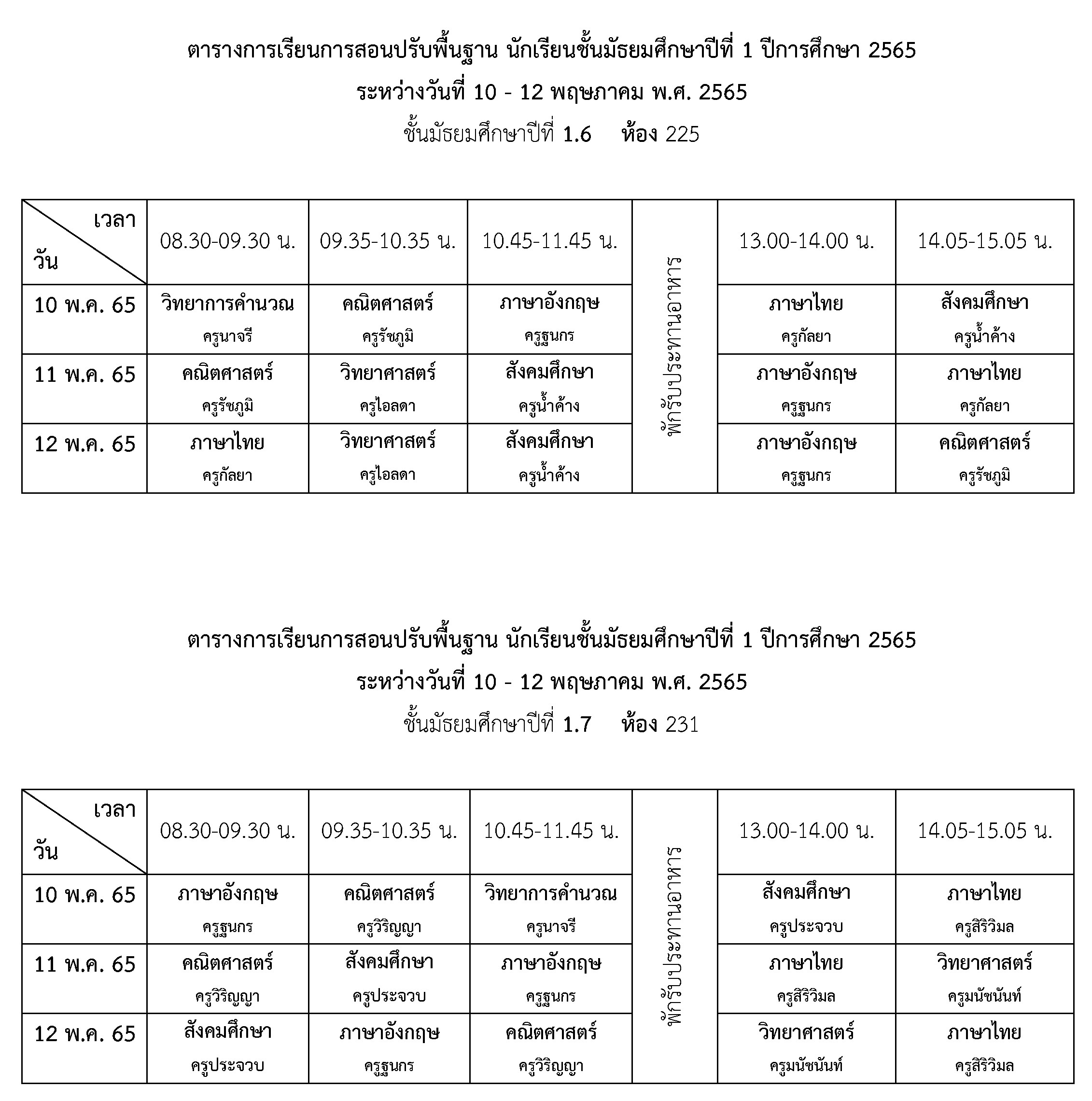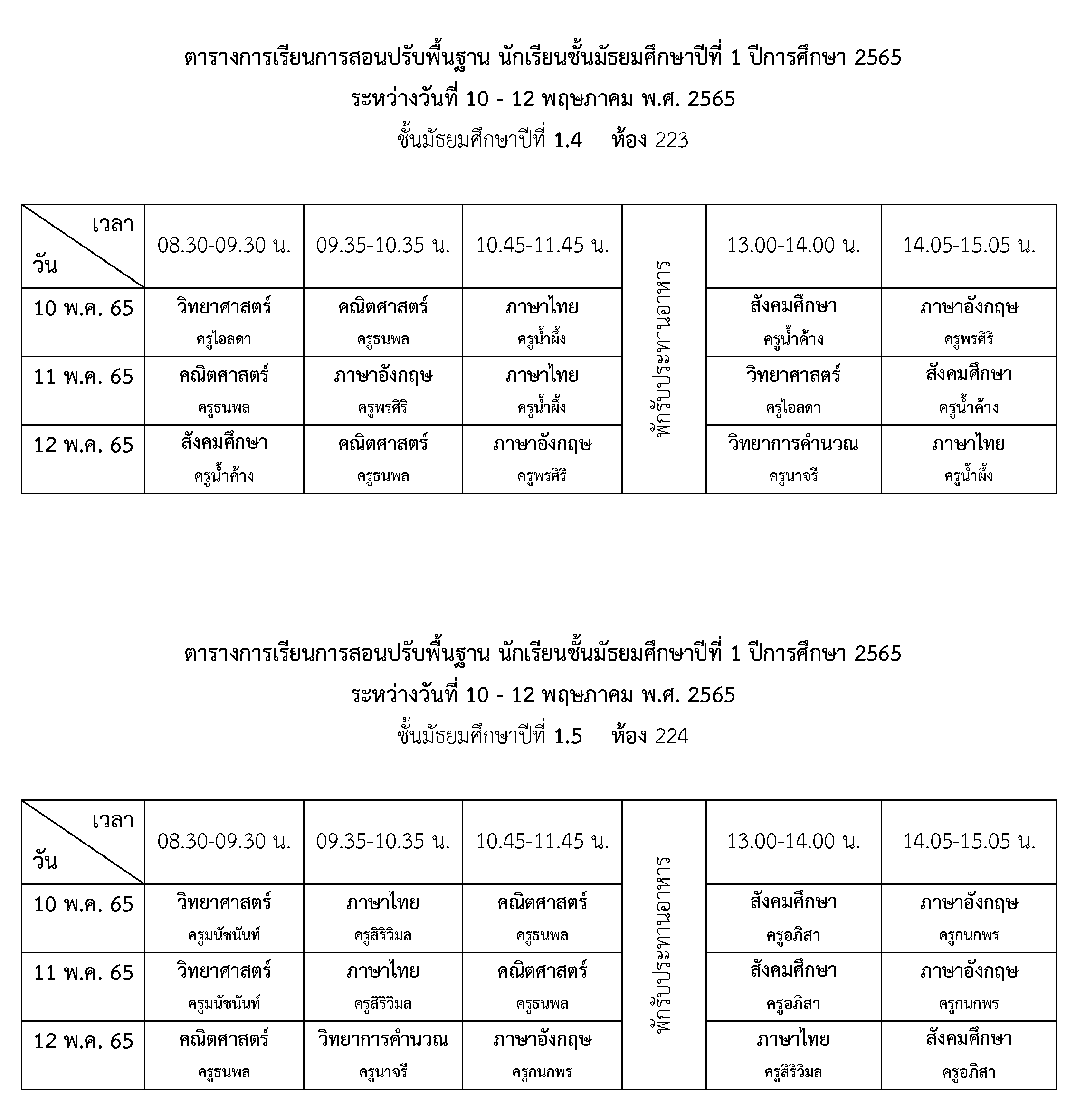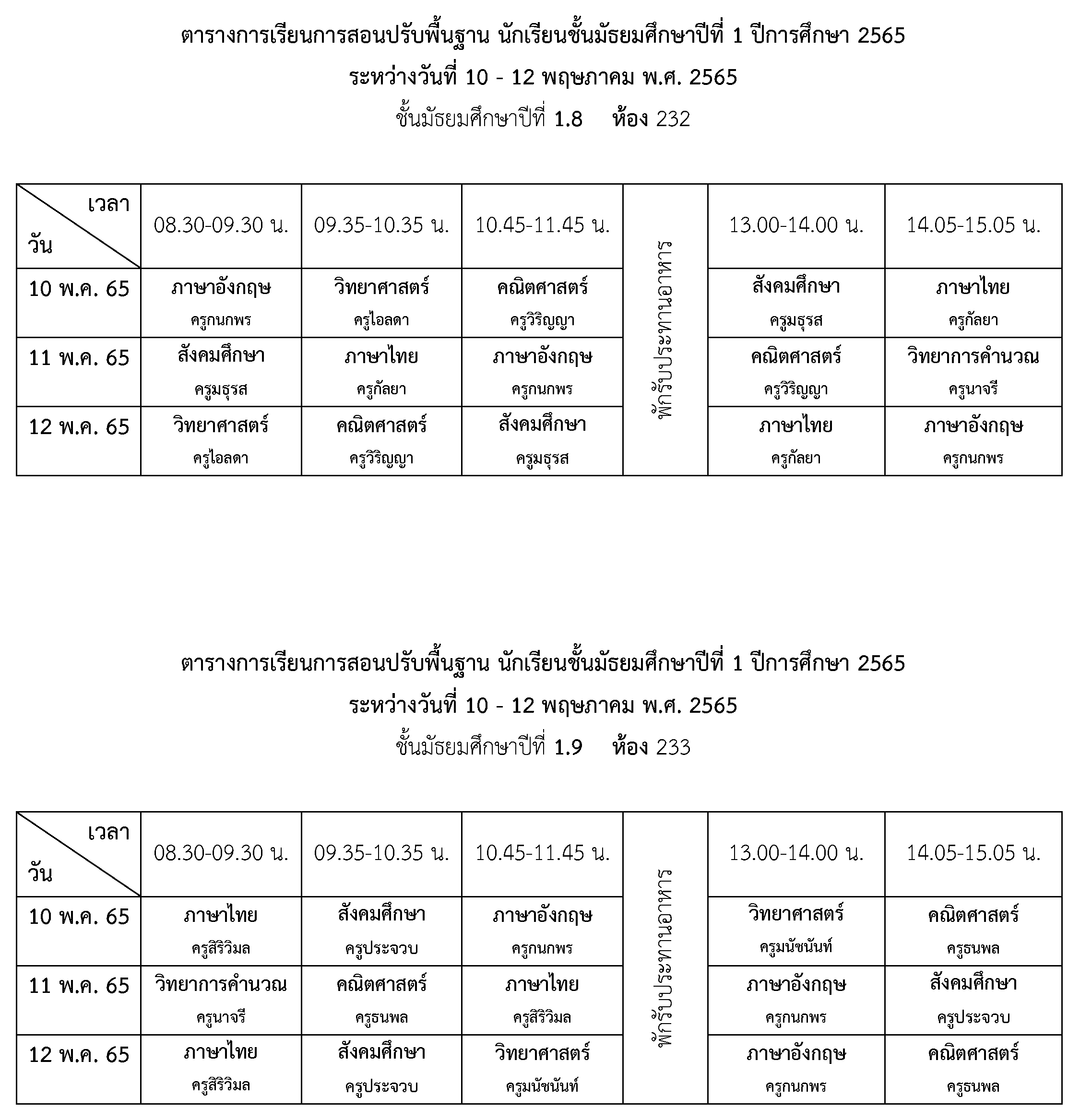 การจัดการเรียนการสอนปรับพื้นฐาน ชั้นมัธยมศึกษาปีที่ 1 ปีการศึกษา 2565 ระหว่างวันที่ 10 - 12 พฤษภาคม 2565