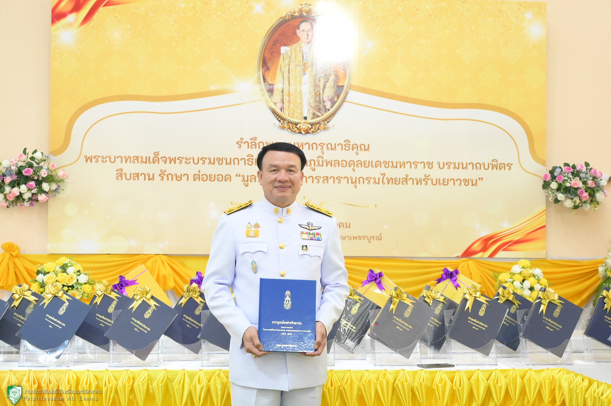 นายวิเศษ ปิ่นพิทักษ์ ผู้อำนวยการโรงเรียนเพชรพิทยาคม พร้อมด้วยตัวแทนคณะครูเข้าร่วมพิธีมอบหนังสือสารานุกรมไทยสำหรับเยาวชน โดยพระราชประสงค์ในพระบาทสมเด็จพระบรมชนกาธิเบศร มหาภูมิพลอดุลยเดชมหาราช บรมนาถบพิตร เล่มที่ 44 ฉบับพระราชทาน ให้ผู้บริหารสถานศึกษาในจังหวัดเพชรบูรณ์ จำนวน 201 เล่ม เพื่อใช้ในการศึกษาของทุกช่วงวัย