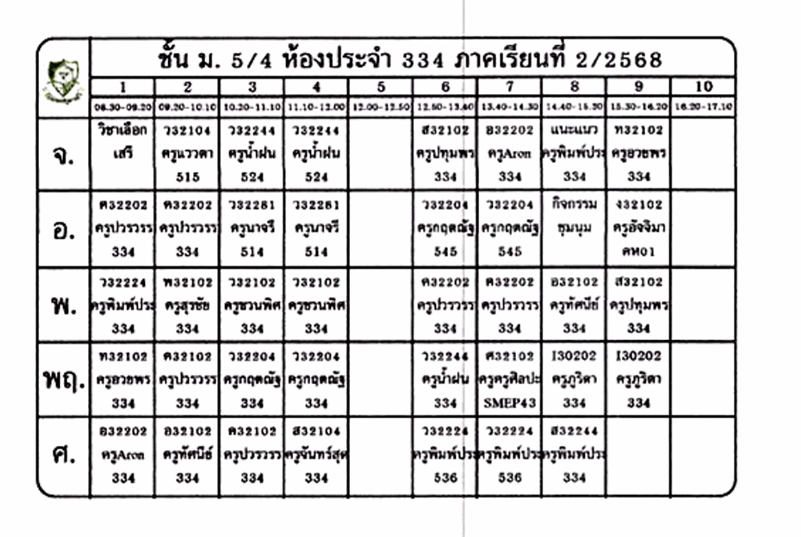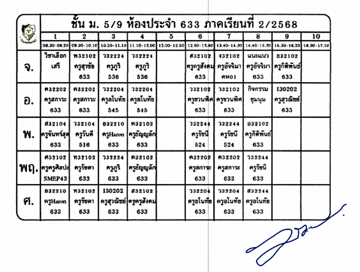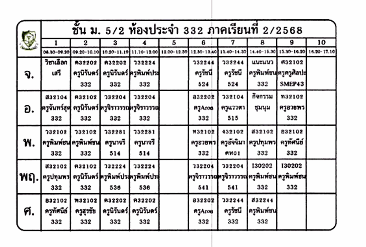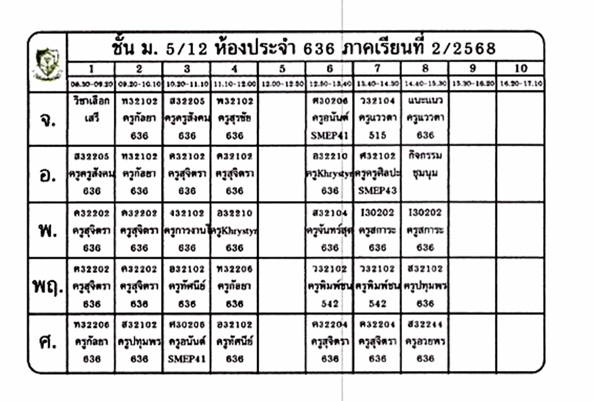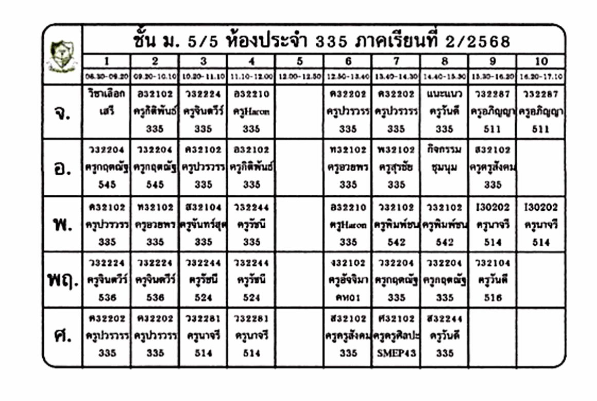 ตารางเรียนนักเรียน ชั้น ม.5 ภาคเรียนที่ 2 ปีการศึกษา 2568