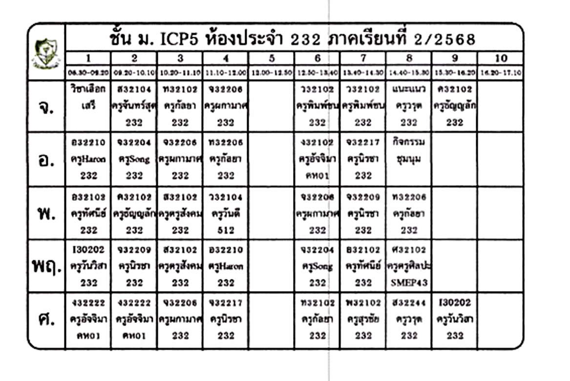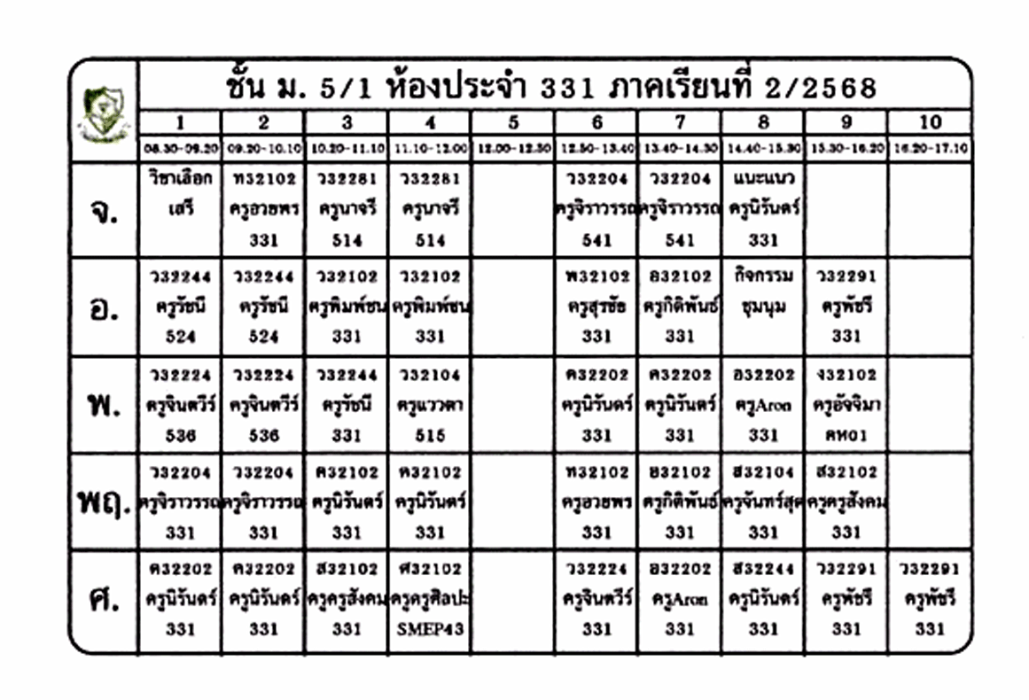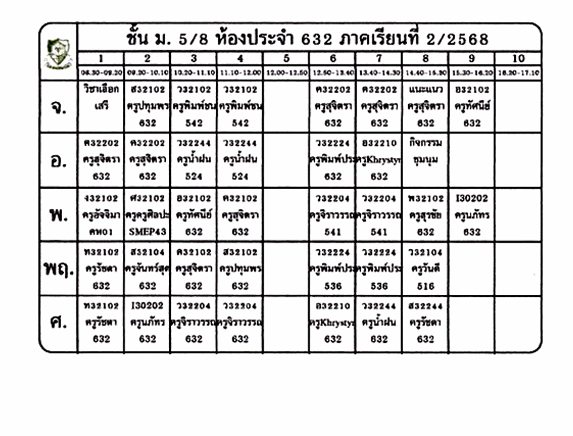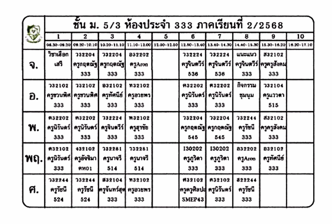 ตารางเรียนนักเรียน ชั้น ม.5 ภาคเรียนที่ 2 ปีการศึกษา 2568