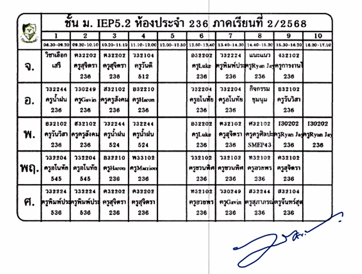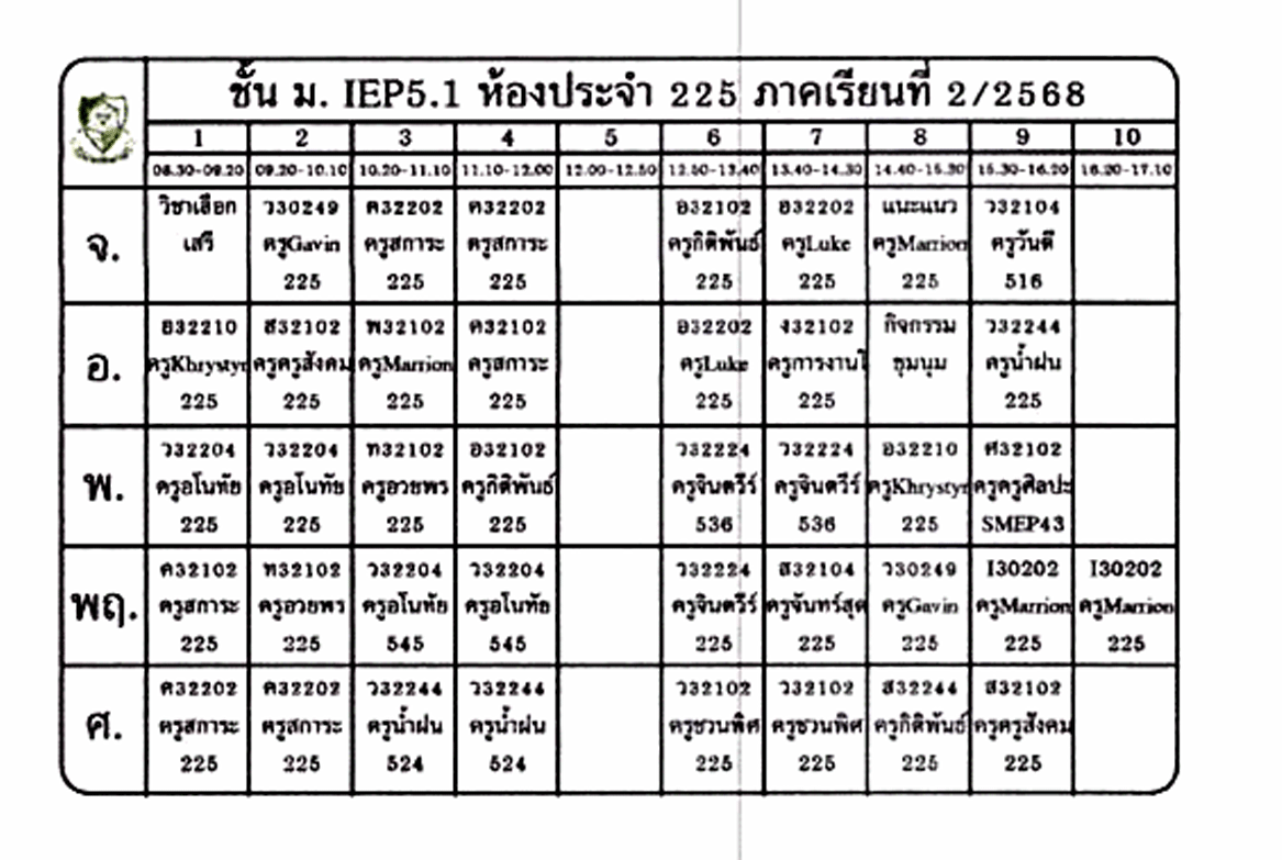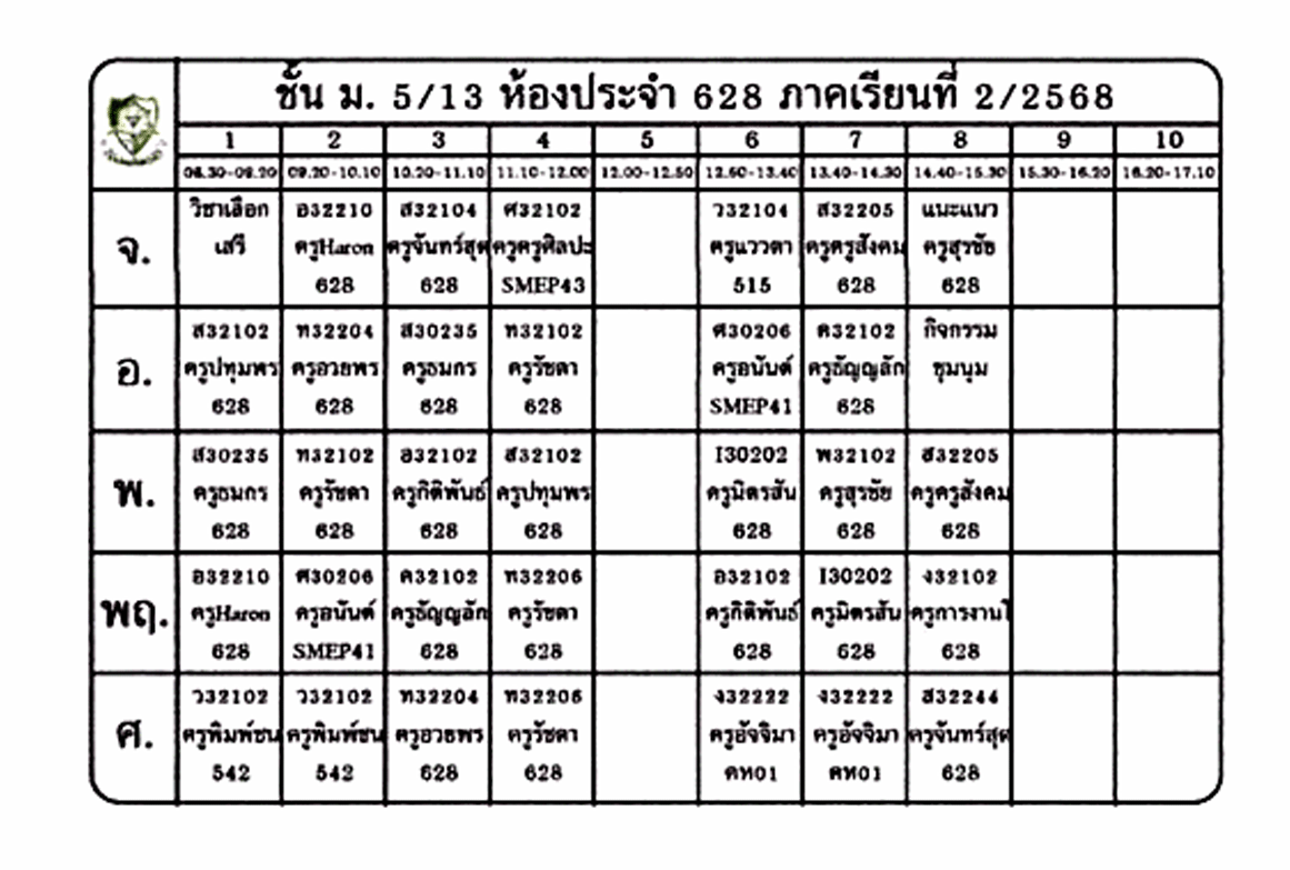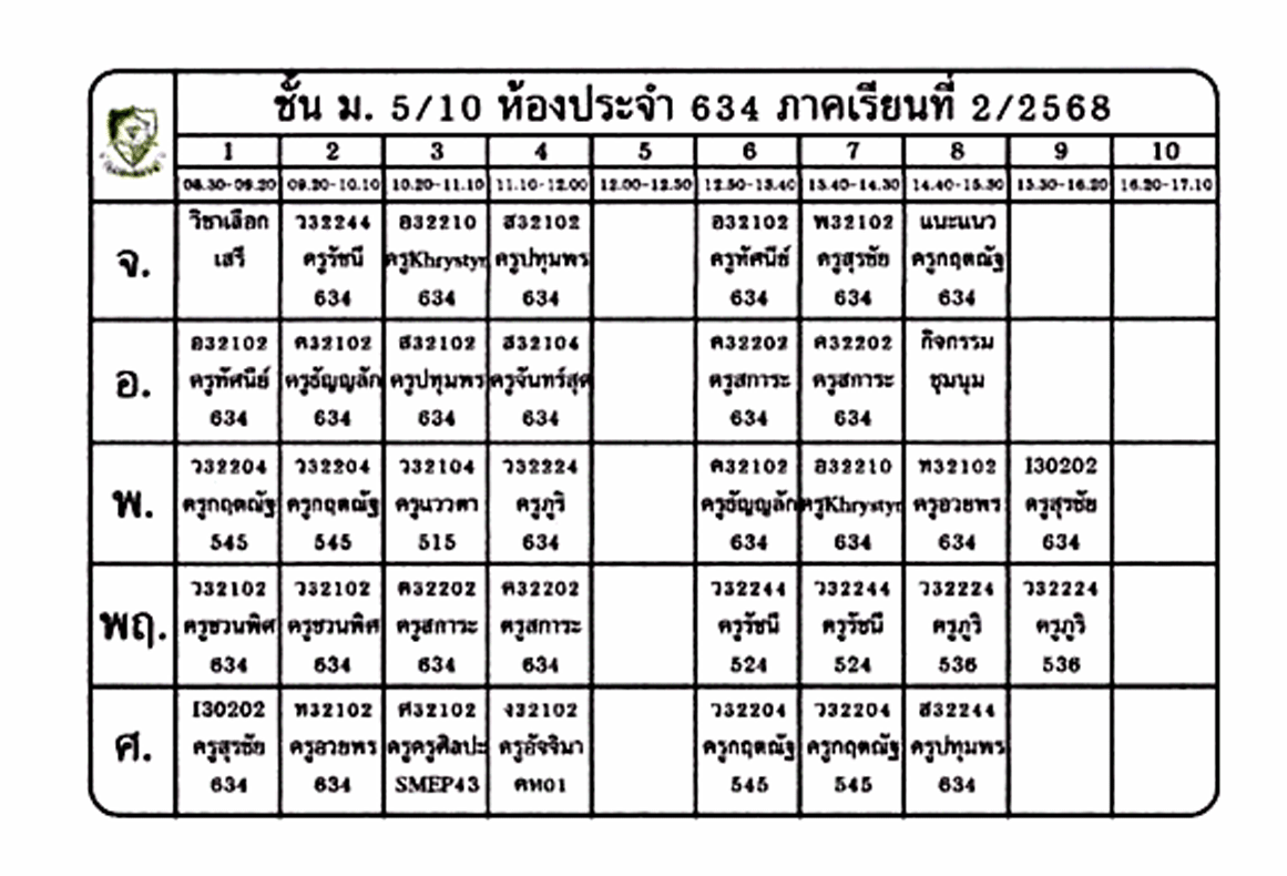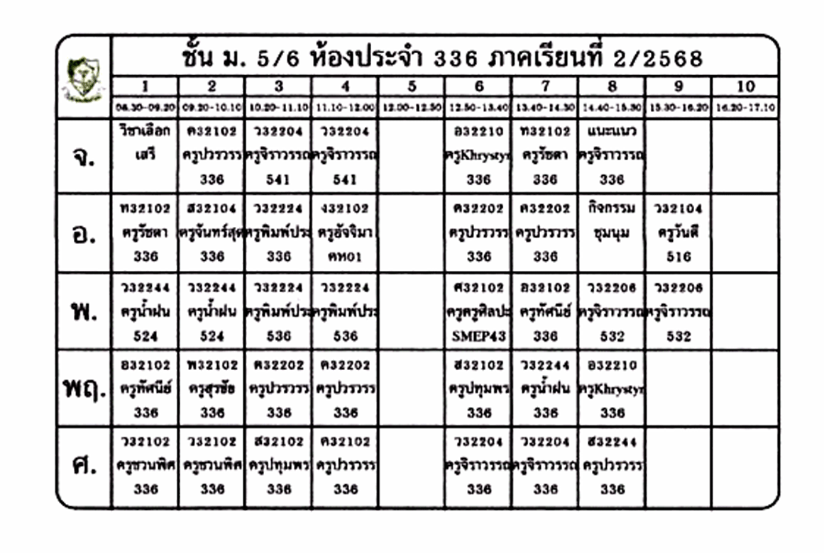ตารางเรียนนักเรียน ชั้น ม.5 ภาคเรียนที่ 2 ปีการศึกษา 2568