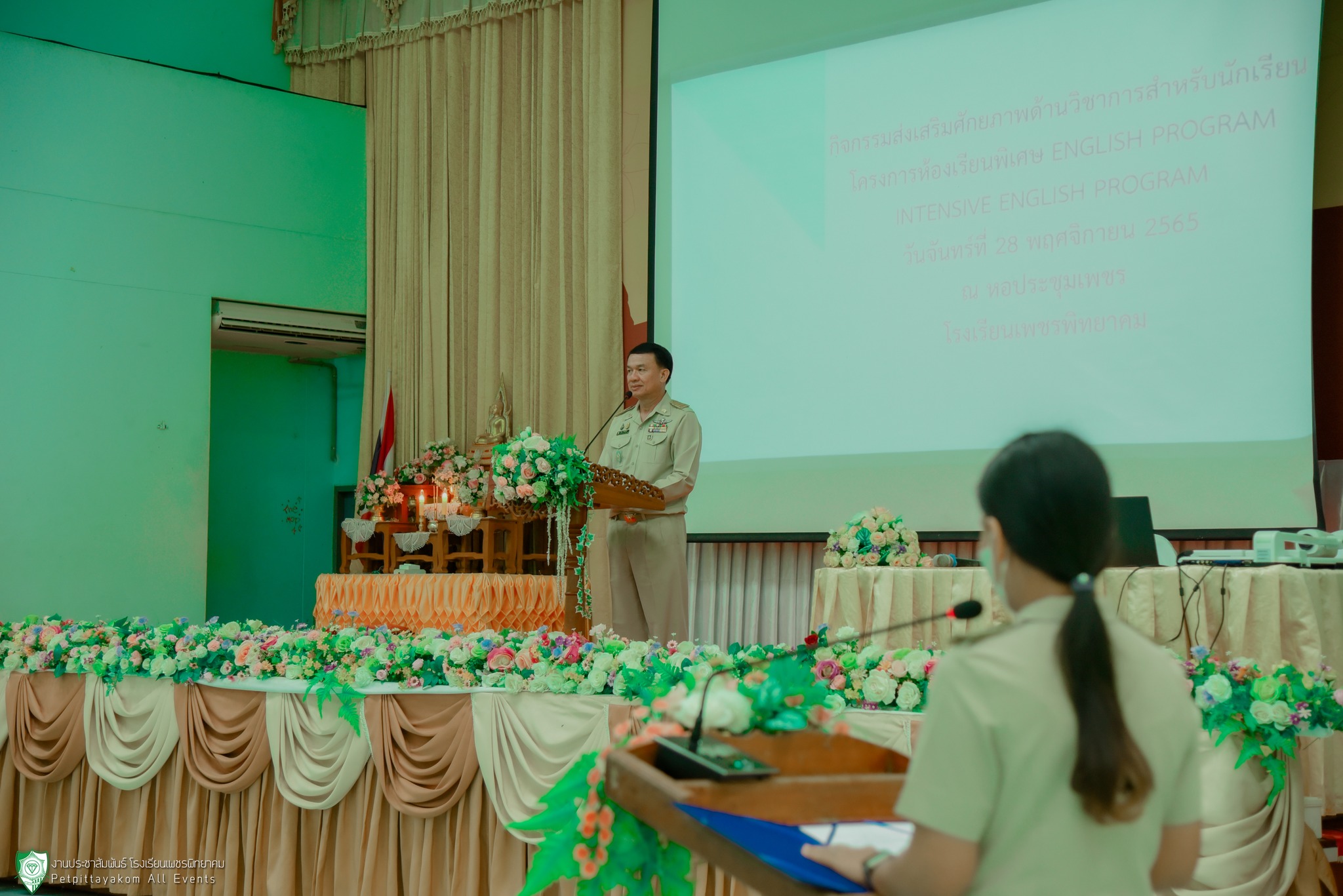 28 พฤศจิกายน 2565 โรงเรียนเพชรพิทยาคมจัดกิจกรรมส่งเสริมศักยภาพด้านวิชาการสำหรับนักเรียนโครงการห้องเรียนพิเศษ English Program / lntensive English Program โดยมีนายวิเศษ ปิ่นพิทักษ์ ผู้อำนวยการโรงเรียนเพชรพิทยาคม เป็นประธานในพิธี พร้อมด้วยรองผู้อำนวยการ คณะครูกลุ่มสาระการเรียนภาษาต่างประเทศและนักเรียนห้องเรียนเรียนพิเศษ English Program / lntensive English Programเข้าร่วมกิจกรรม ณ หอประชุมเพชร โรงเรียนเพชรพิทยาคม