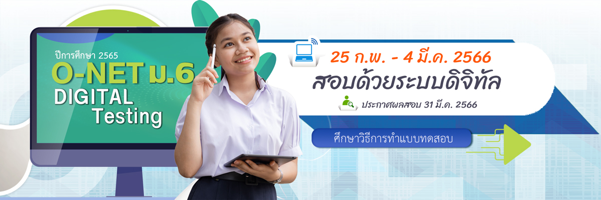 ประกาศเลขที่นั่งสอบ O-NET ม.6 Digital Testing (สอบด้วยระบบดิจิทัล) วันที่ 25 ก.พ. - 4 มี.ค.2566