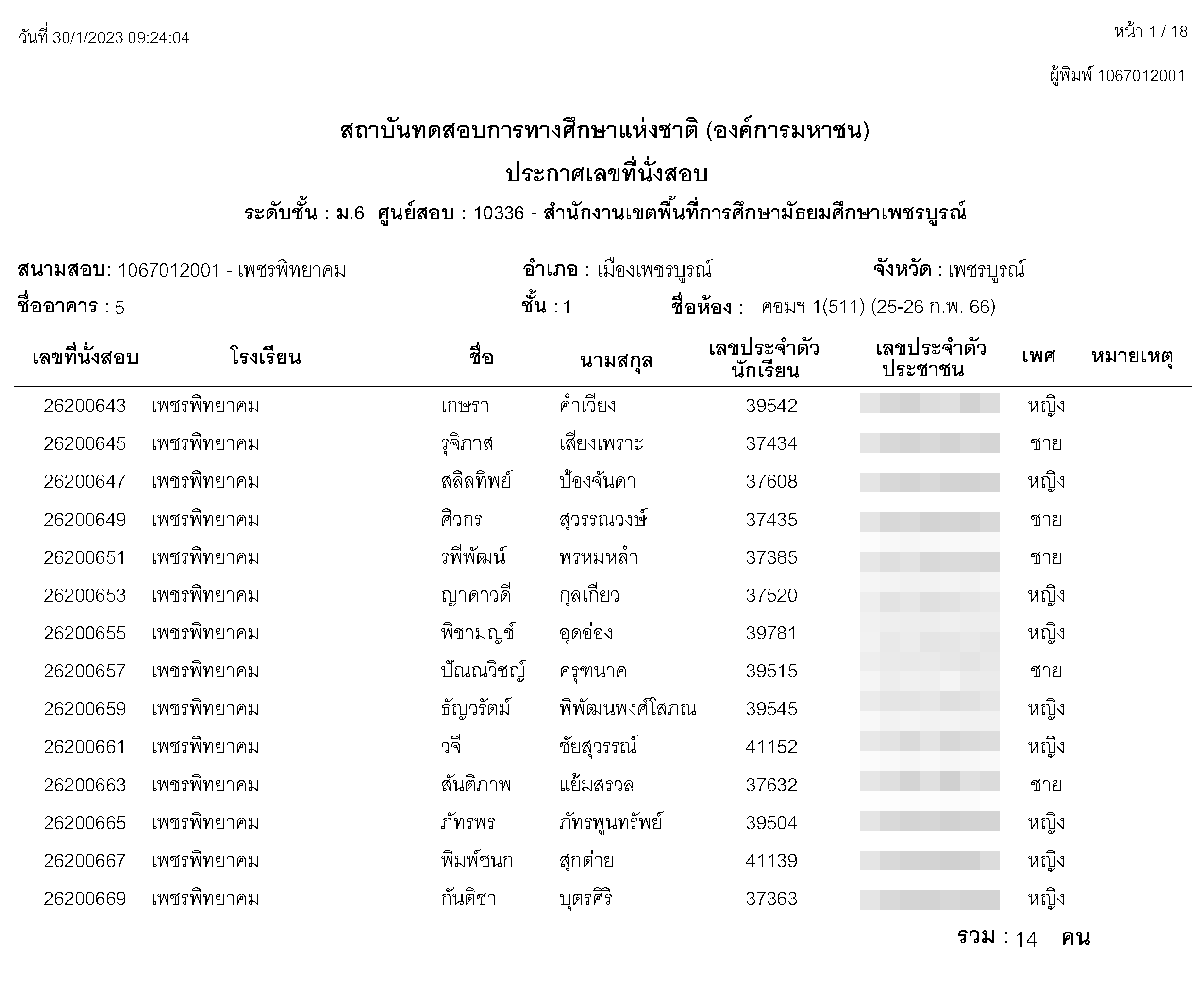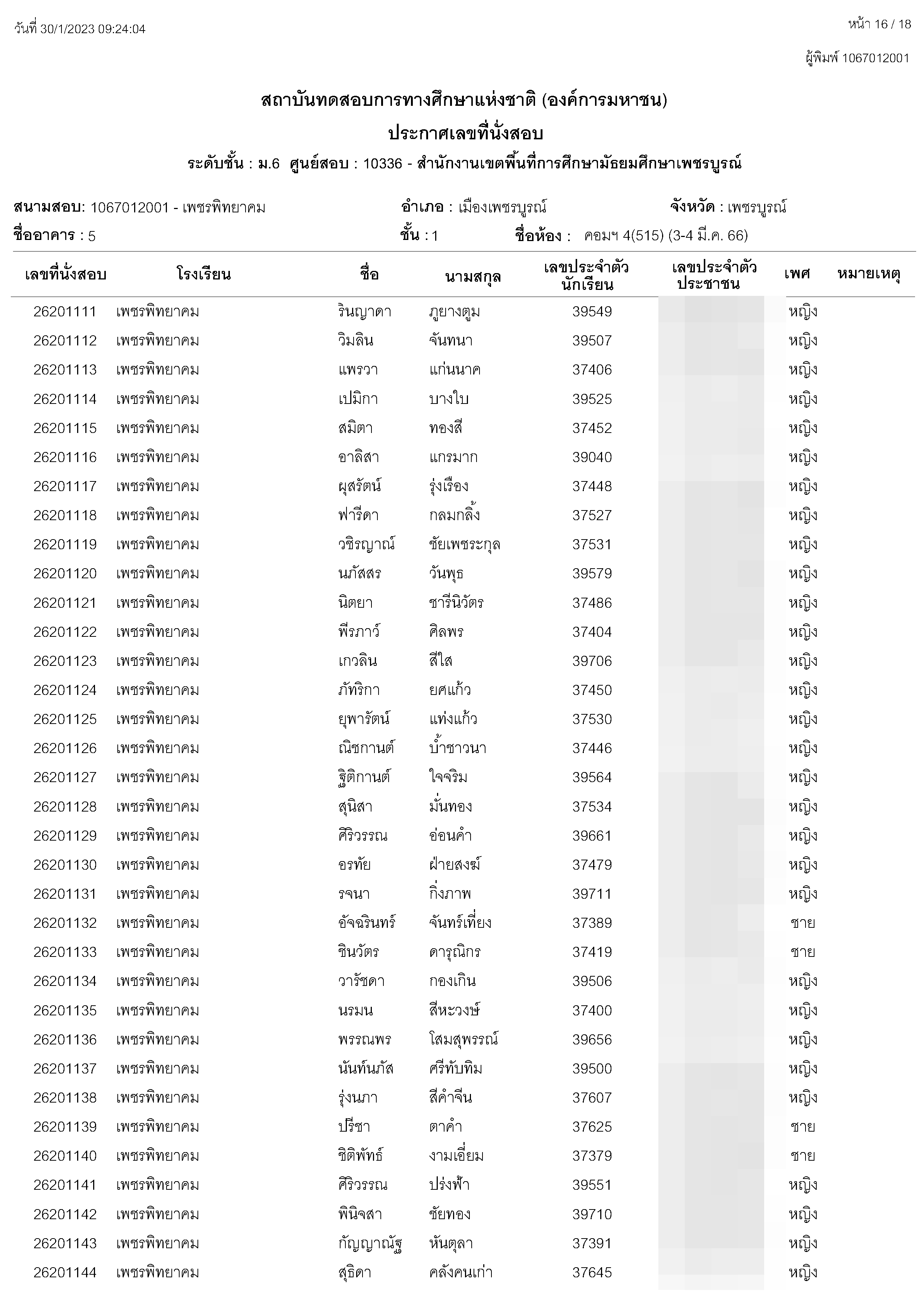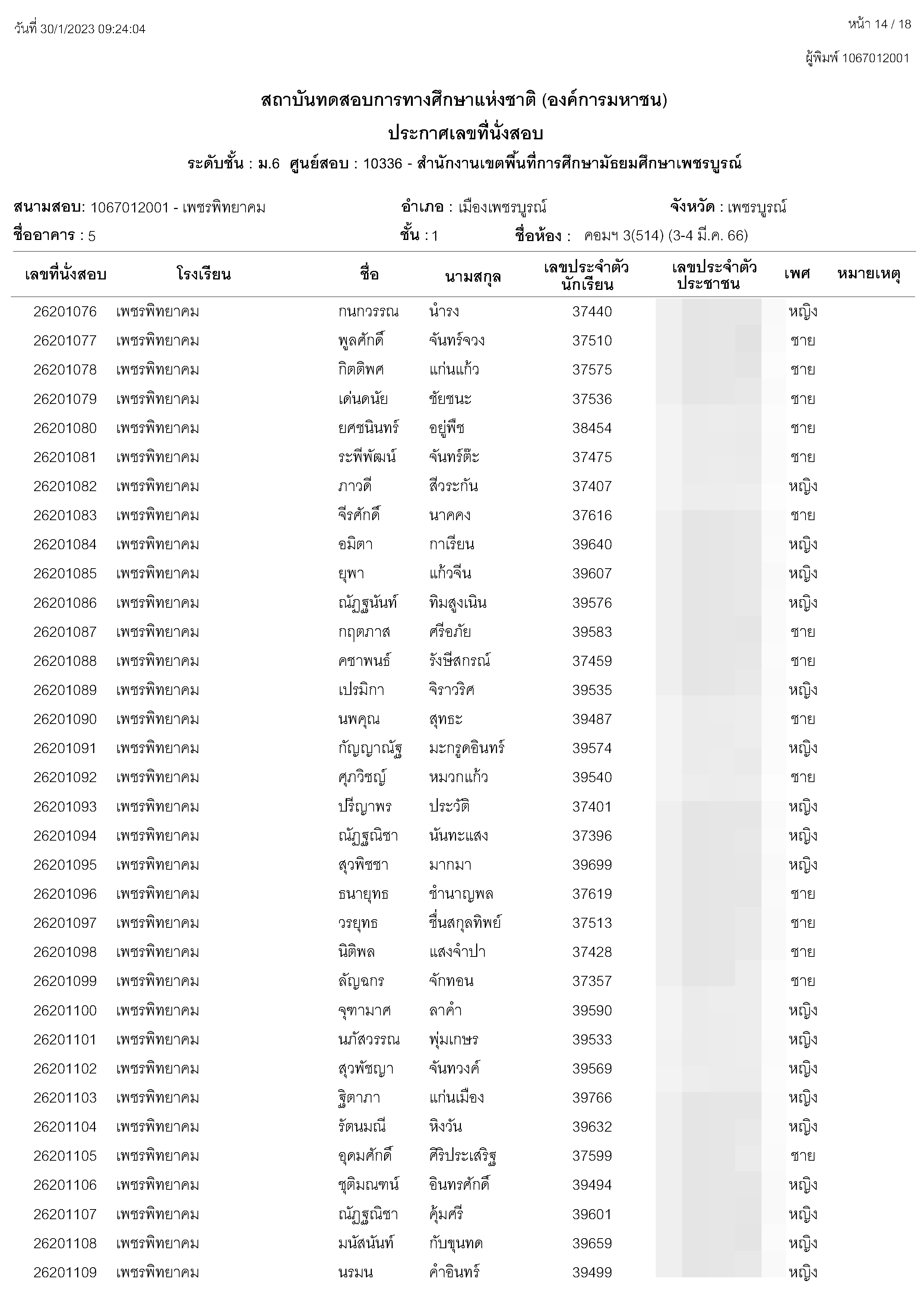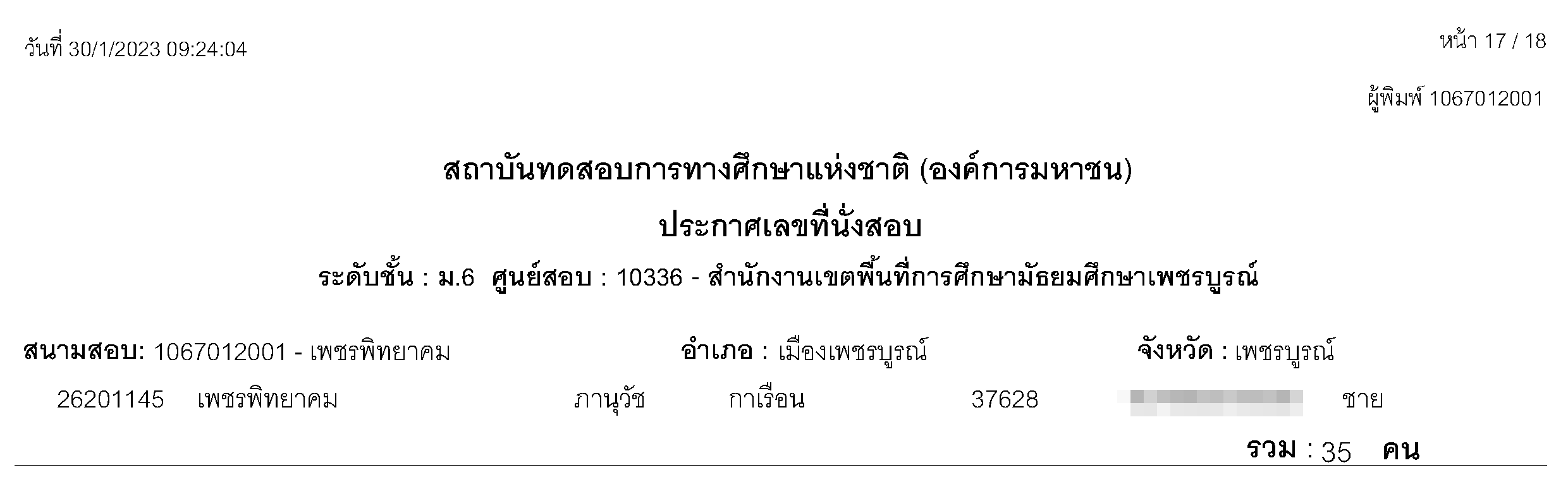 สนามสอบ: 1067012001 - เพชรพิทยาคม อำเภอ : เมืองเพชรบูรณ์