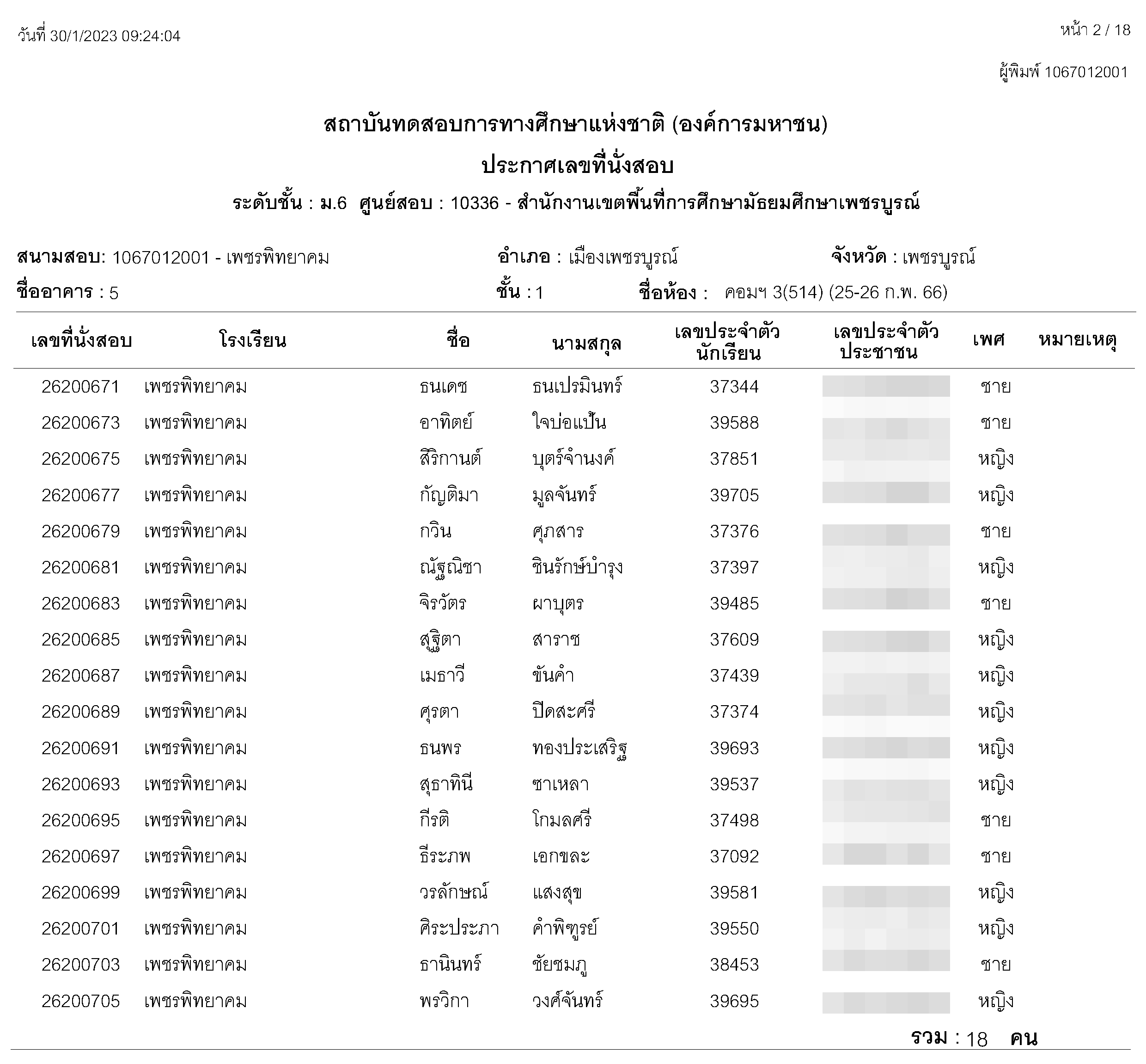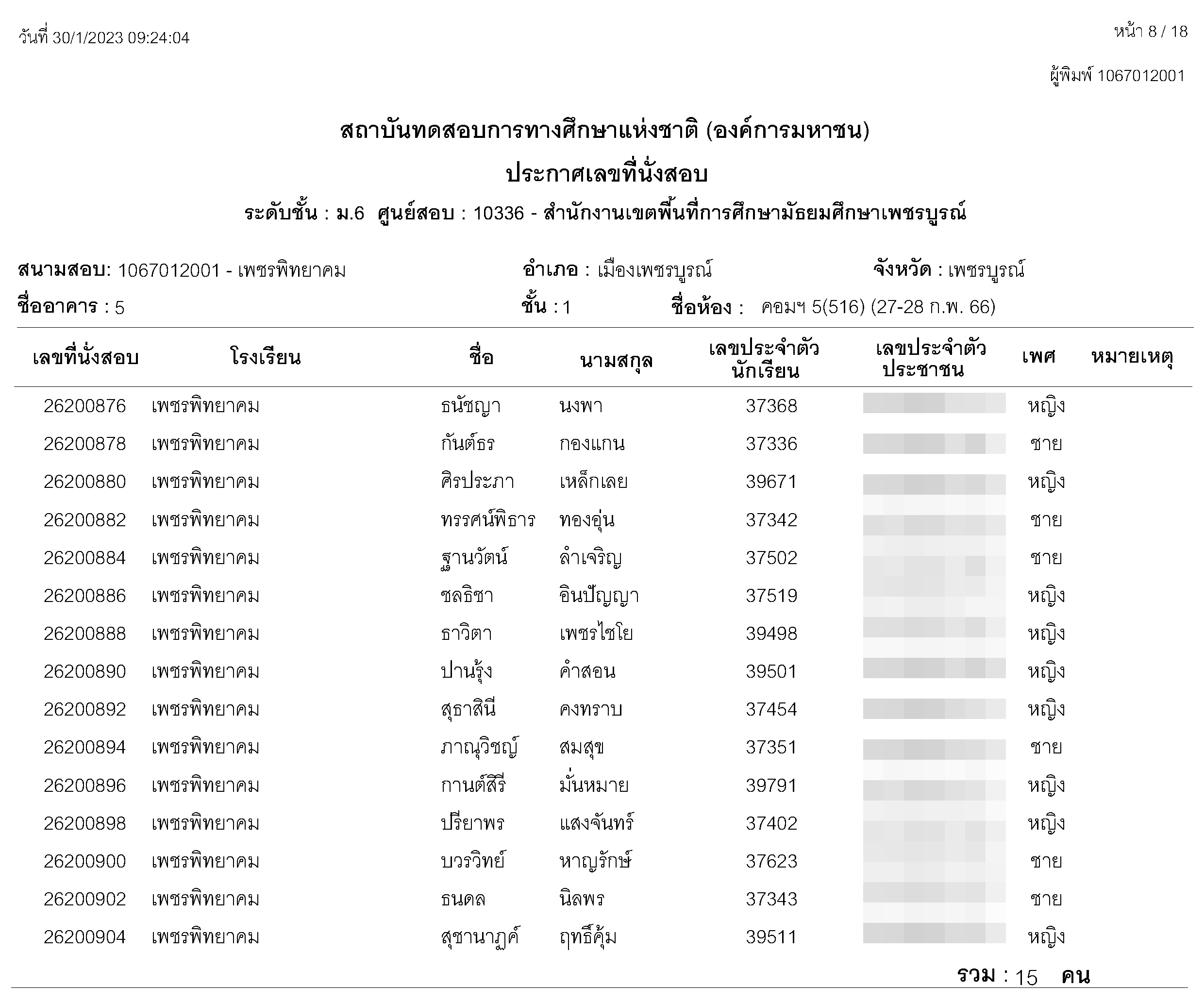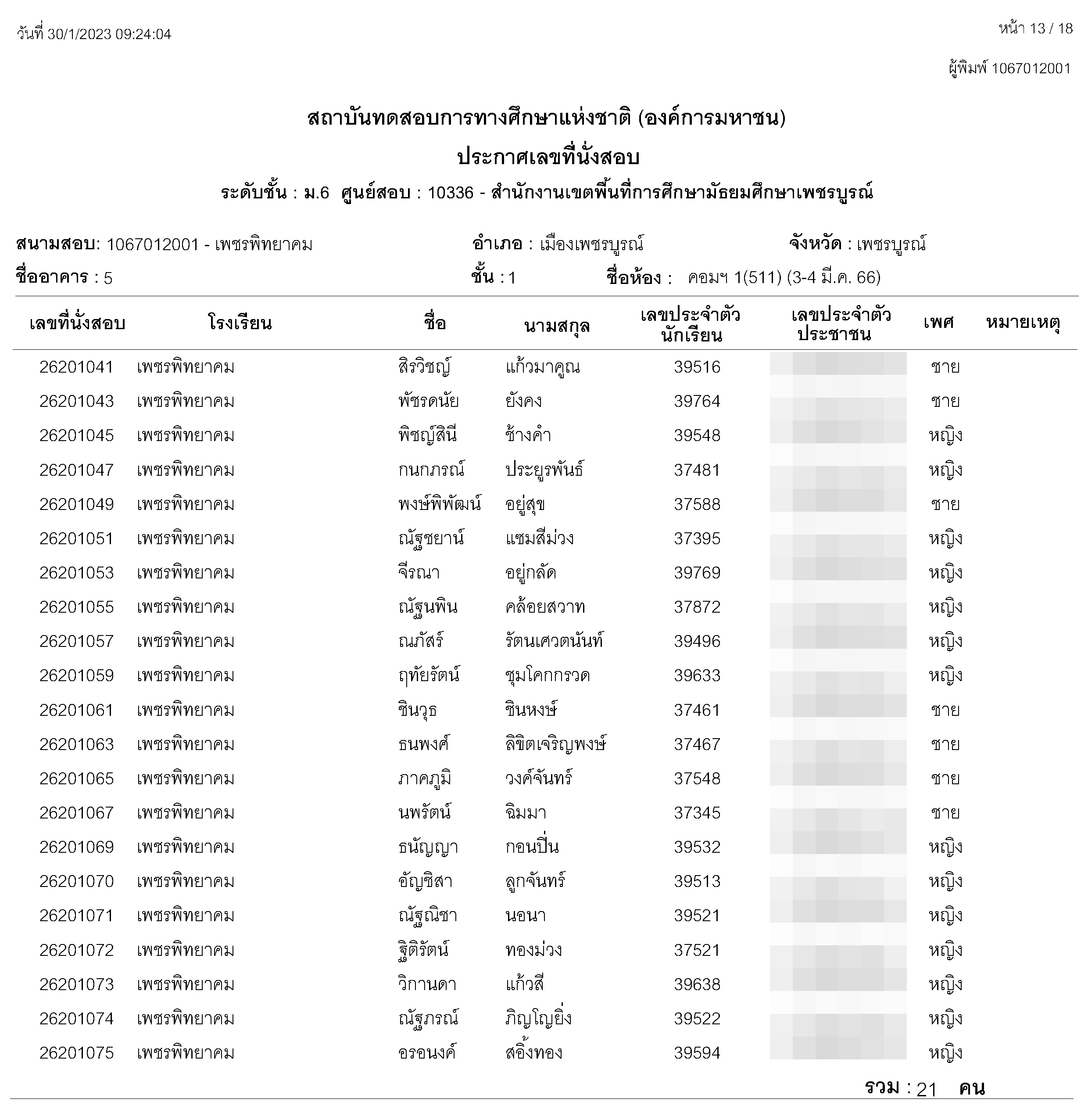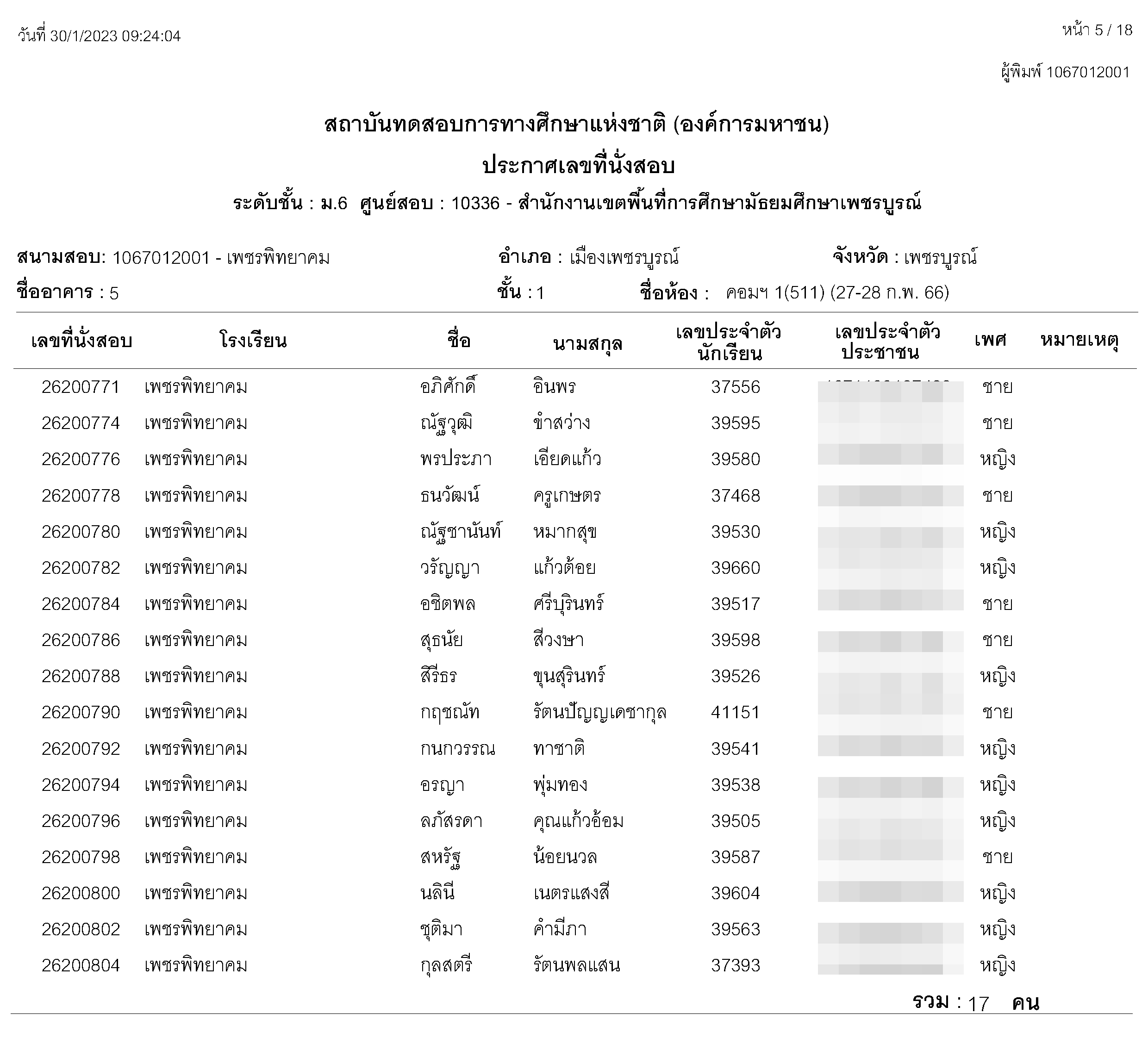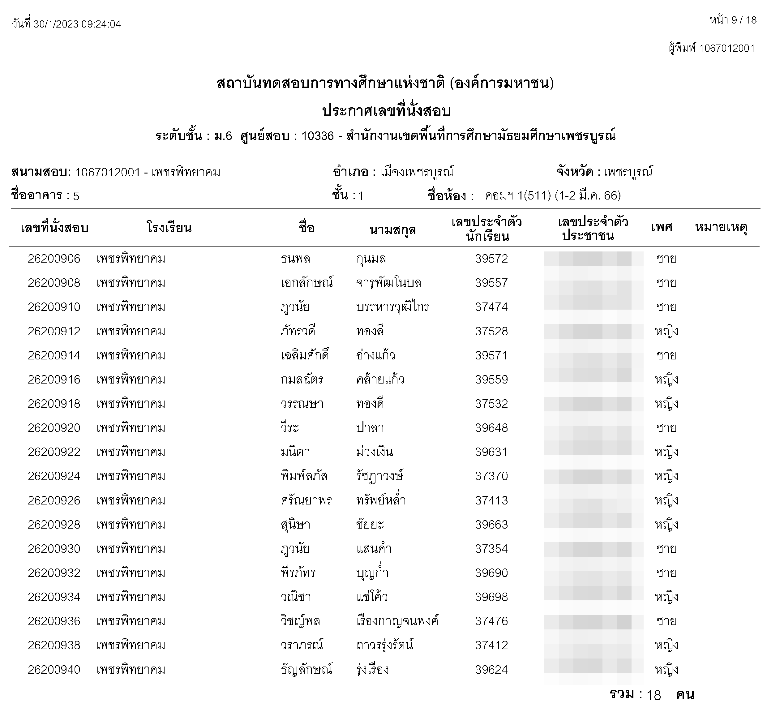สนามสอบ: 1067012001 - เพชรพิทยาคม อำเภอ : เมืองเพชรบูรณ์