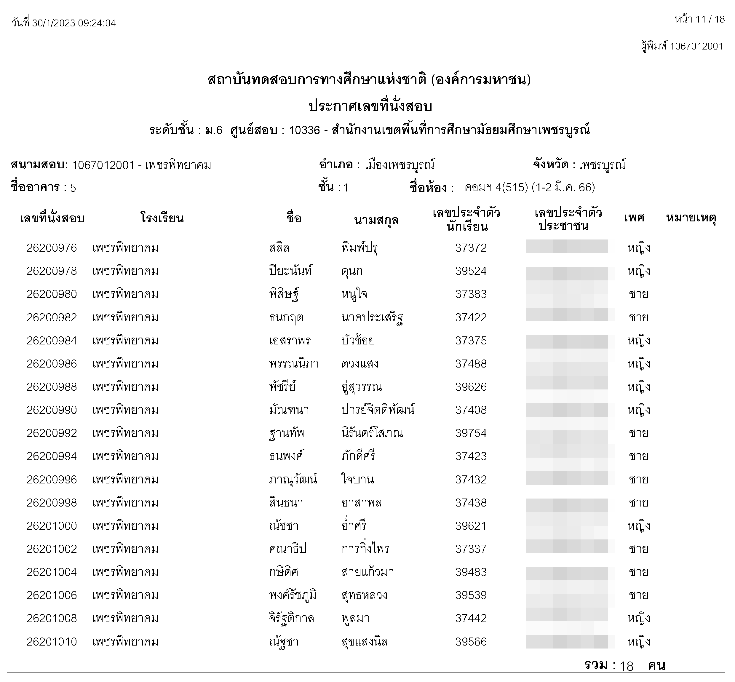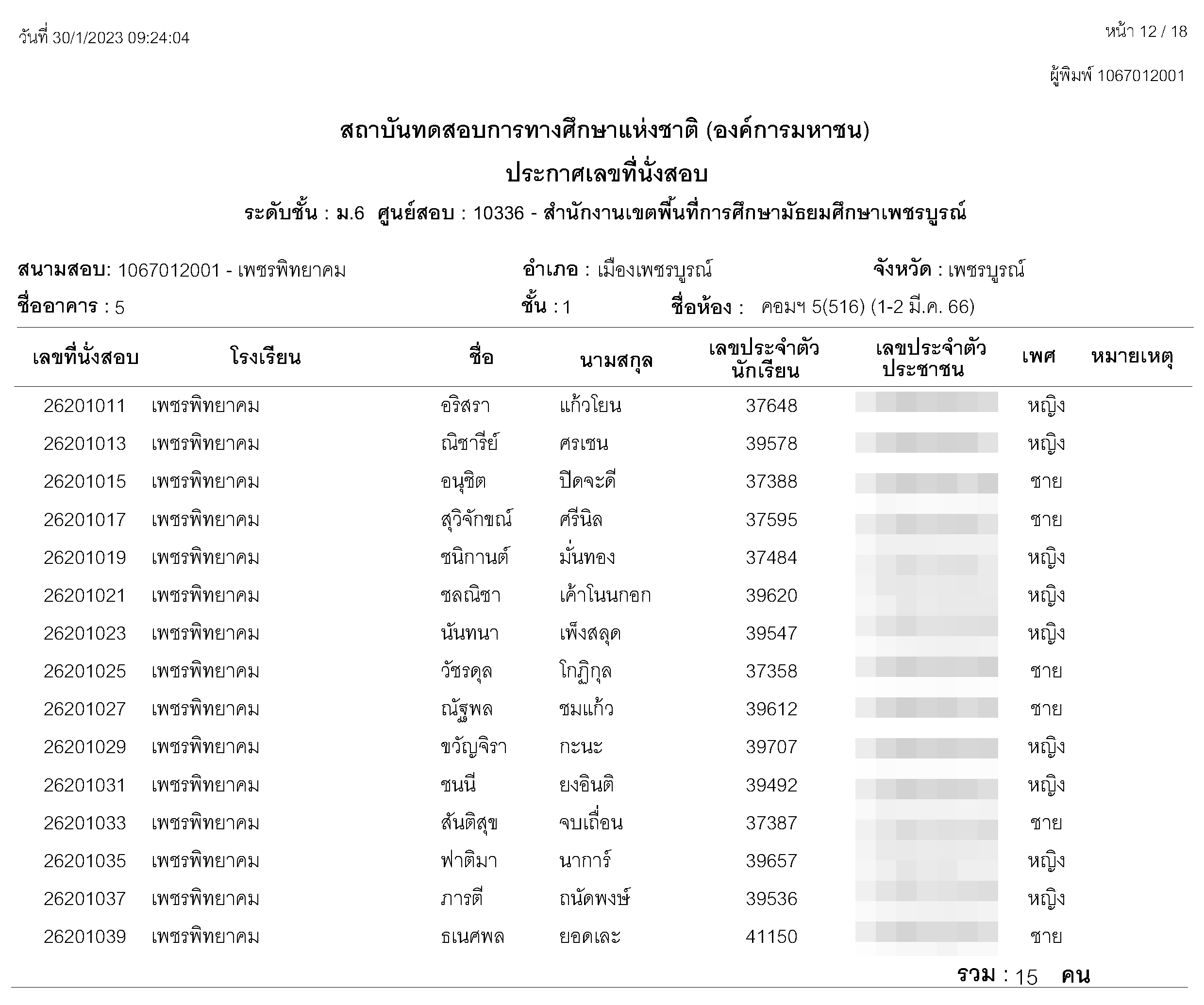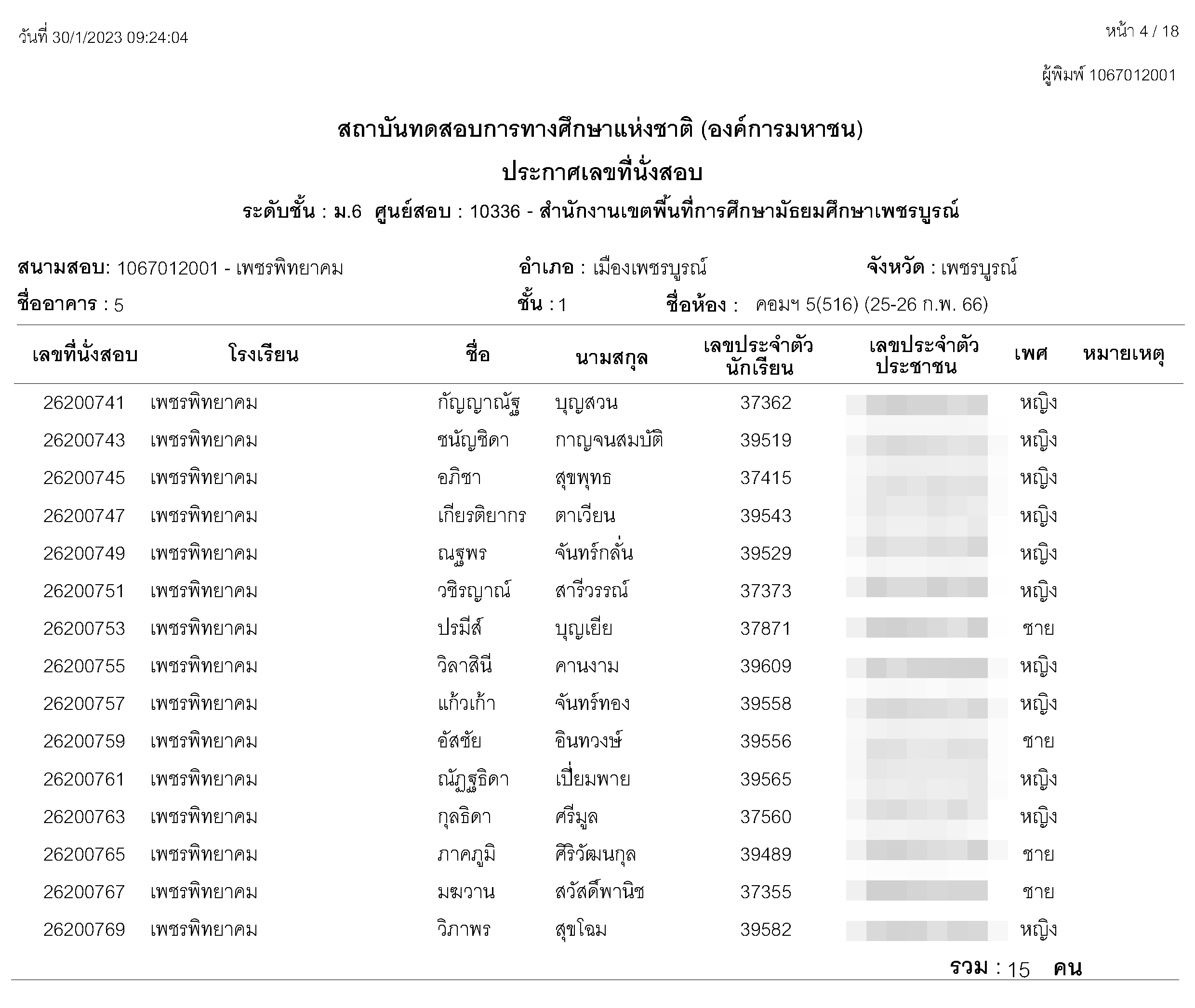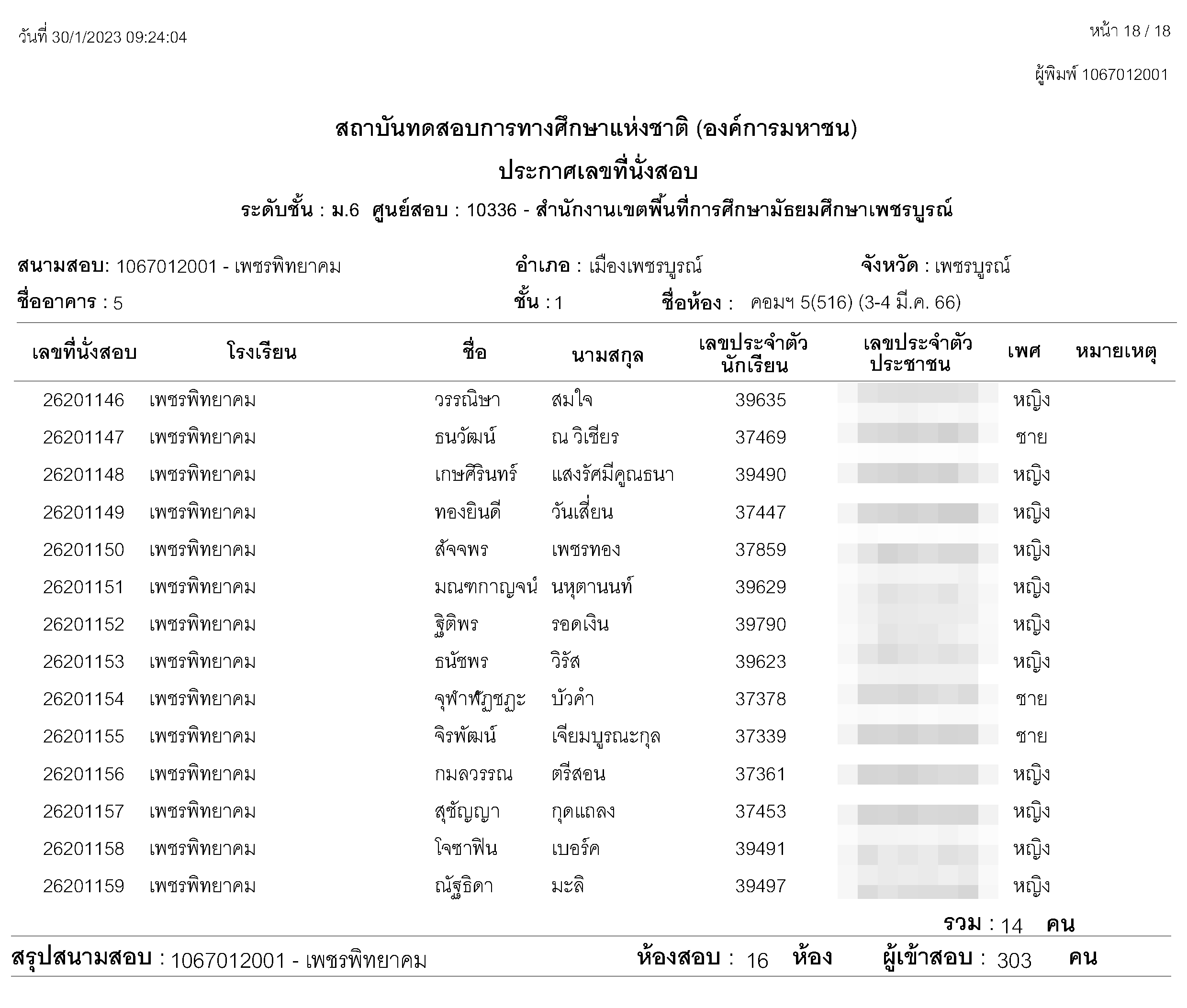 สนามสอบ: 1067012001 - เพชรพิทยาคม อำเภอ : เมืองเพชรบูรณ์