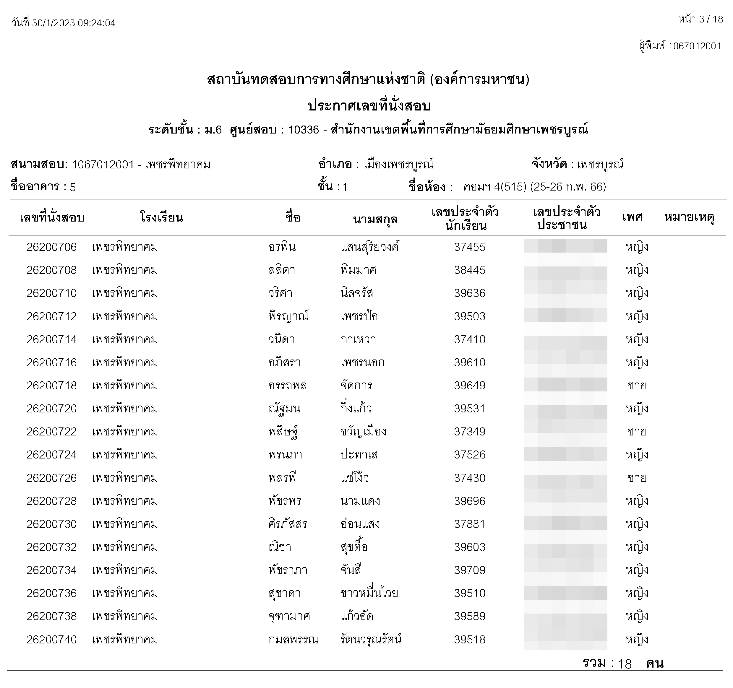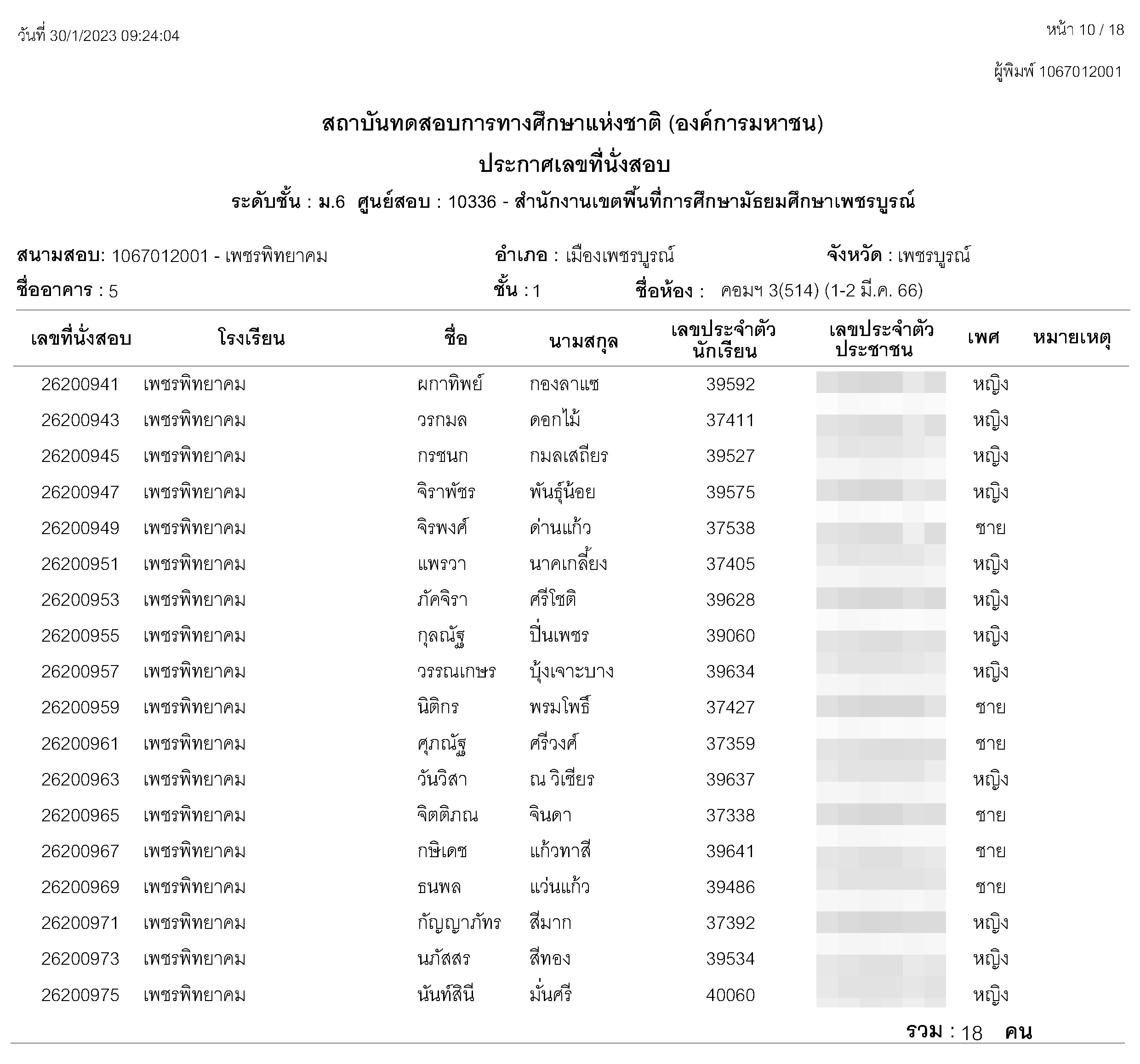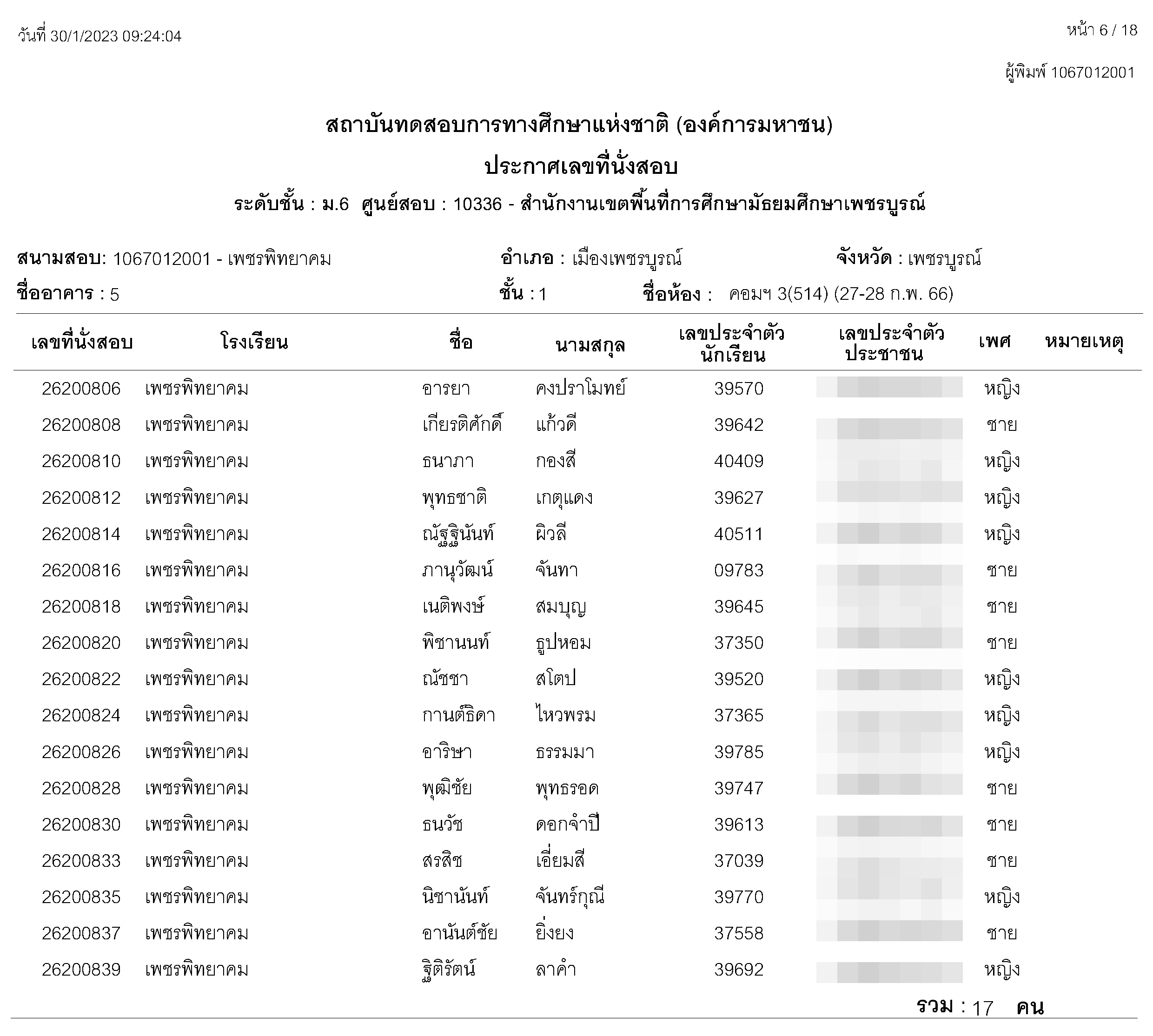 ระดับชั่น : ม.6 ศูนย์สอบ : 10336 - สำนักงานเขตพื้นที่การศึกษามัธยมศึกษาเพชรบูรณ์