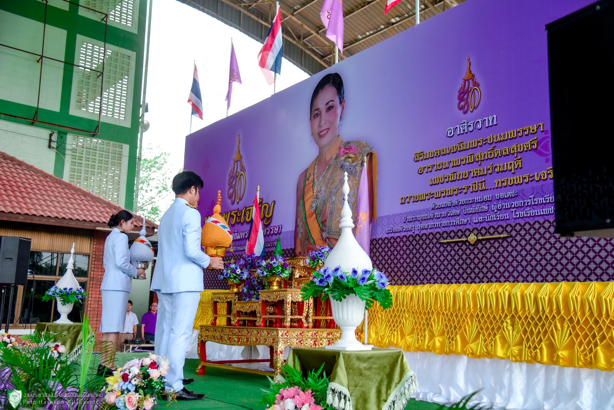 วันที่ 30 พฤษภาคม 2568 โรงเรียนเพชรพิทยาคม จัดพิธีลงนามถวายพระพรชัยมงคลเนื่องในโอกาสวันเฉลิมพระชนมพรรษา สมเด็จพระนางเจ้าสุทิดา พัชรสุธาพิมลลักษณ พระบรมราชินีโดยมี นายวิเศษ ปิ่นพิทักษ์ ผู้อำนวยการโรงเรียน เป็นประธานในพิธี พร้อมด้วยรองผู้อำนวยการ คณะครู และนักเรียนร่วมพิธี ณ อาคารพระราชปริยัติบัณฑิต 112 ปี โรงเรียนเพชรพิทยาคม